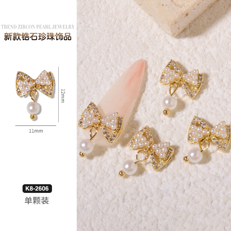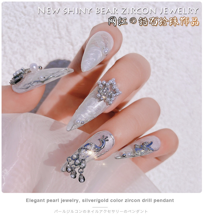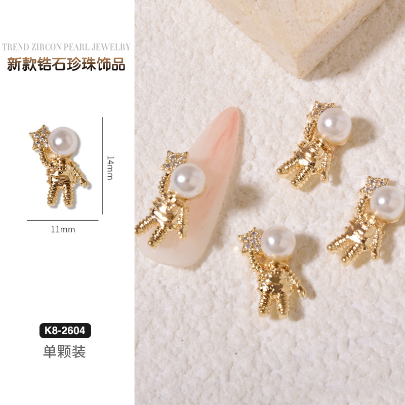 새로운 네일 아트 지르콘 보석 사이버 축하 우주 비행사 곰 활 다목적 진주 펜던트 금속 네일 액세서리