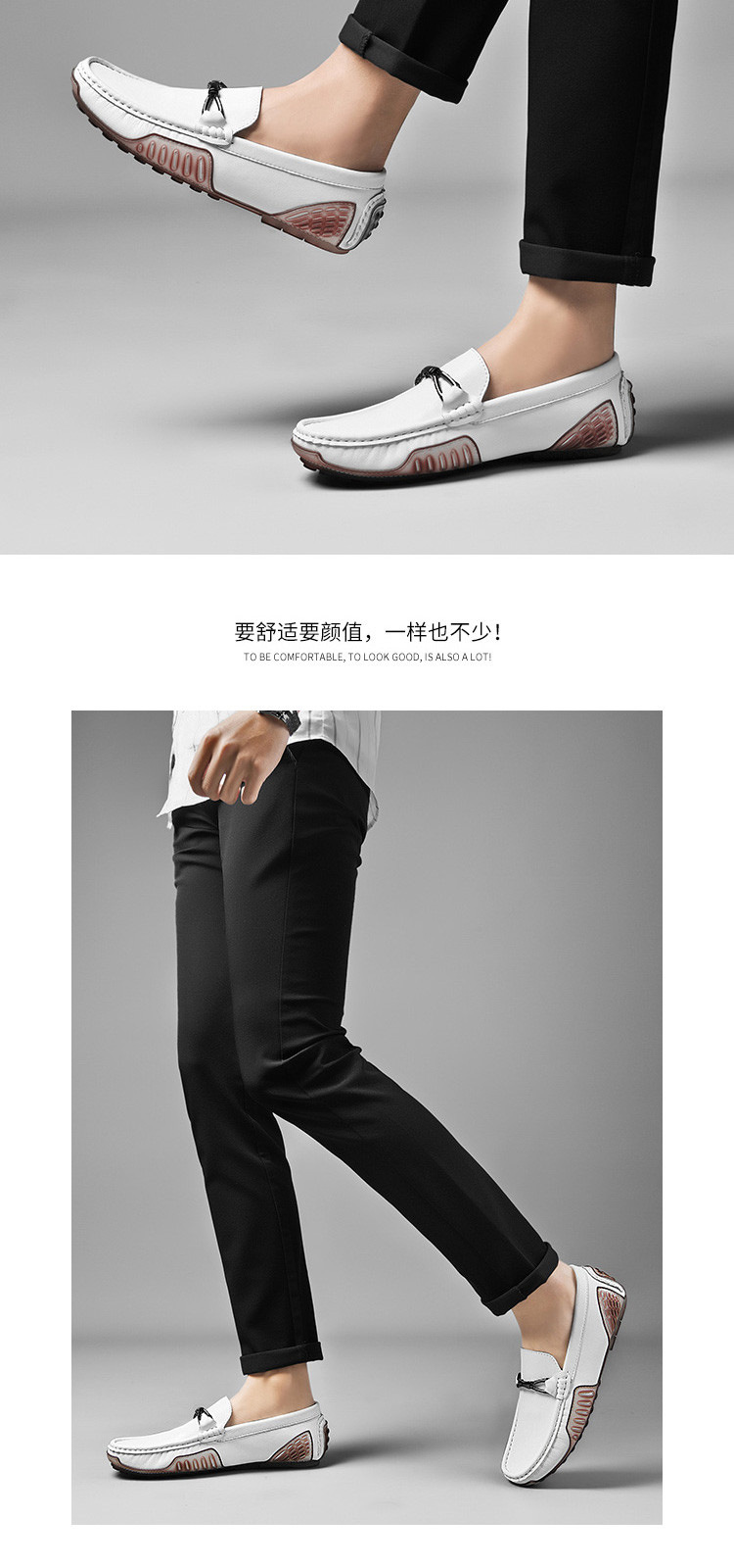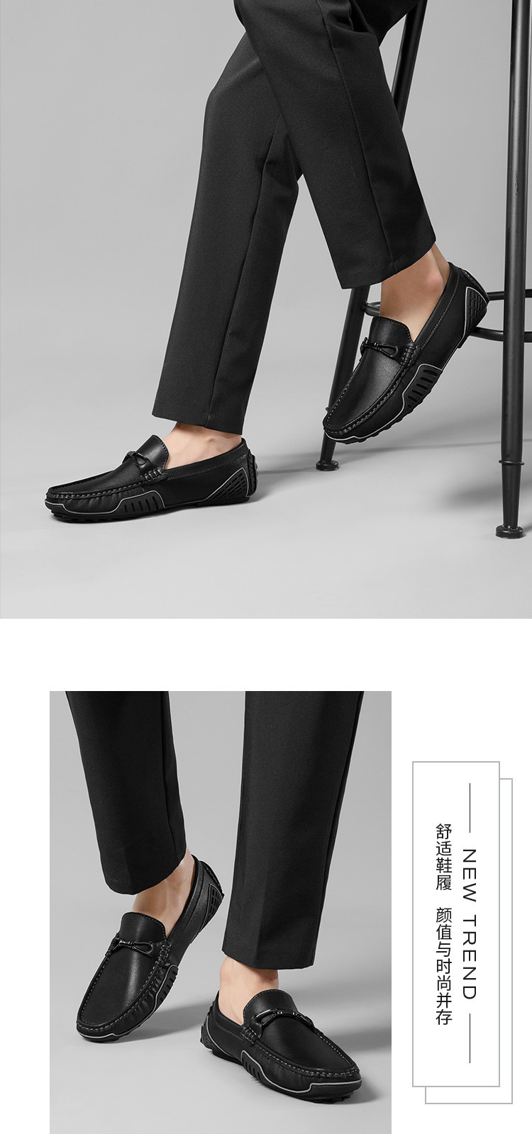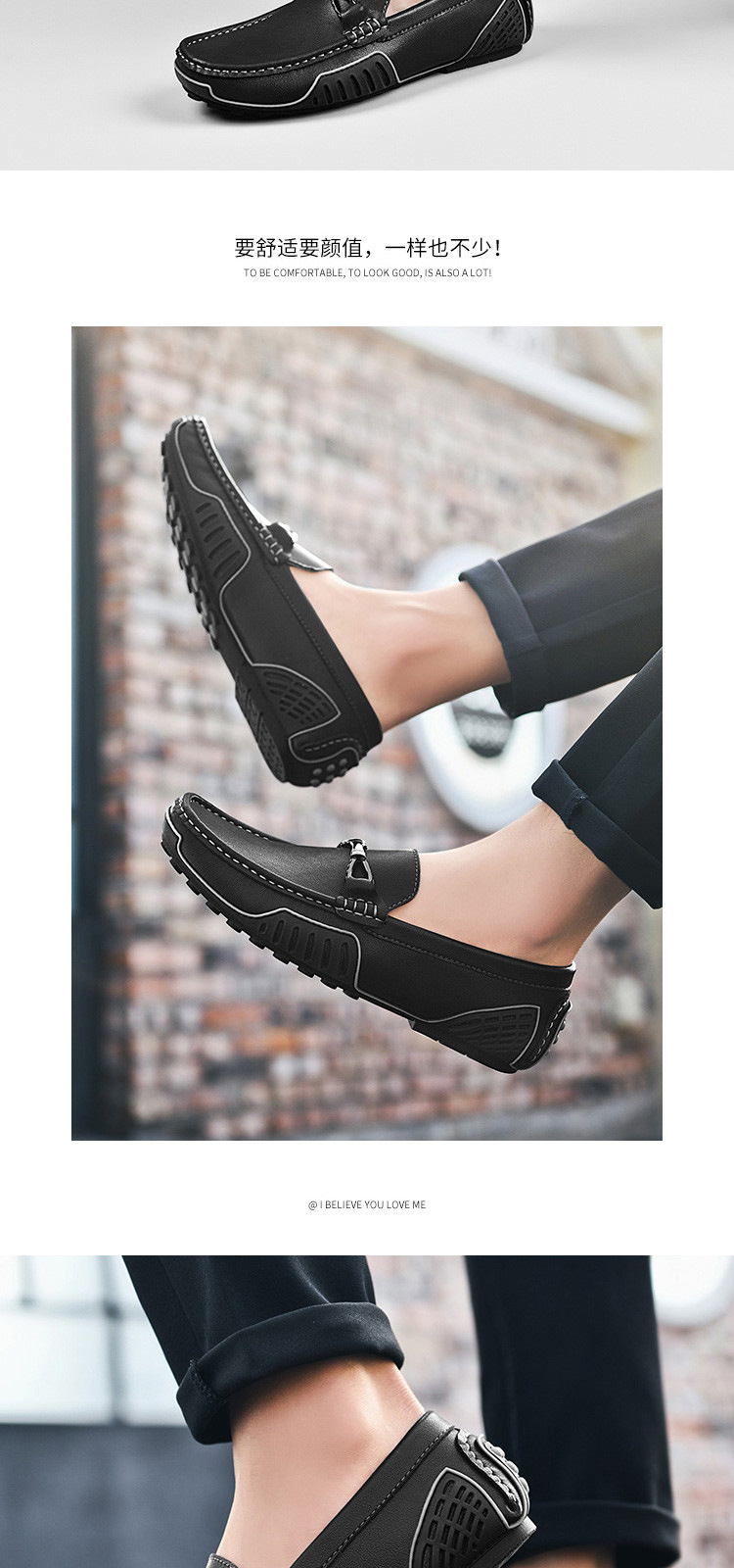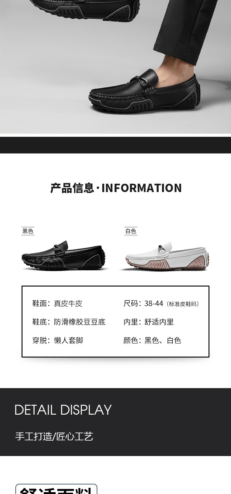가을 2023 신상품 금속 장식 손으로 수 놓은 편안한 인테리어 플랫 부드러운 정품 가죽 남성용 완두콩 신발스토어 가기