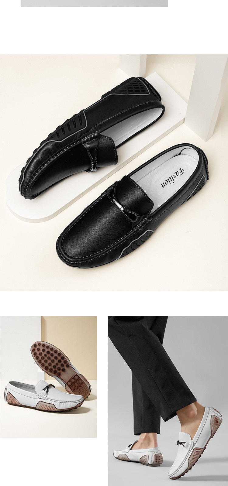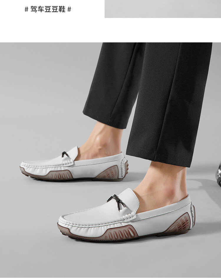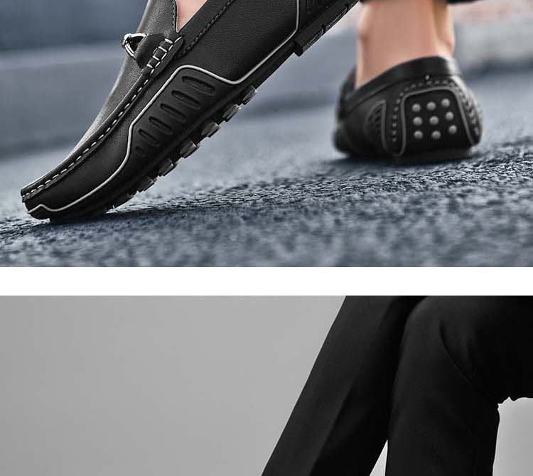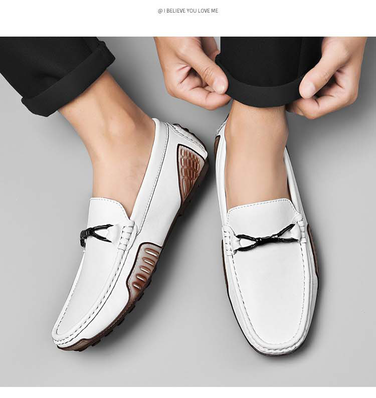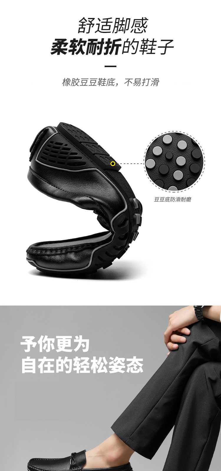 가을 2023 신상품 금속 장식 손으로 수 놓은 편안한 인테리어 플랫 부드러운 정품 가죽 남성용 완두콩 신발스토어 가기
