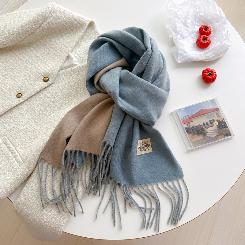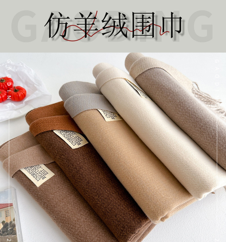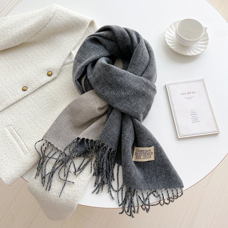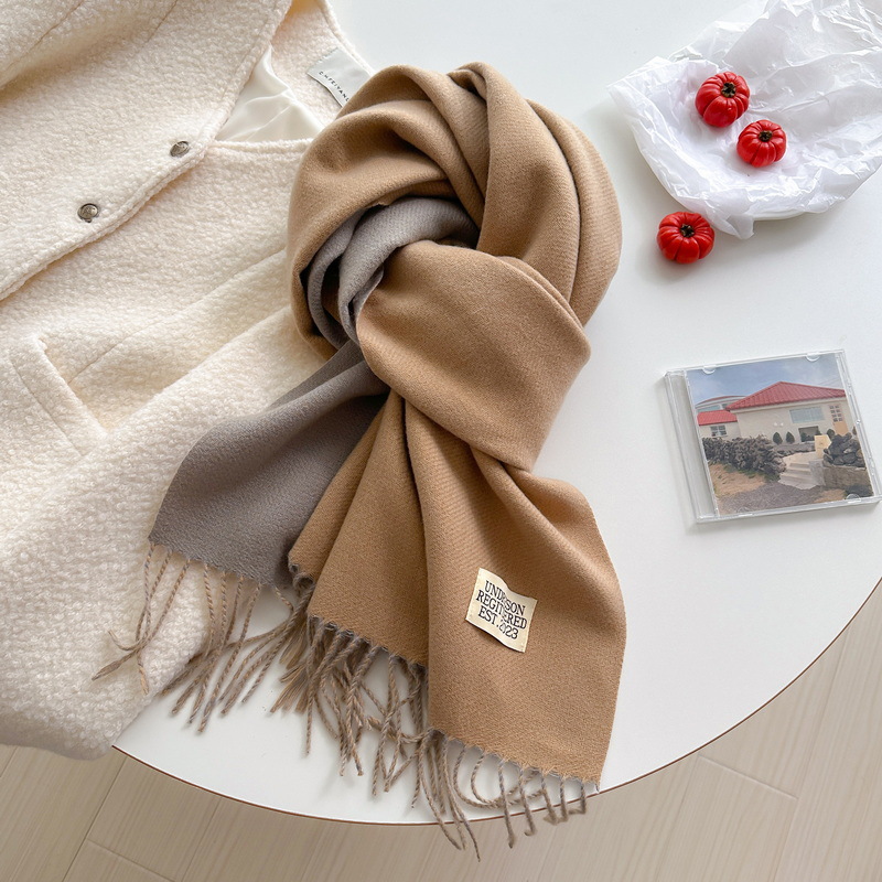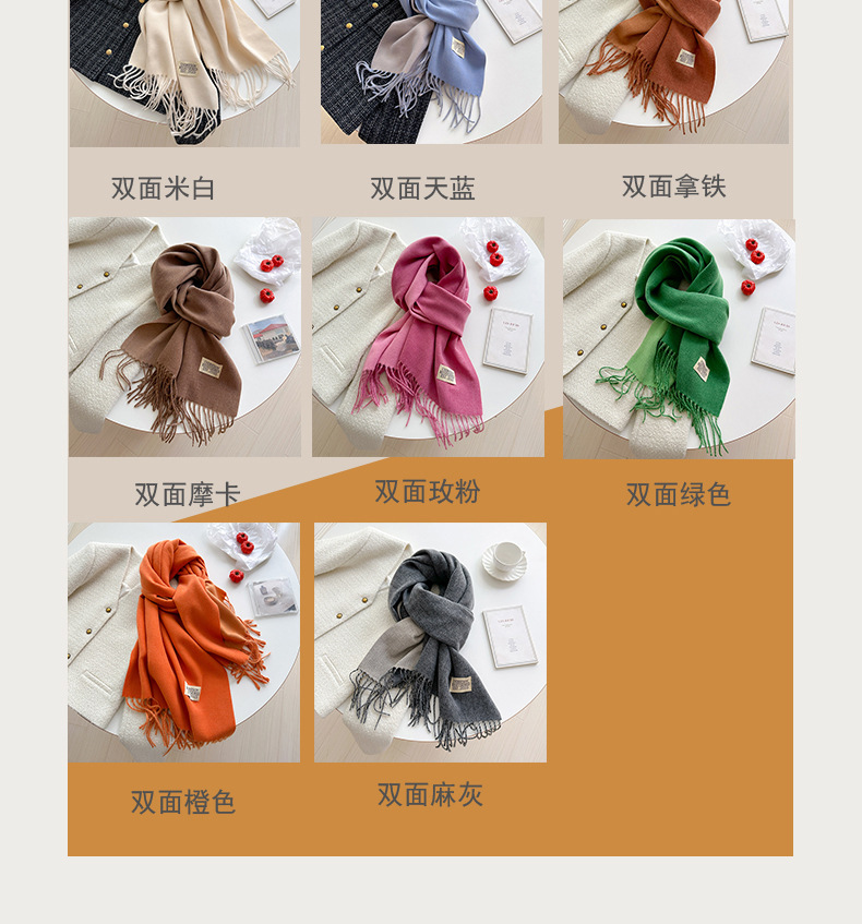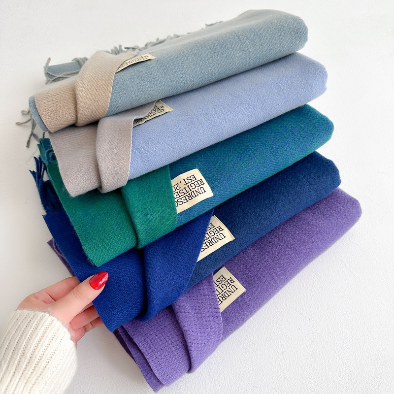 겨울 새로운 패션 한국 스타일 모든 매치 양면 캐시미어 스카프 여성용 단색 따뜻한 긴 술 커플 숄스토어 가기