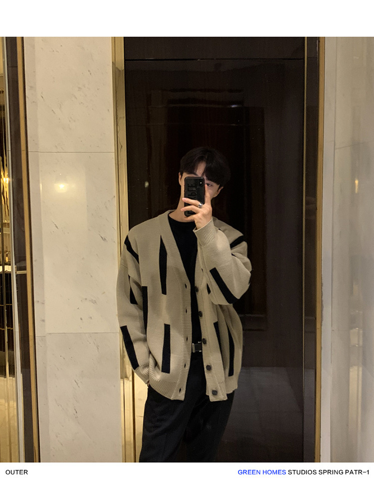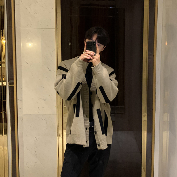 남자의 스웨터 느슨한 게으른 스타일 스웨터 한국 스타일 유행 멋진 캐주얼 V-넥 스웨터 카디건 재킷