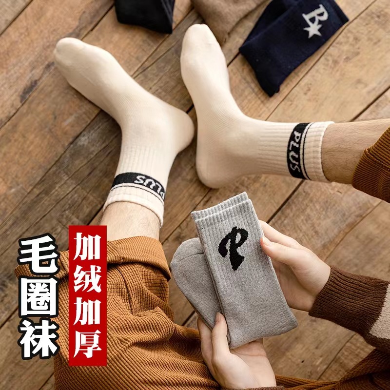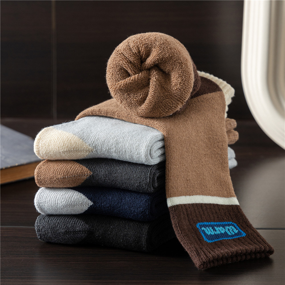 두꺼운 양말 남성용 중목 양말 가을 겨울용 순면 방취 두꺼운 플리스 안감 보온 남성용 긴 양말 트렌디 신상
