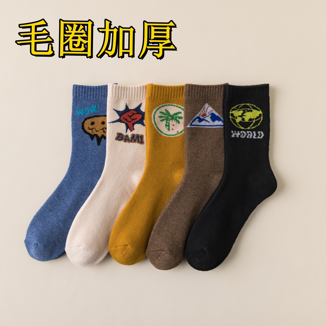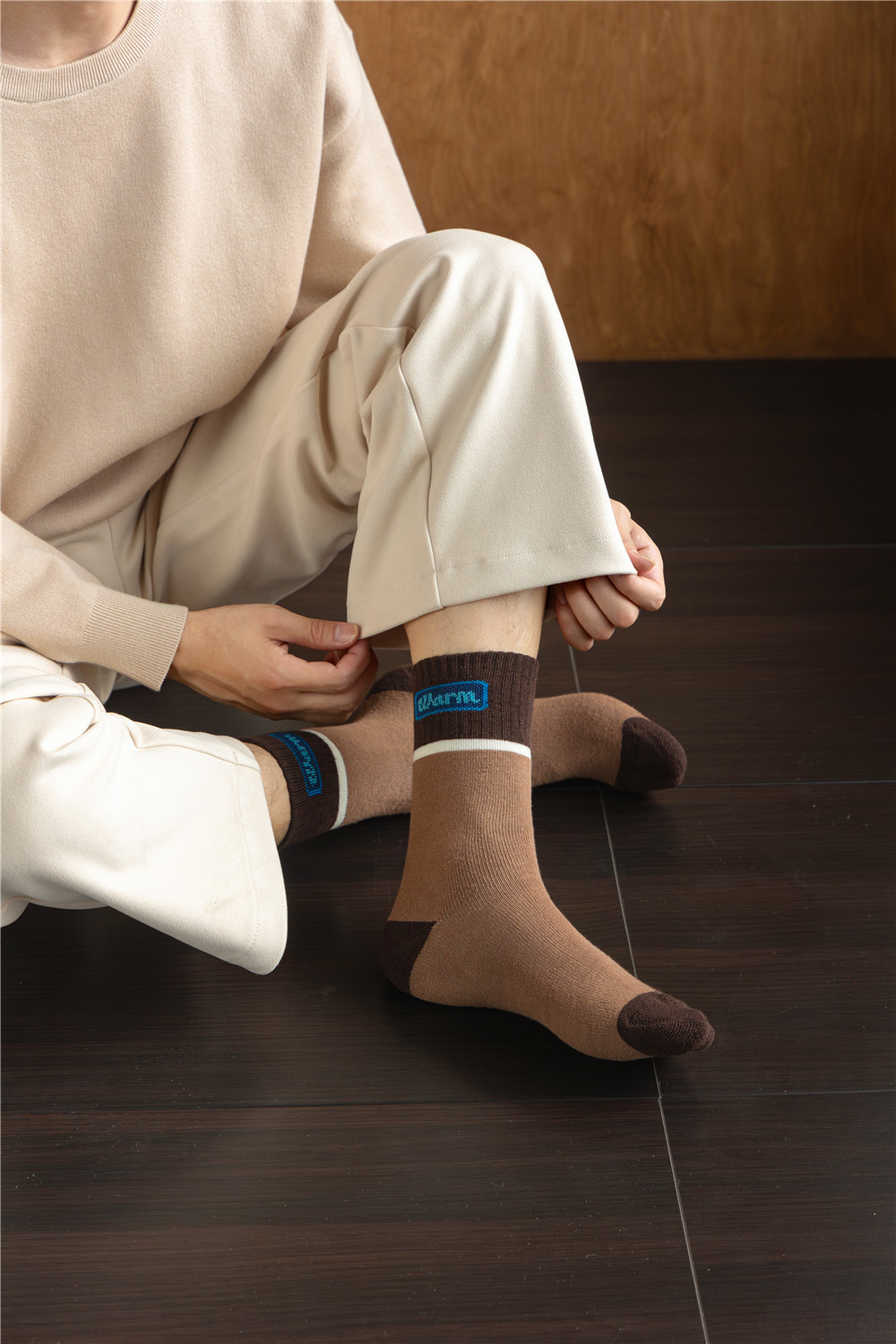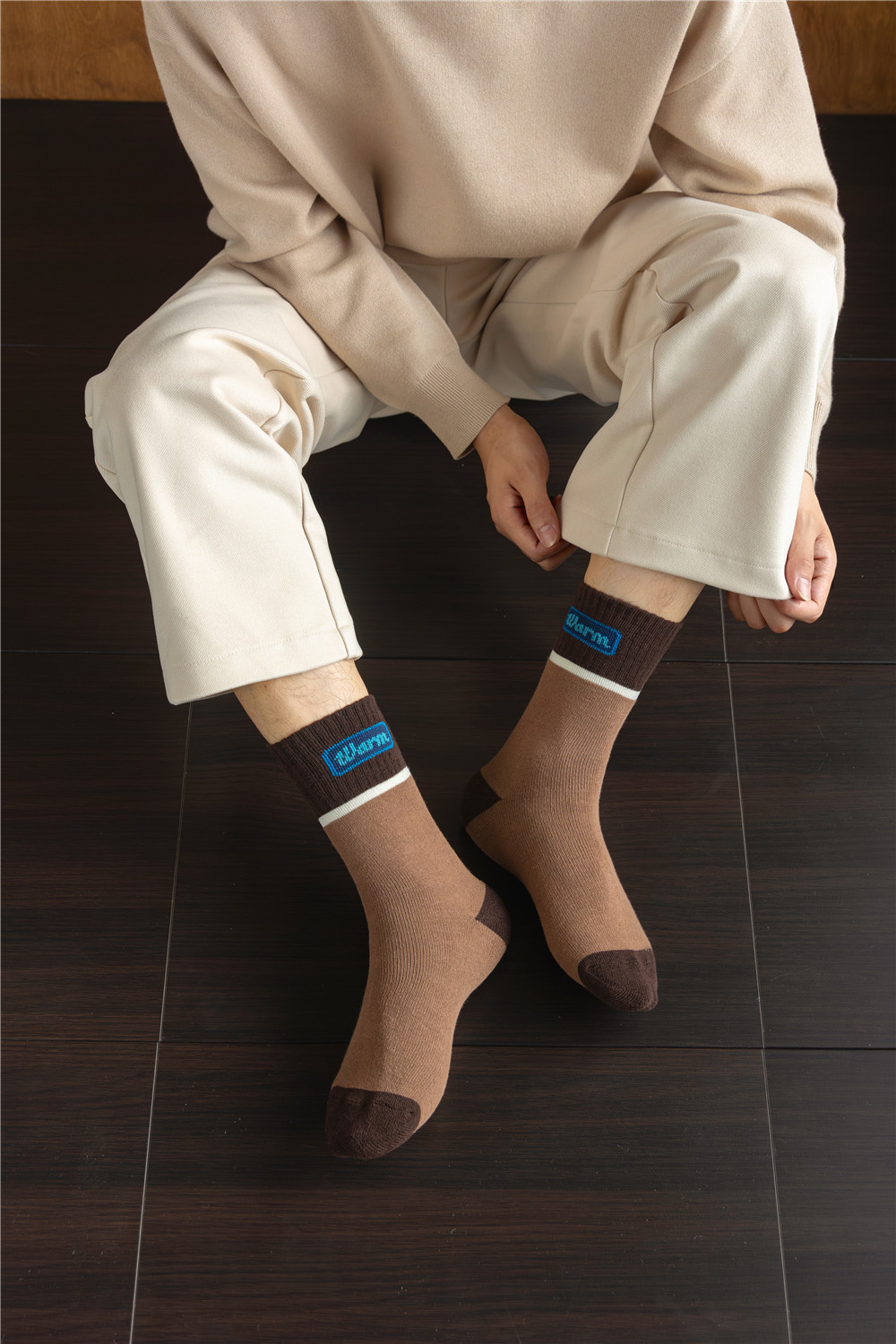 두꺼운 양말 남성용 중목 양말 가을 겨울용 순면 방취 두꺼운 플리스 안감 보온 남성용 긴 양말 트렌디 신상스토어 가기