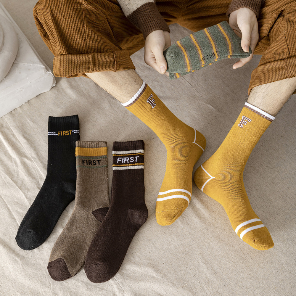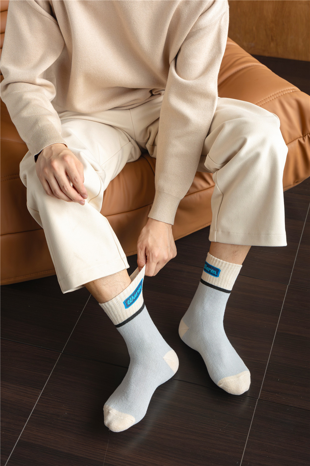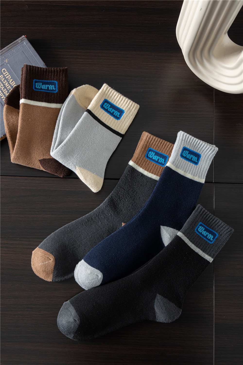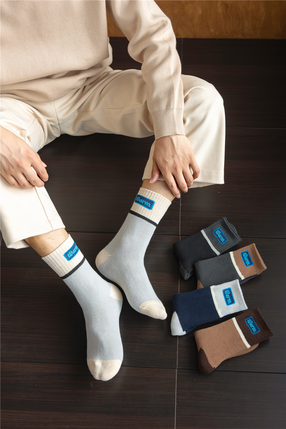 두꺼운 양말 남성용 중목 양말 가을 겨울용 순면 방취 두꺼운 플리스 안감 보온 남성용 긴 양말 트렌디 신상스토어 가기