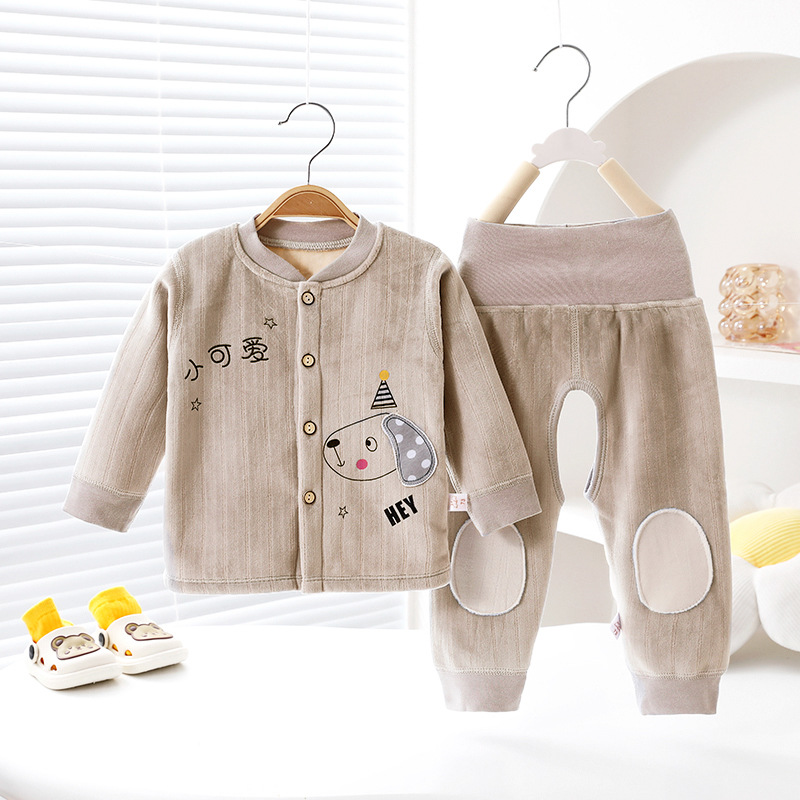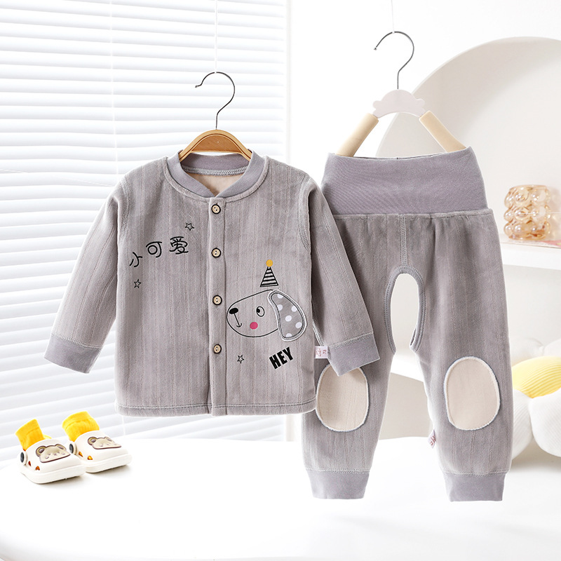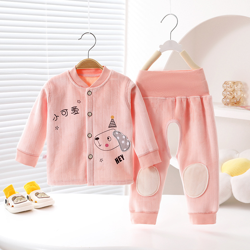 봄/가을 및 겨울 오픈 가랑이 높은 허리 배 보호 기모 어린이를 세트 뼈없는 스티치 아기 홈 착용 아기 열 속옷