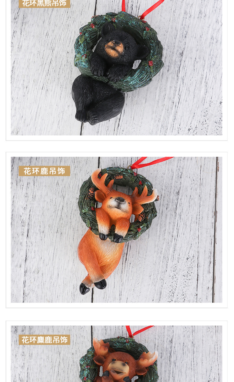 圣诞圈黑熊/麋鹿/鹿 产品尺寸8*5*12.5包装盒尺寸11*8*15.5净重130克包装重150克