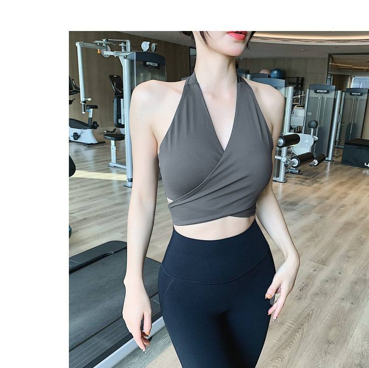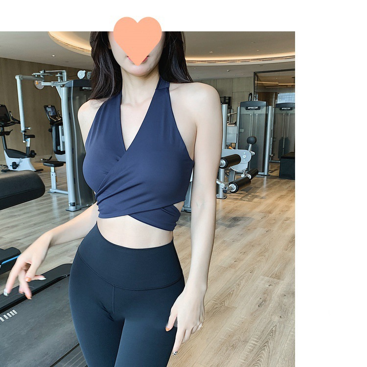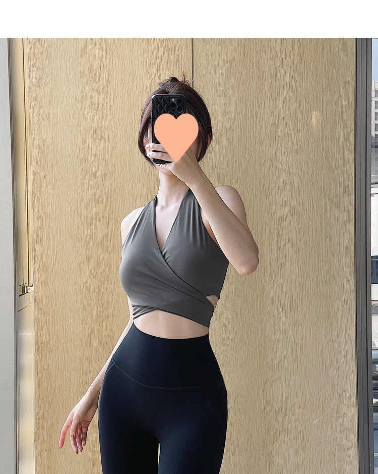 섹시한 사이버 연예인 스트랩 스포츠 속옷 여성용 V-넥 요가 브라 겉옷 피트니스 뷰티 백 조끼