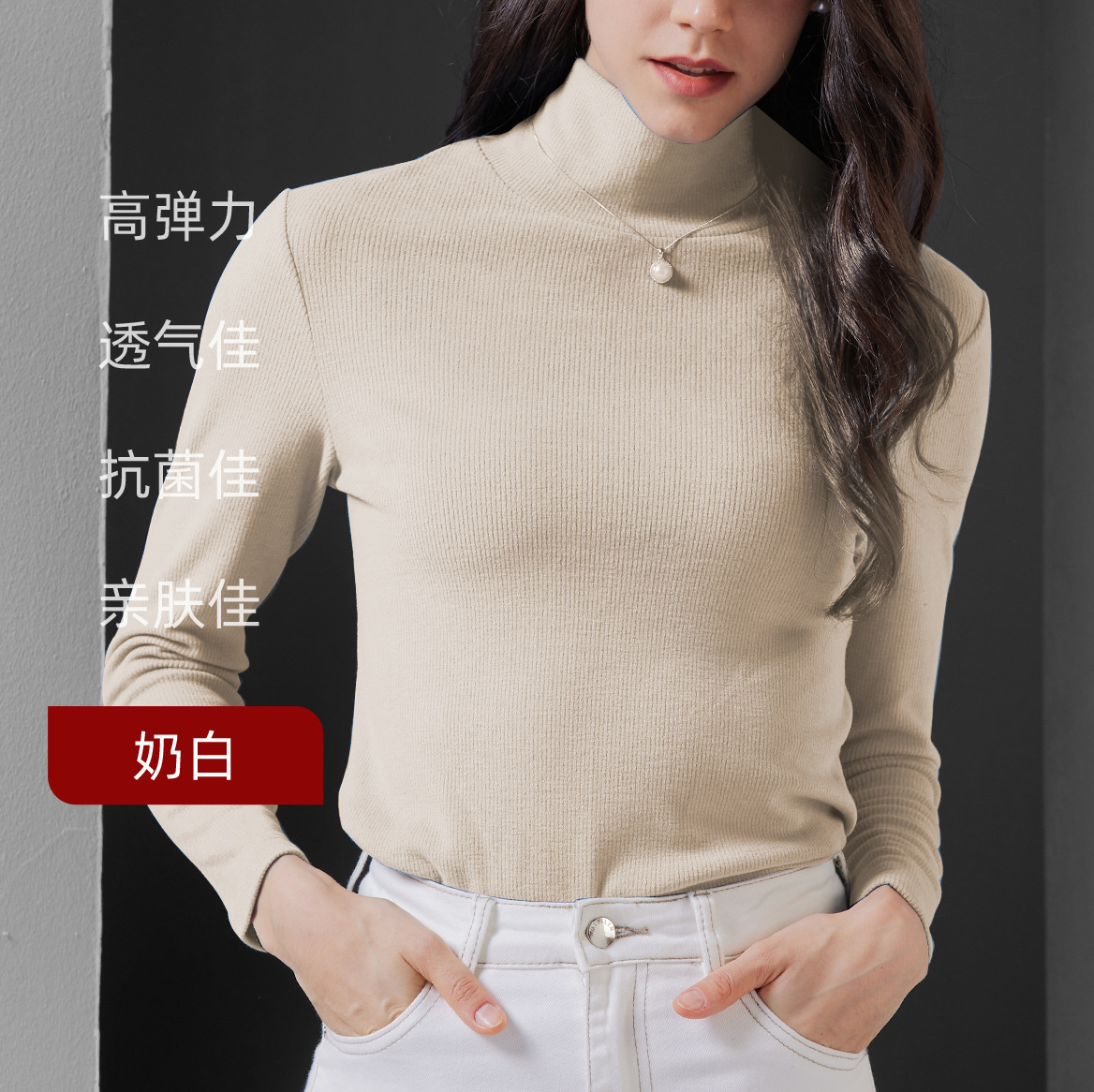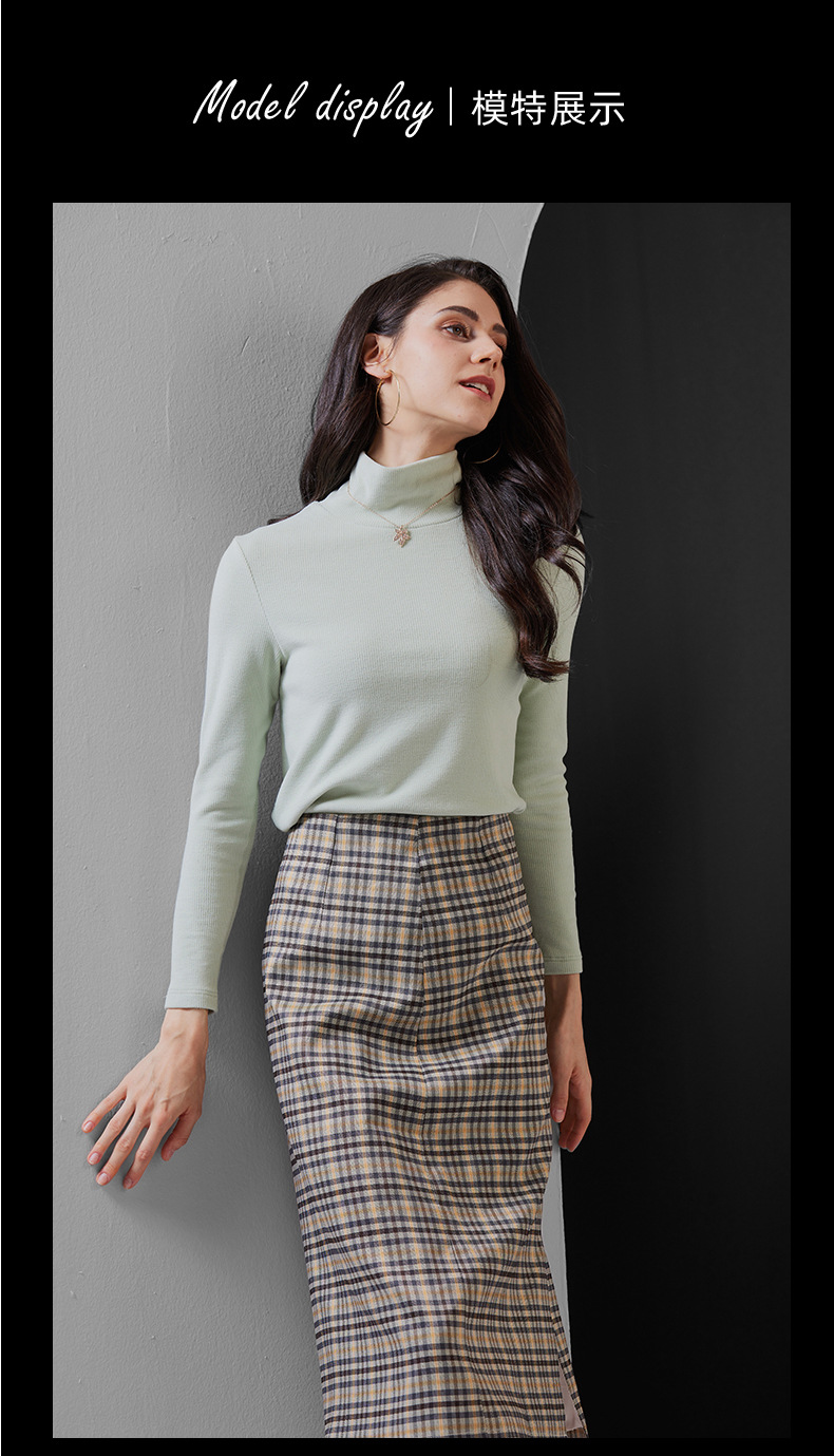 하이 칼라 베이스 셔츠 여성의 가을과 겨울 내부 스레드 긴 소매 세련된 슬림 핏 부드러운 왁스 기모 두꺼운 따뜻한 탑