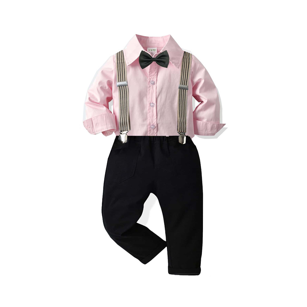 어린이 크로스 보더 새로운 원피스 소년 긴팔 셔츠 스트랩 바지 남자의 보물 생일 잘 생긴 네 조각