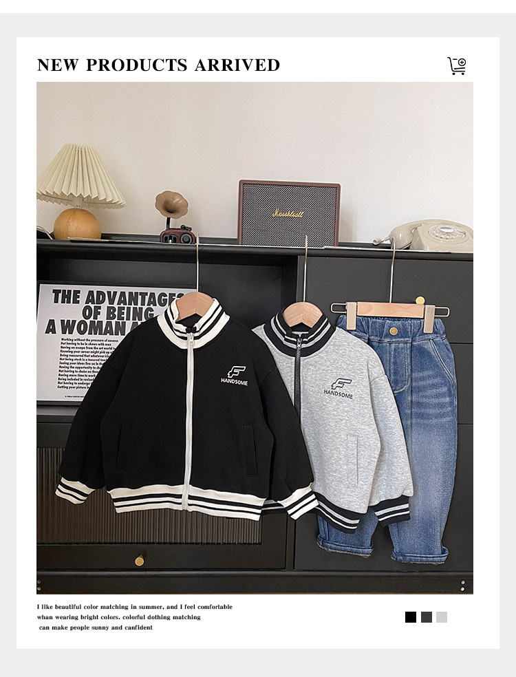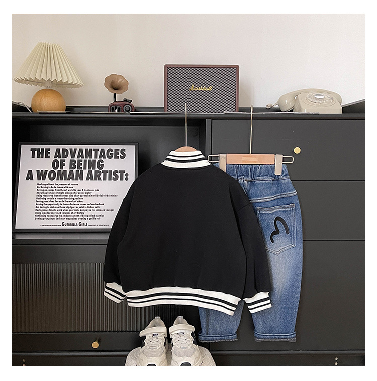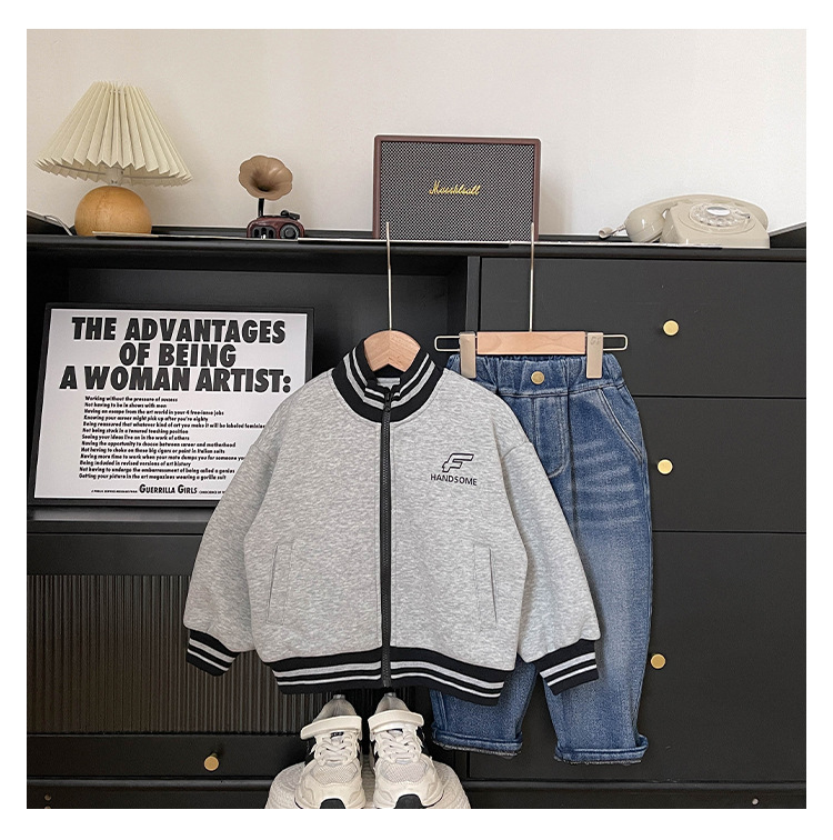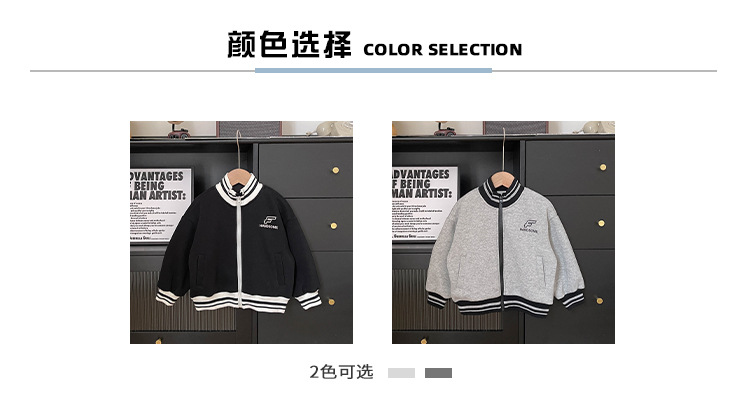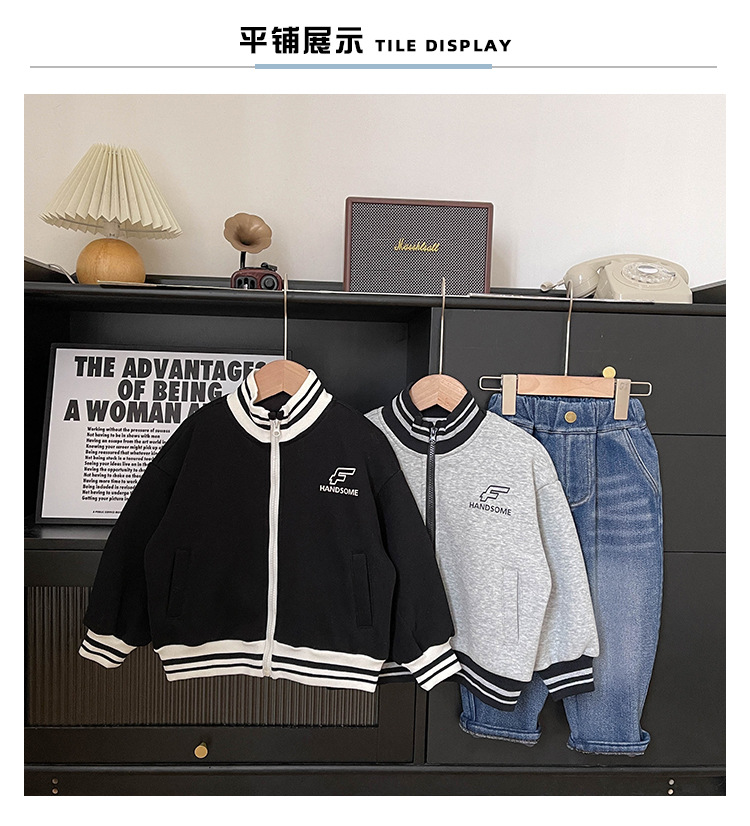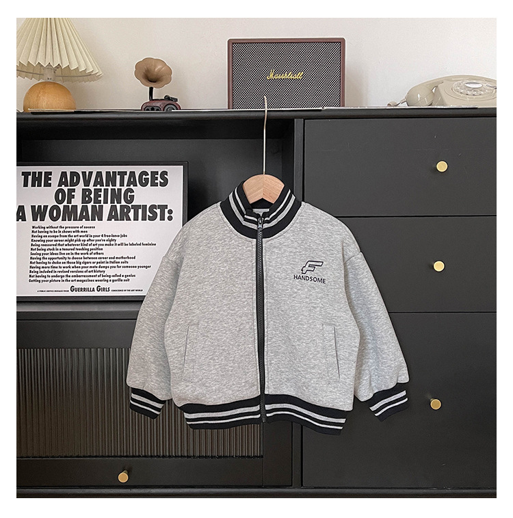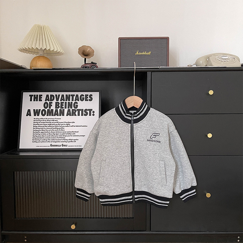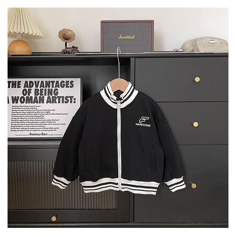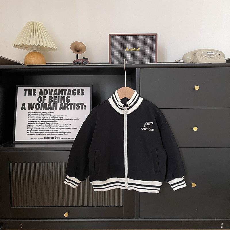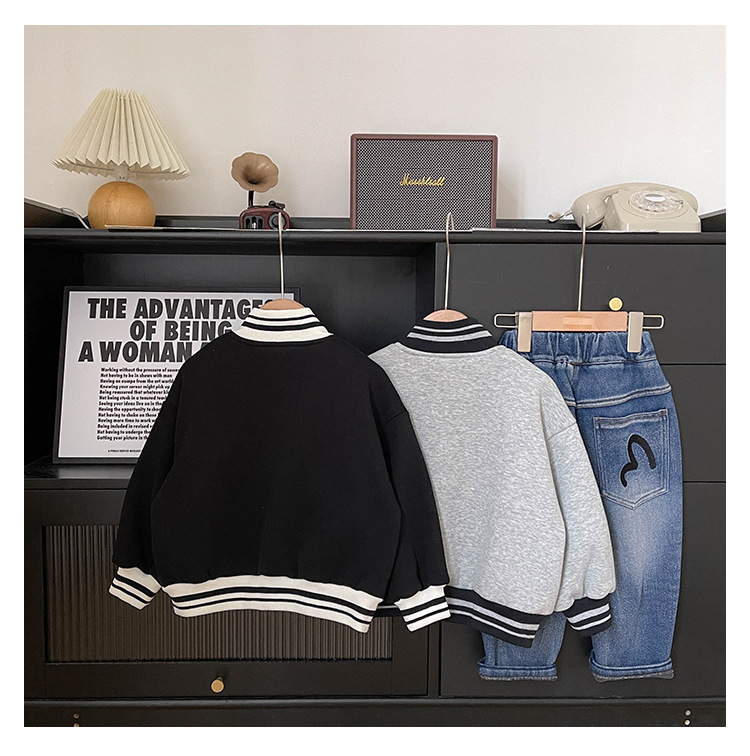 Xianao 2023 겨울 새로운 아동 자켓 자수 편지 원피스 벨벳 한국식 세로 칼라 남아 자켓 지퍼 셔츠스토어 가기