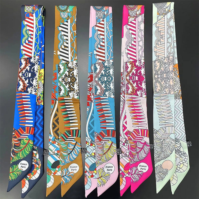 새로운 긴 작은 실크 스카프 모조 실크 능 직물 리본 스카프 넥타이 가방 핸들 리본 머리 벨트 작은 스카프 도매