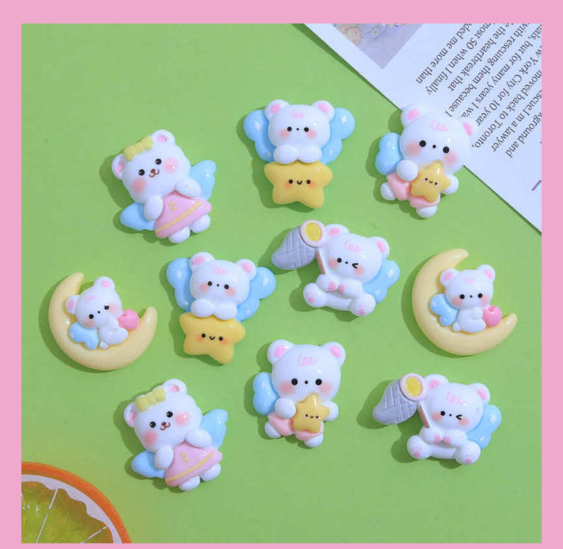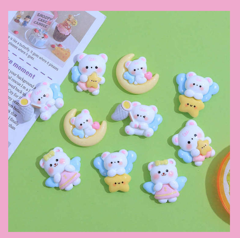 리틀 플라잉 베어 만화 신선한 DIY 크림 젤 헤어 클립 수제 휴대 전화 케이스 수지 액세서리 신발 버클 보석 재료스토어 가기