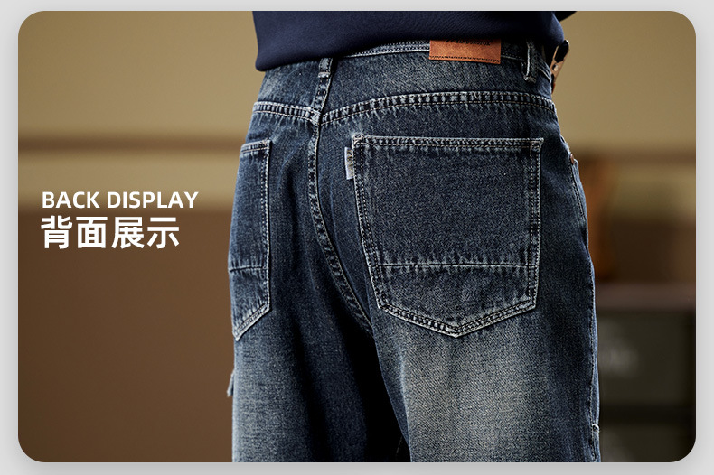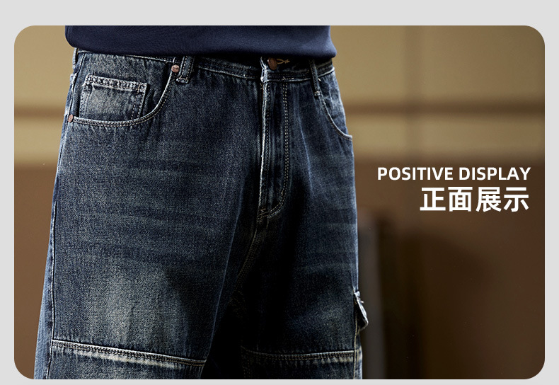 일본 복고풍 사료 청바지 남성 가을과 겨울 느슨한 플러스 사이즈 타이드 브랜드 멀티 포켓 스트레이트 팬츠스토어 가기