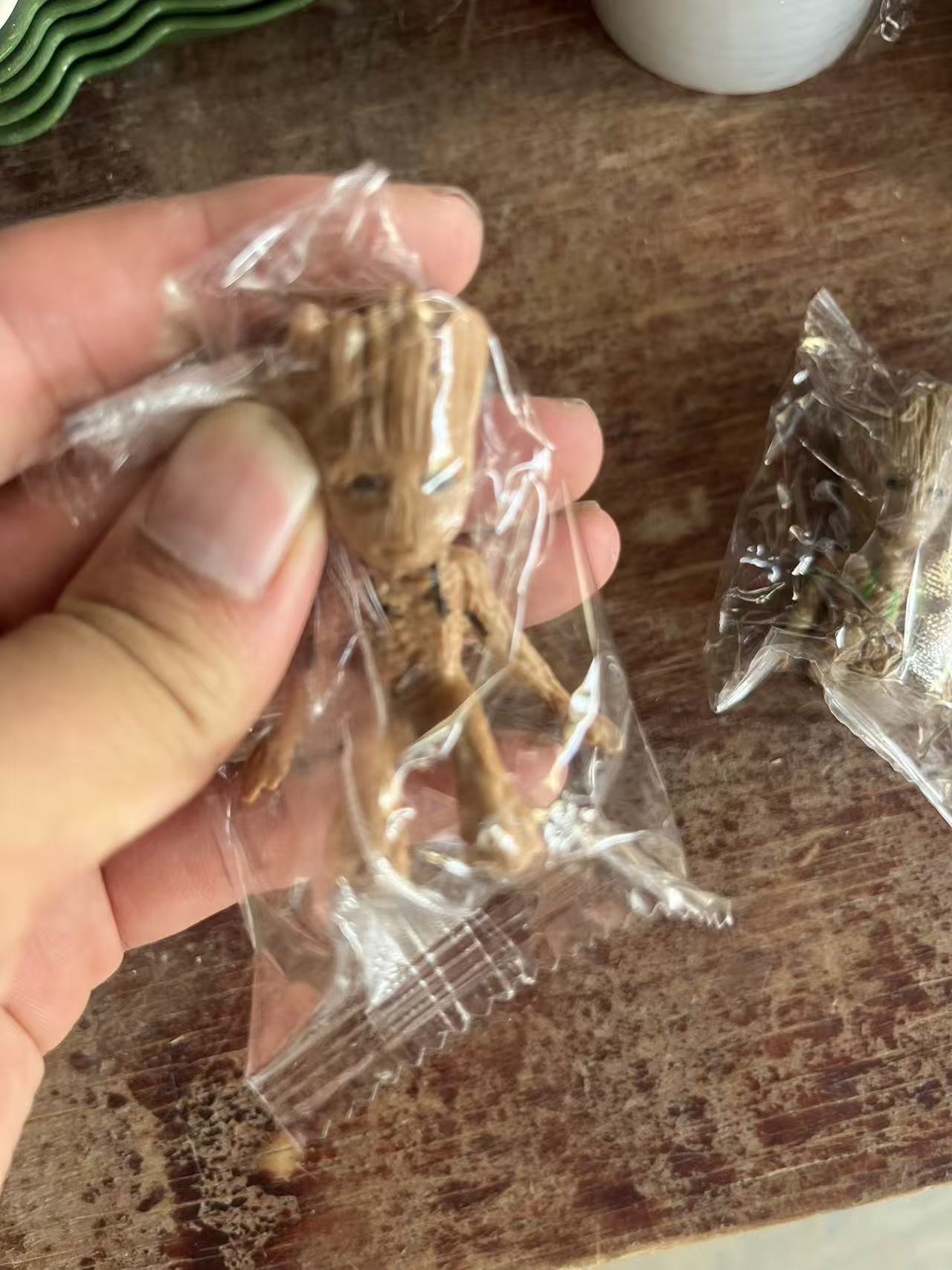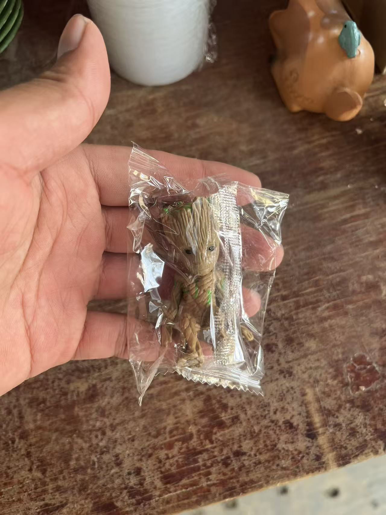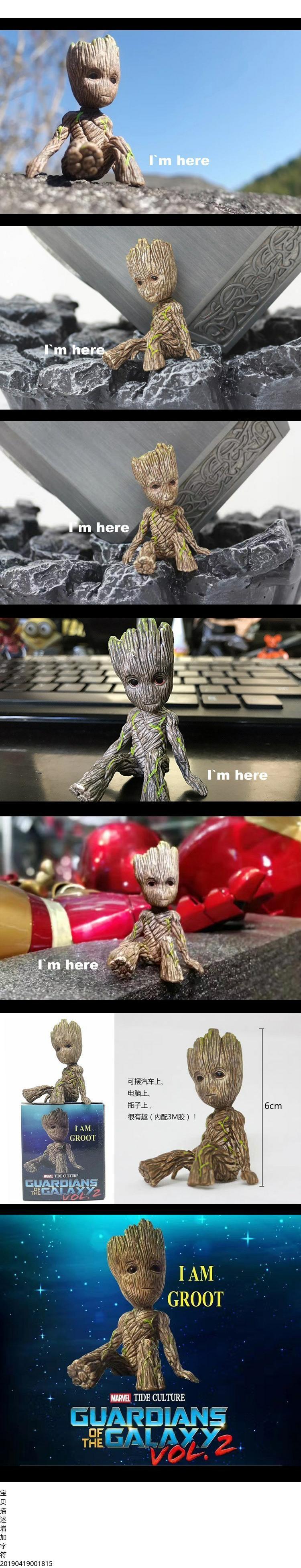 앉아있는 자세 그루트 포켓 에디션 나무 남자 아기 장식품 모델 갤럭시 가드 손으로 만든 브라질 나무 화분 식물 장난감스토어 가기
