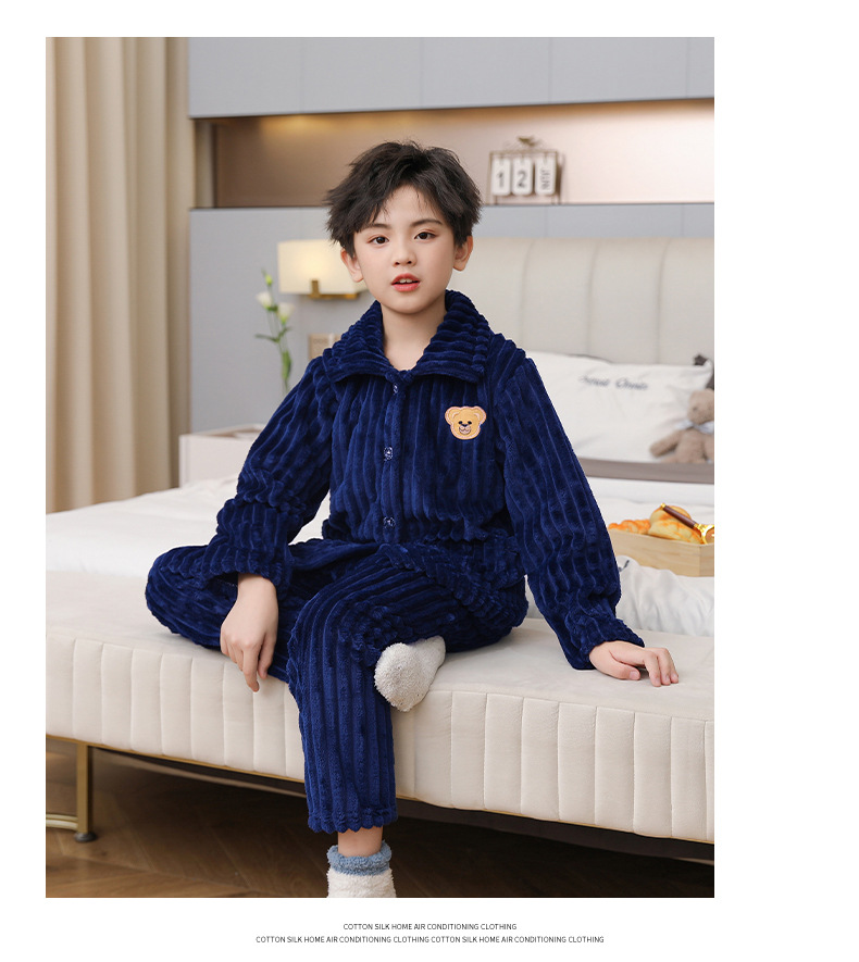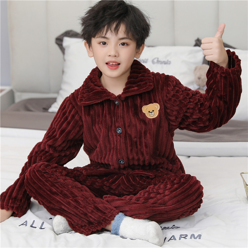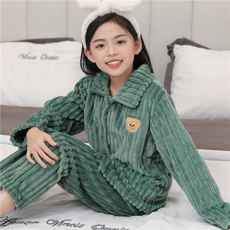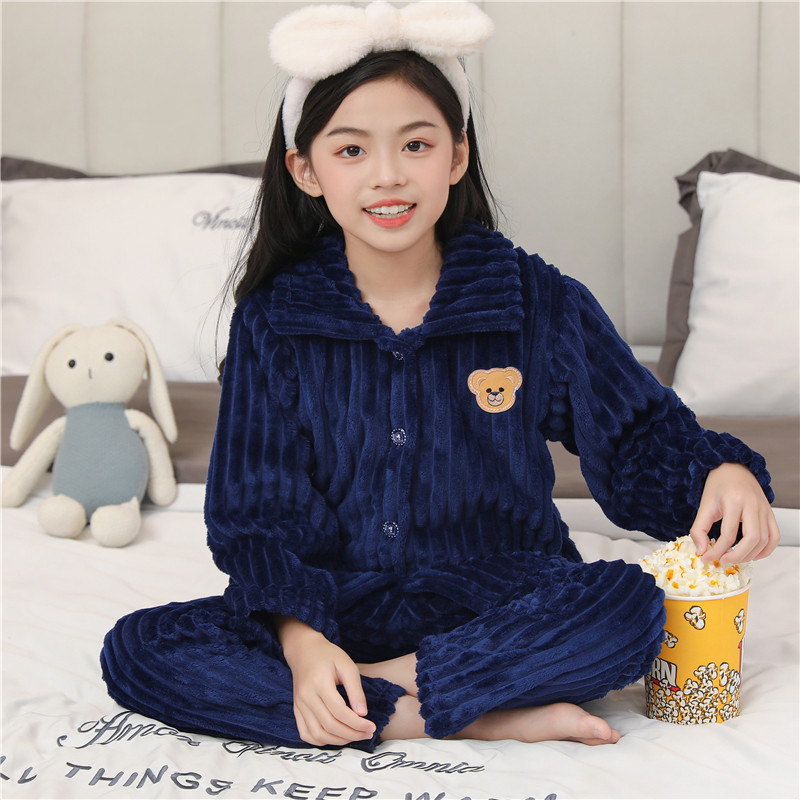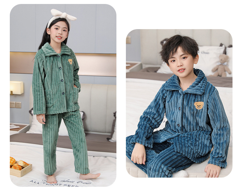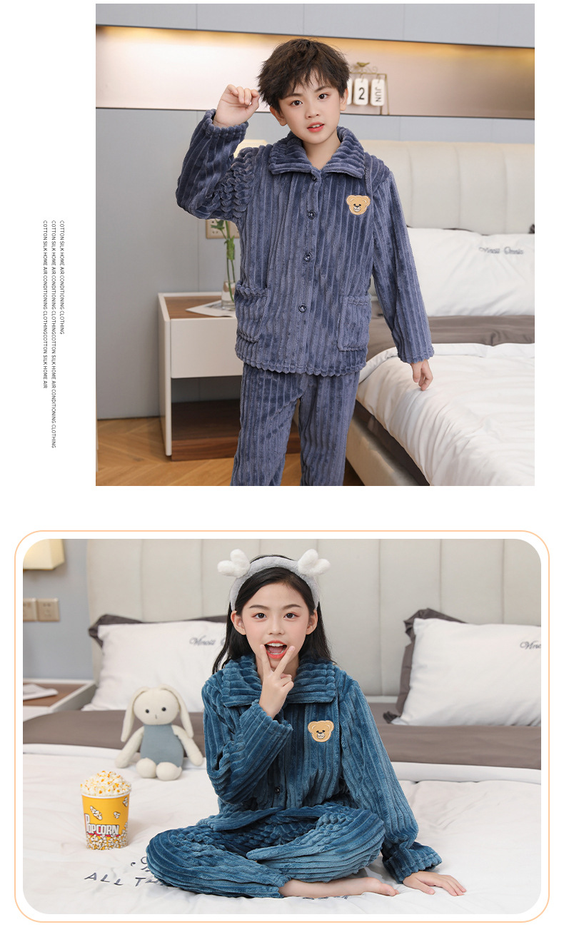 어린이 착용 어린이 플란넬 잠옷 소년과 소녀를위한 두꺼운 가을과 겨울 산호 양털 아기 어린이 가정 의류 세트