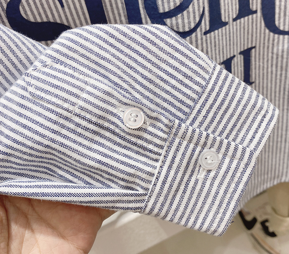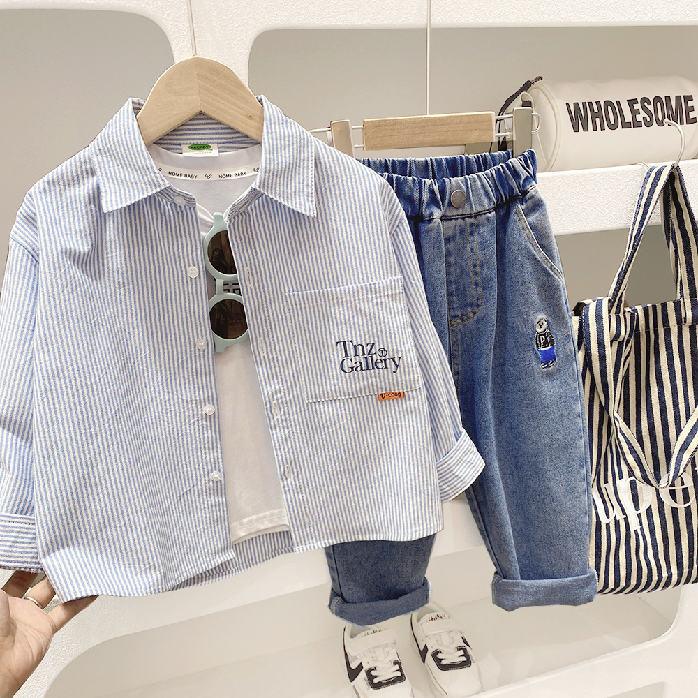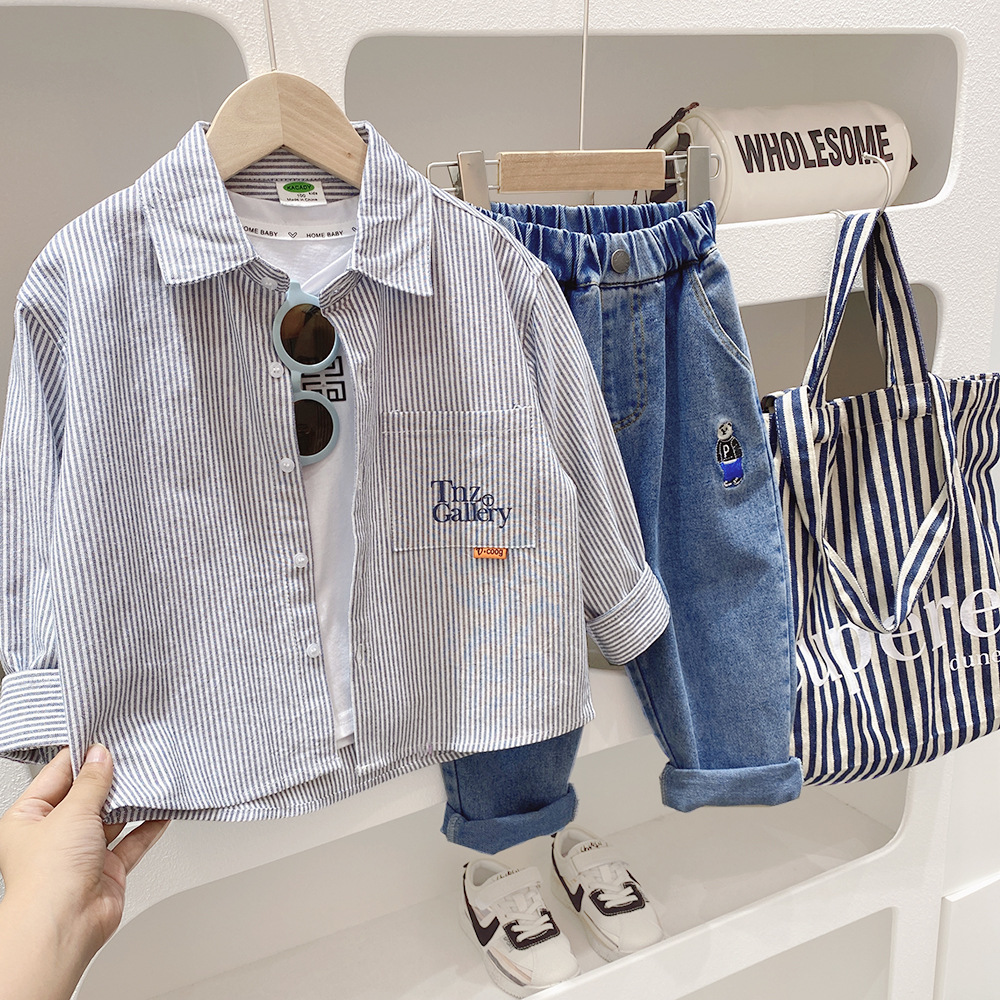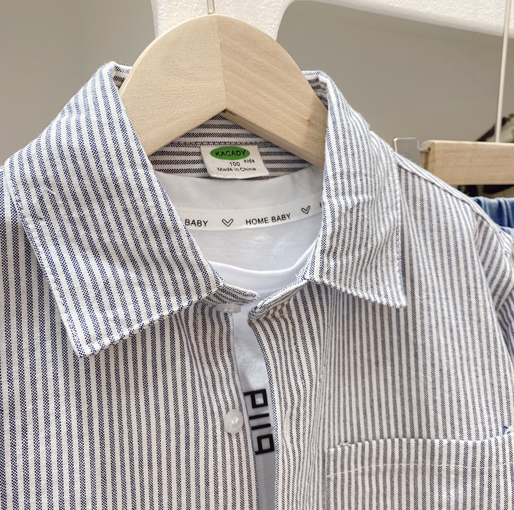 어린이 셔츠 남아 스트라이프 셔츠 봄과 가을 2023 가을 새로운 스타일 미드 빅 키즈 웨스턴 스타일 캐주얼 레터 탑스토어 가기