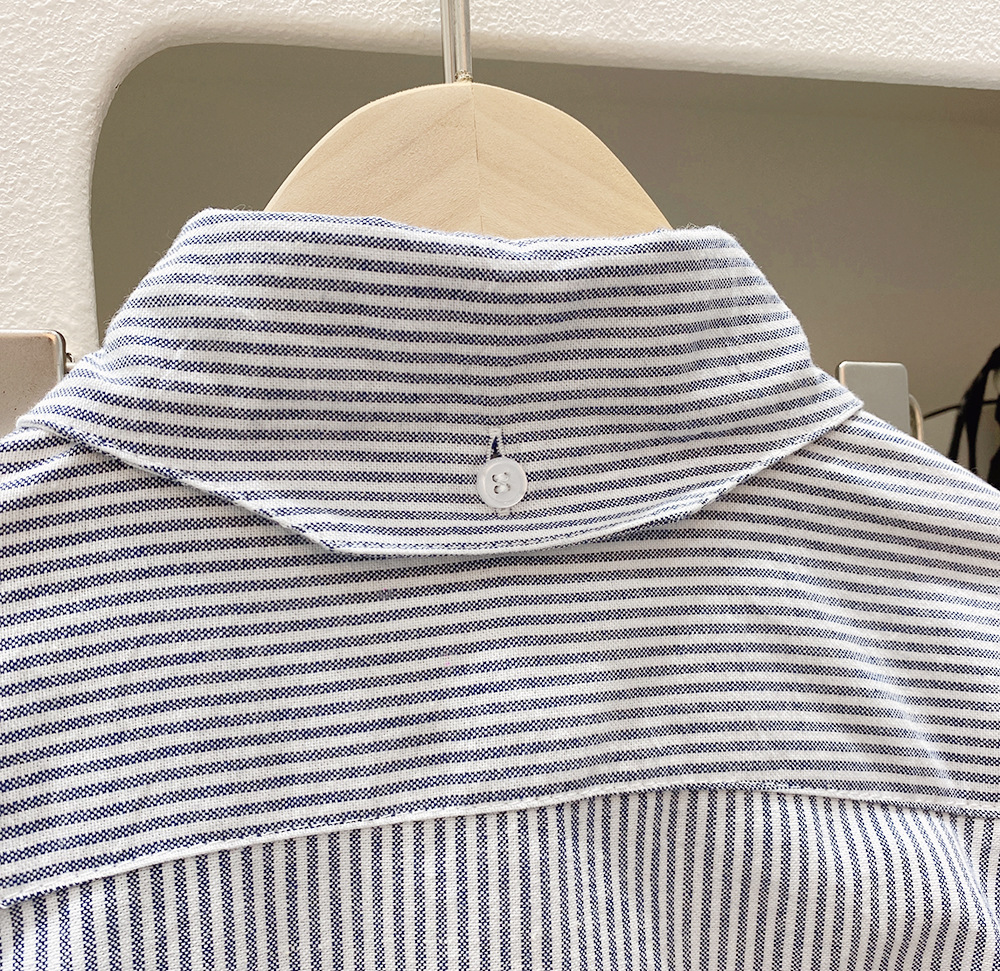 어린이 셔츠 남아 스트라이프 셔츠 봄과 가을 2023 가을 새로운 스타일 미드 빅 키즈 웨스턴 스타일 캐주얼 레터 탑