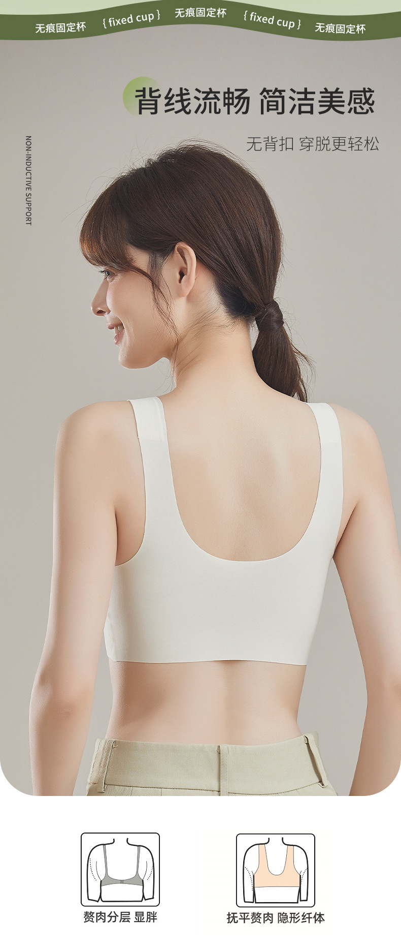 여성용 인기 U자형 브라 고정컵 속옷, 큰 가슴이 작아 보이고 편안하며 아름다운 등 스포츠 원피스 브라