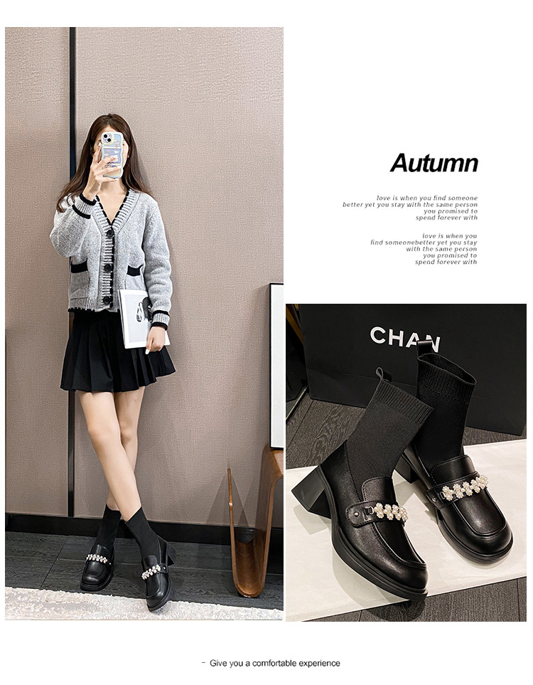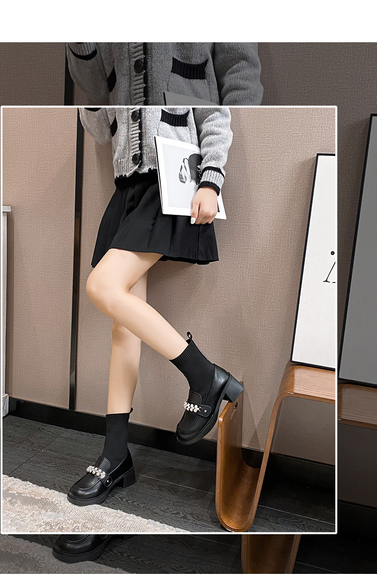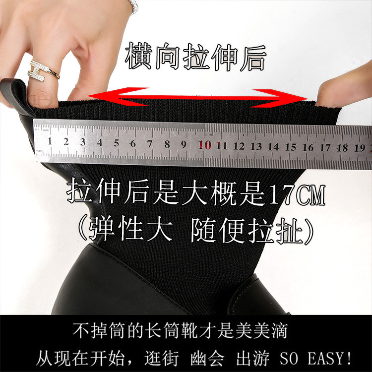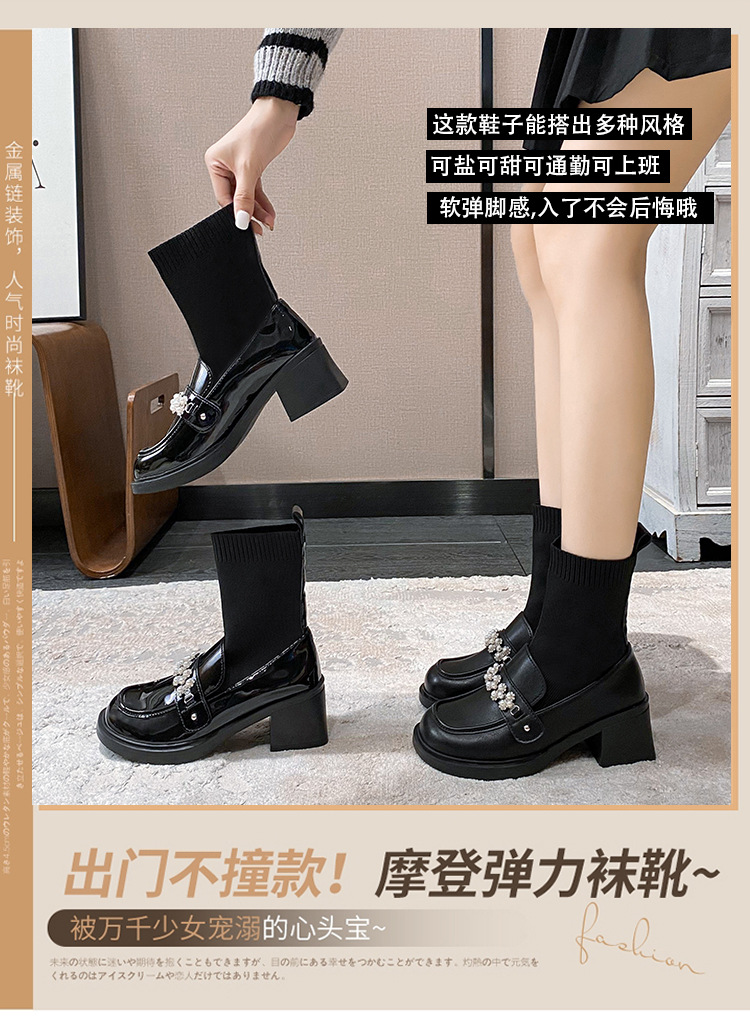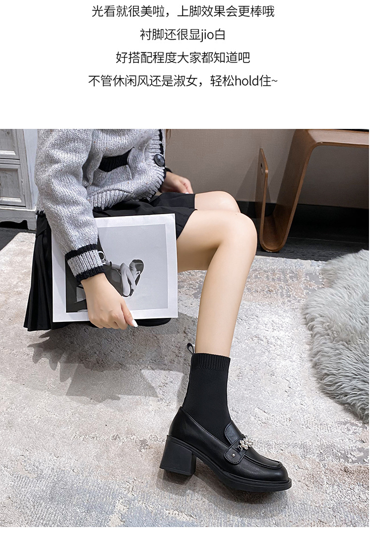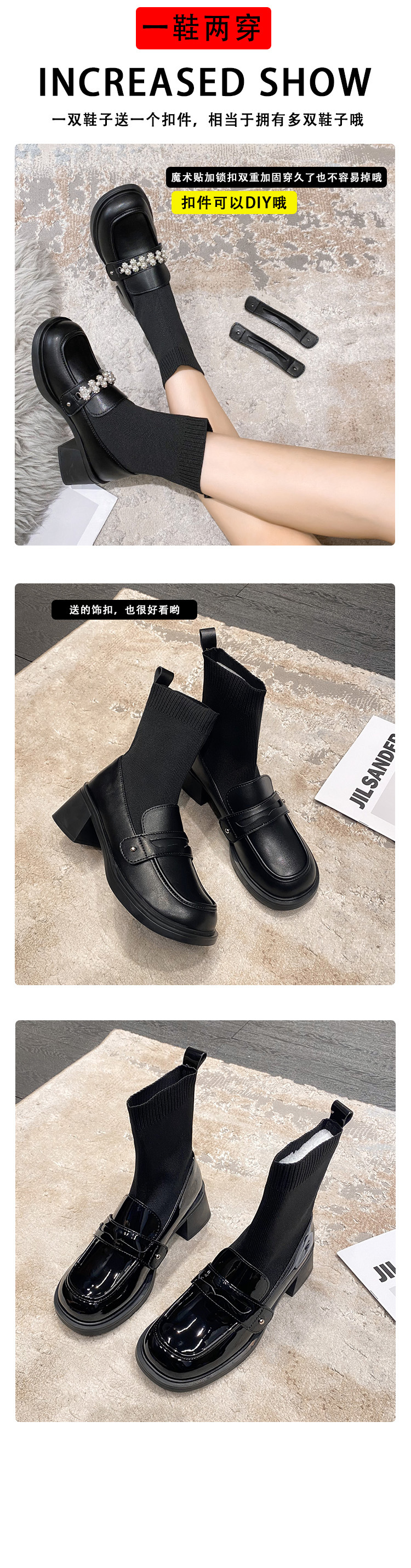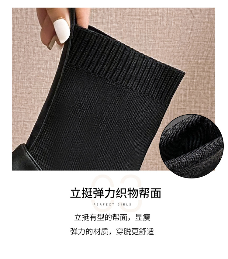Lefu 양말 부츠 여성의 봄과 가을 싱글 부츠 2023 새로운 스트레치 양말 신발 니트 짧은 부츠 두꺼운 단독 플러스 사이즈 마틴 부츠스토어 가기
