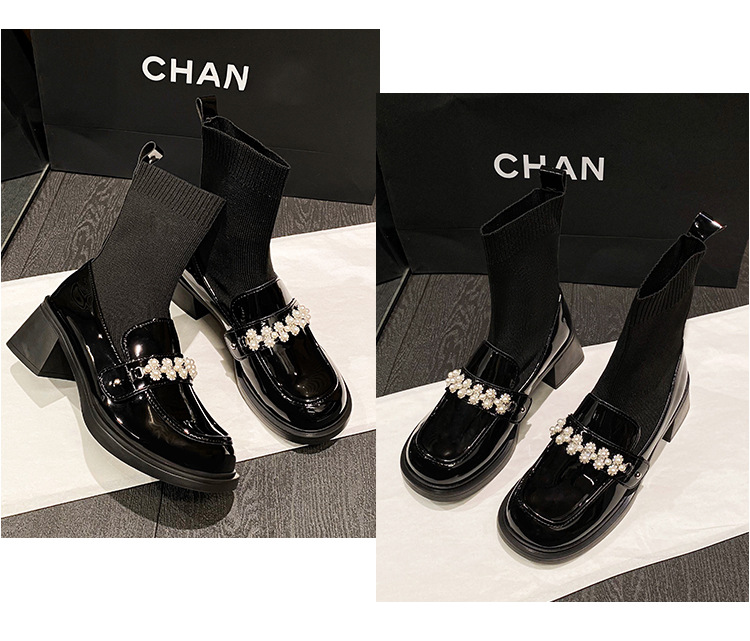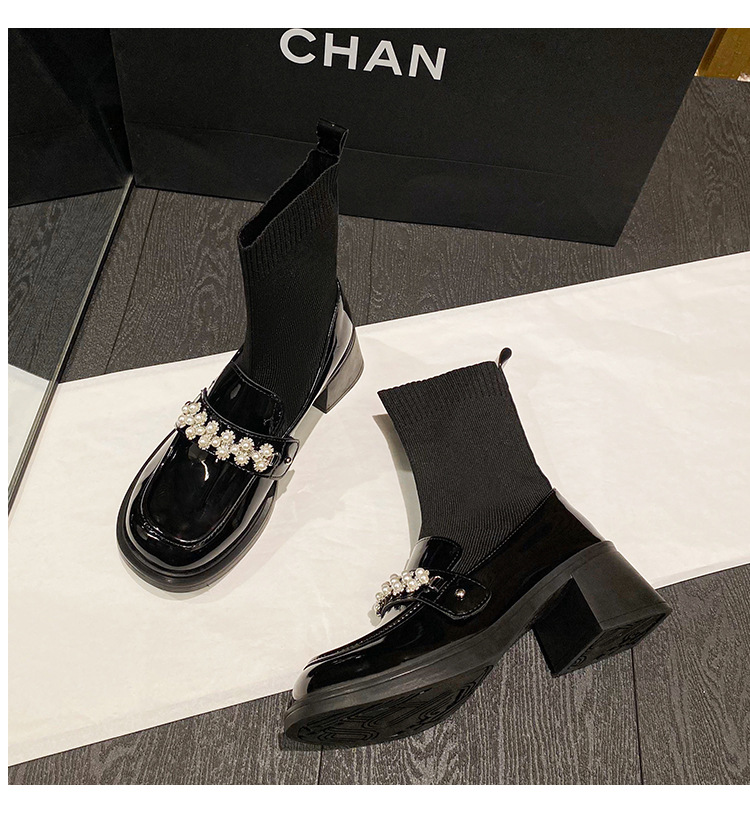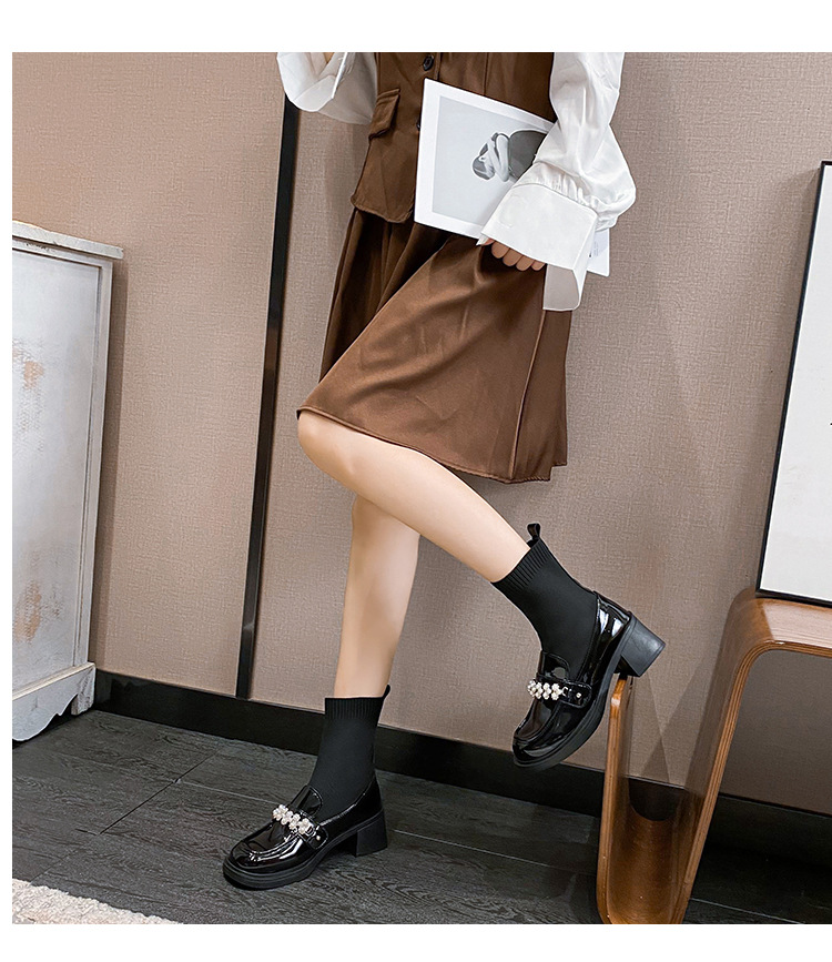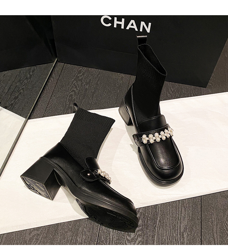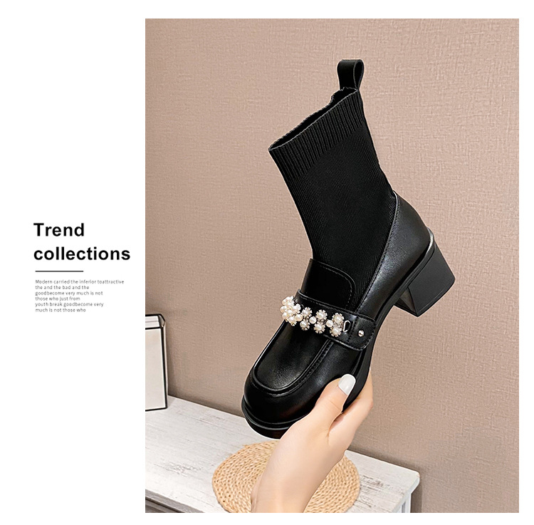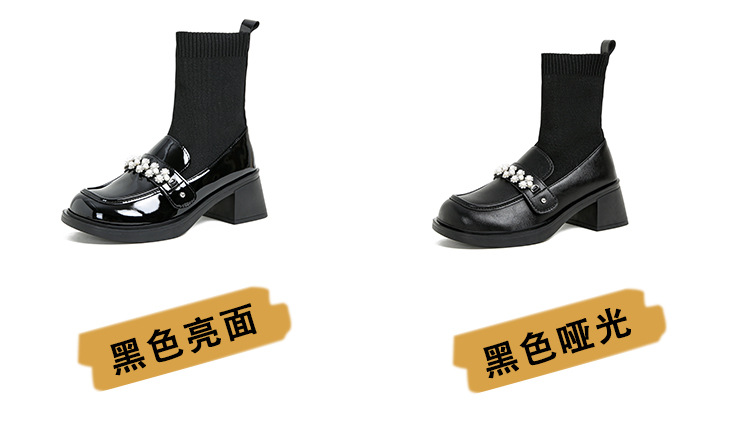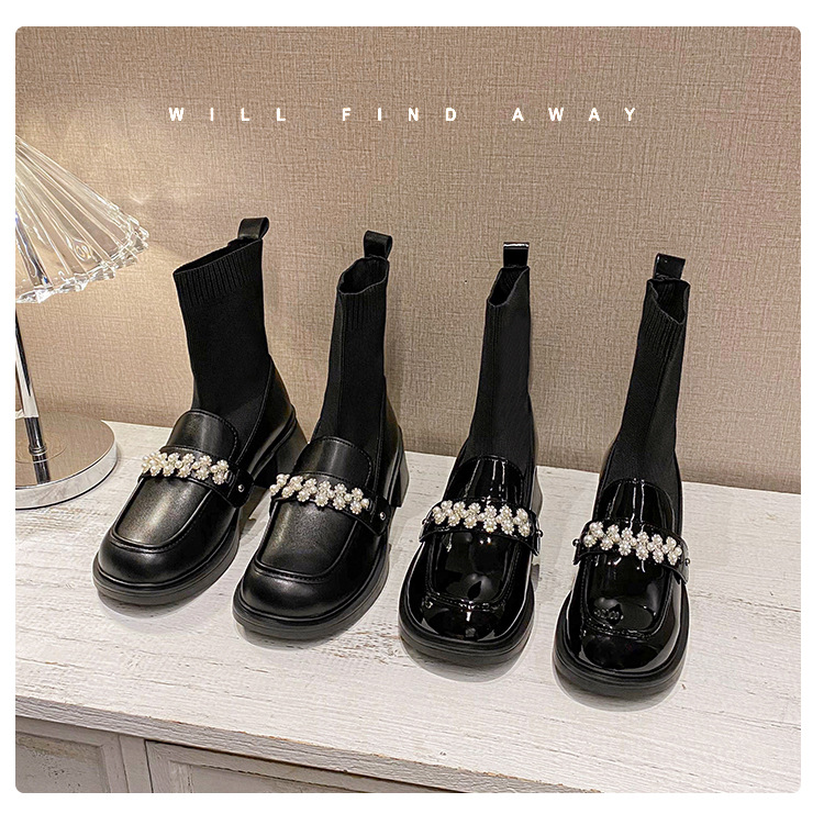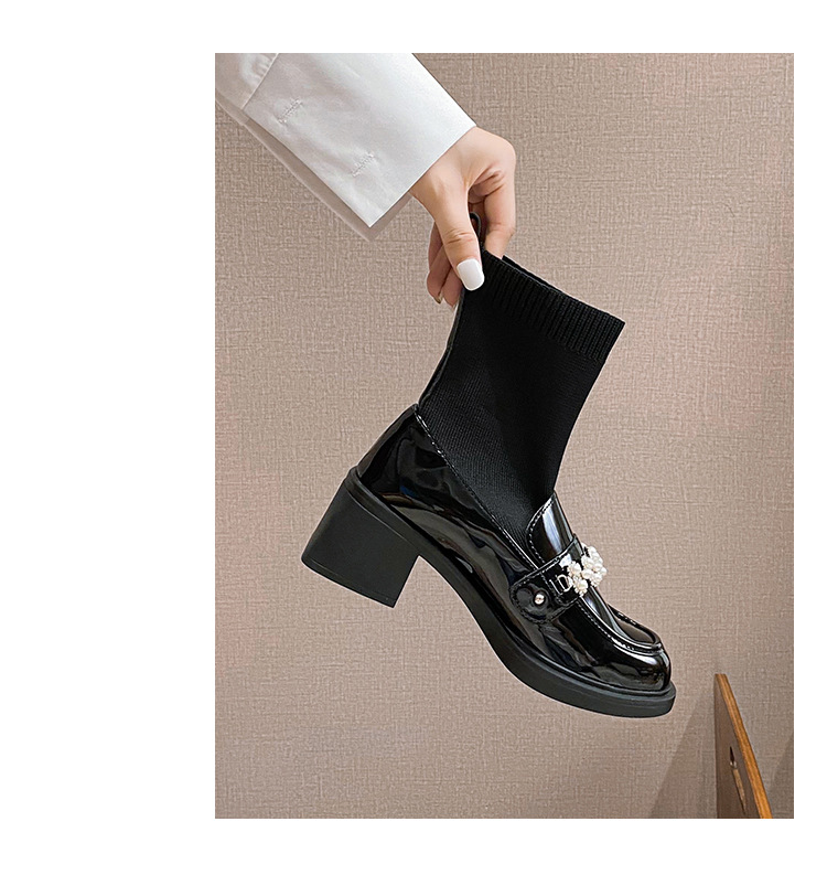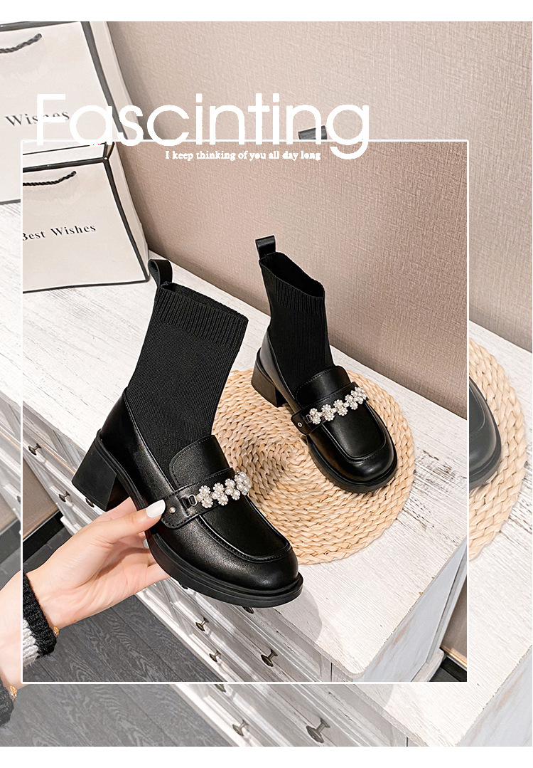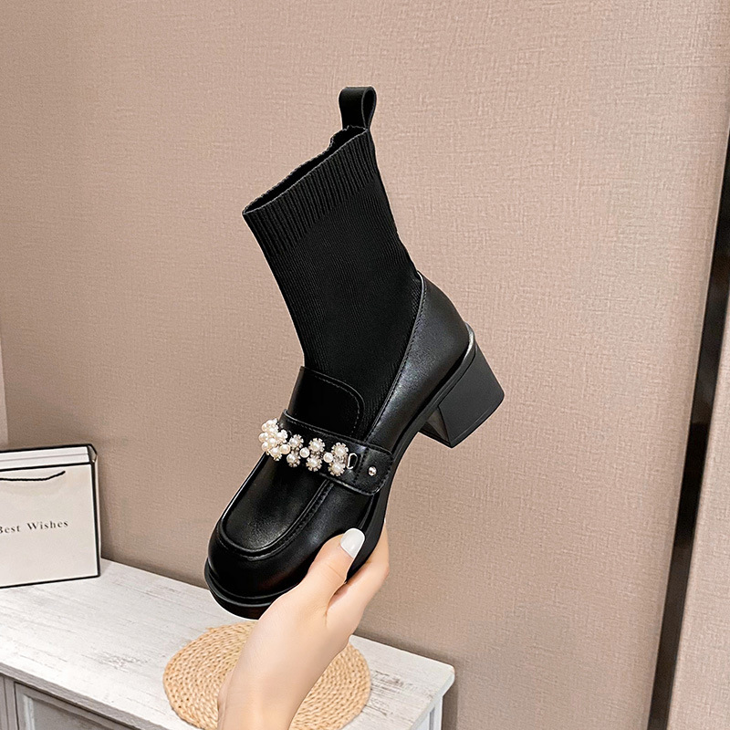 Lefu 양말 부츠 여성의 봄과 가을 싱글 부츠 2023 새로운 스트레치 양말 신발 니트 짧은 부츠 두꺼운 단독 플러스 사이즈 마틴 부츠스토어 가기