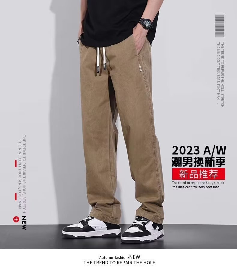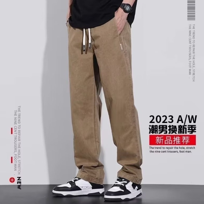 남성용 아메리칸 스타일 오버롤 2023 가을 새로운 와이드 레그 스포츠 남성용 바지 모든 매치 루즈한 스트레이트 캐주얼 롱 팬츠