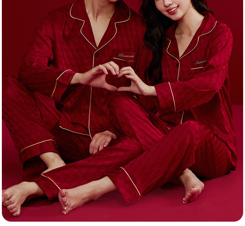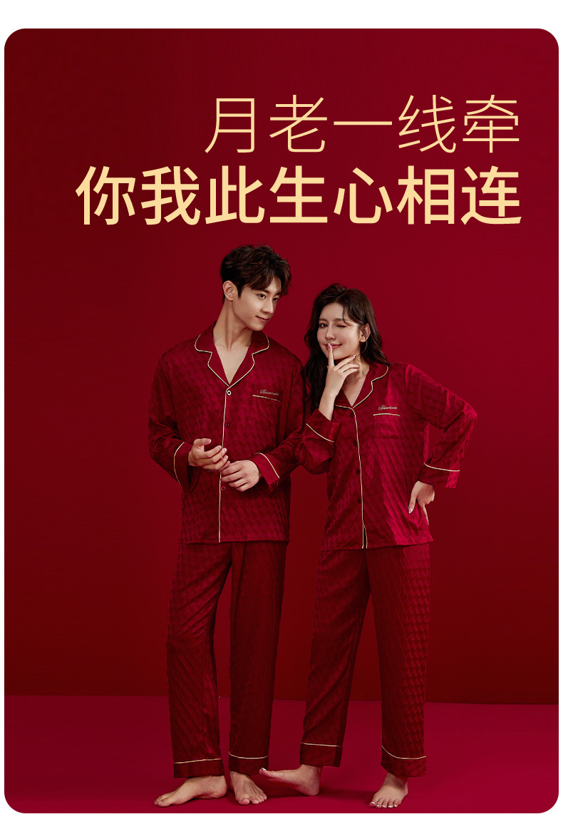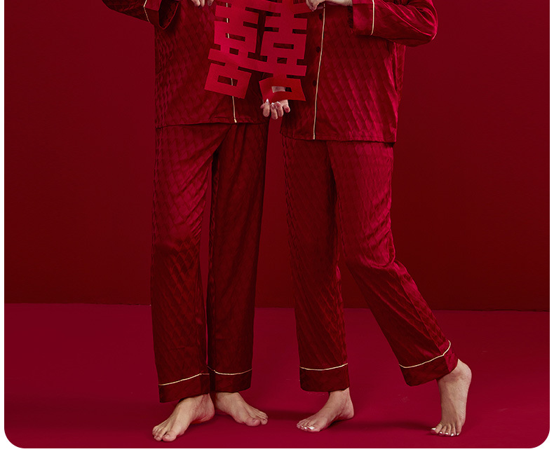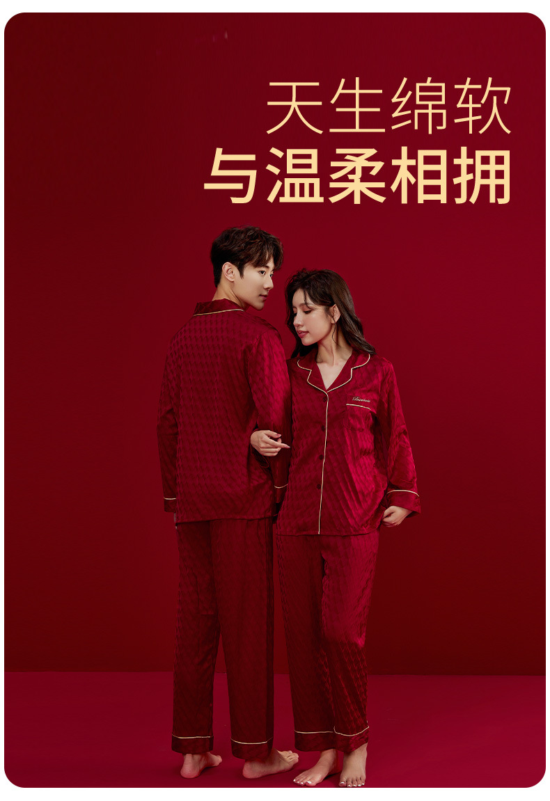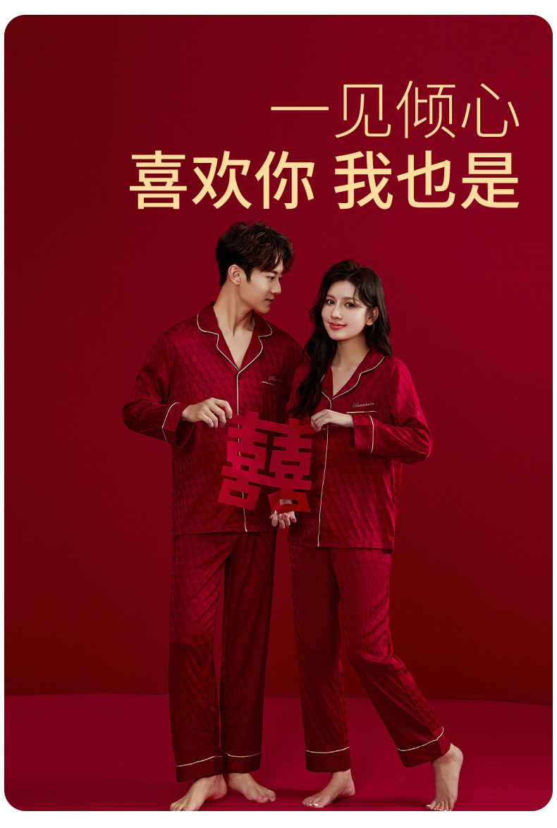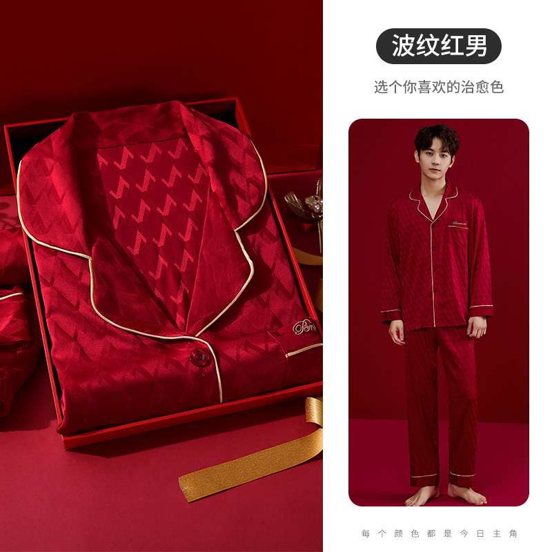빨간 결혼식 잠옷 커플 의류 한 남자와 한 여자 신부 고급 동행 결혼 년 드래곤 아이스 실크 가정용 옷