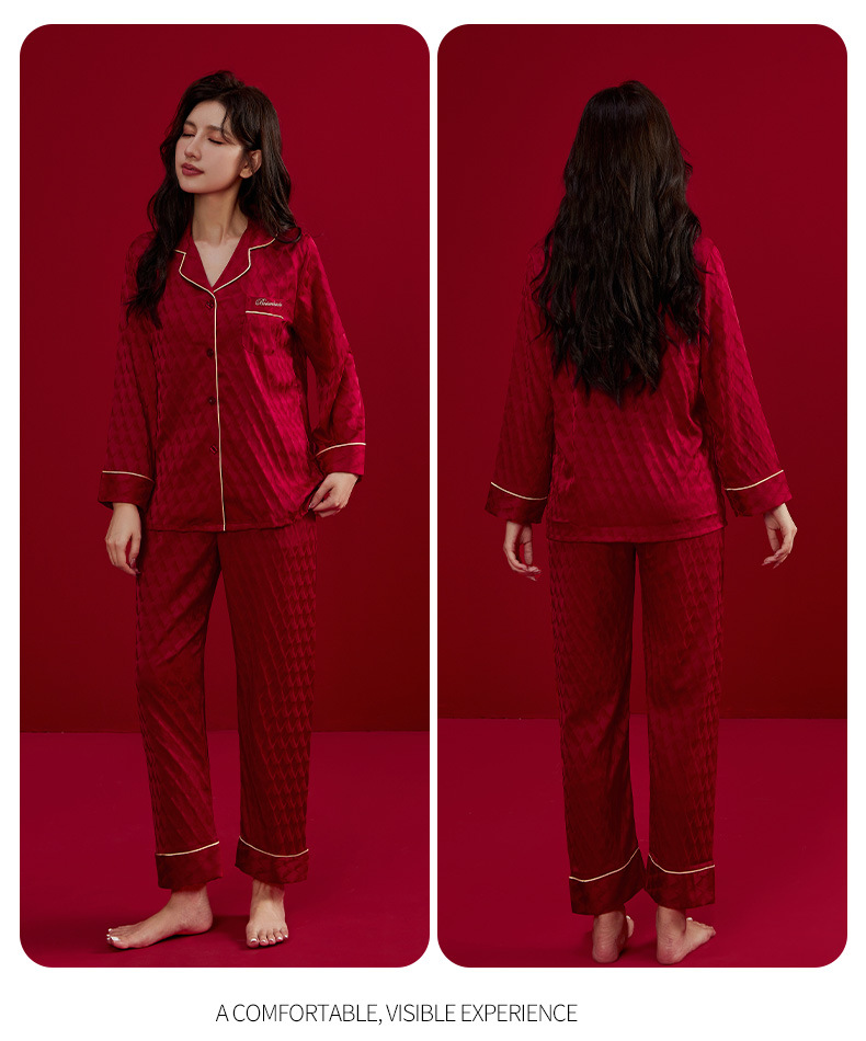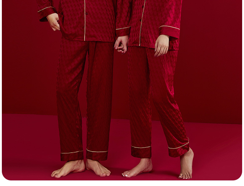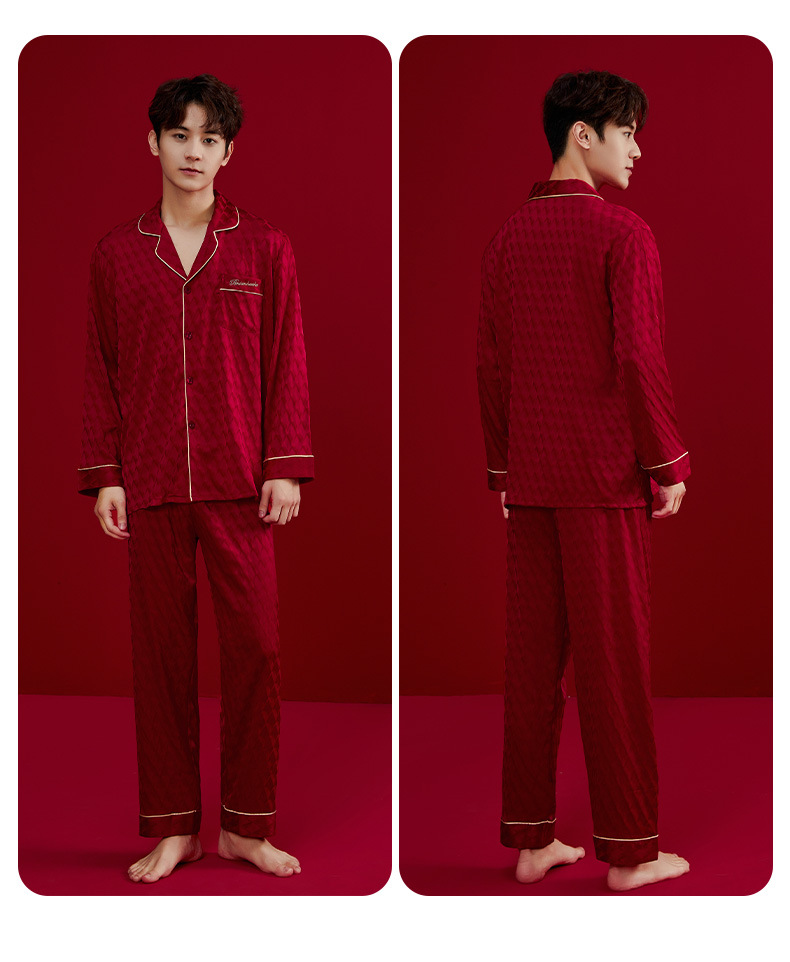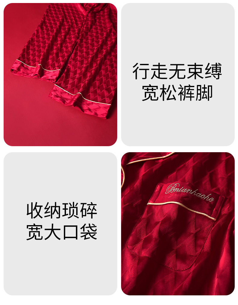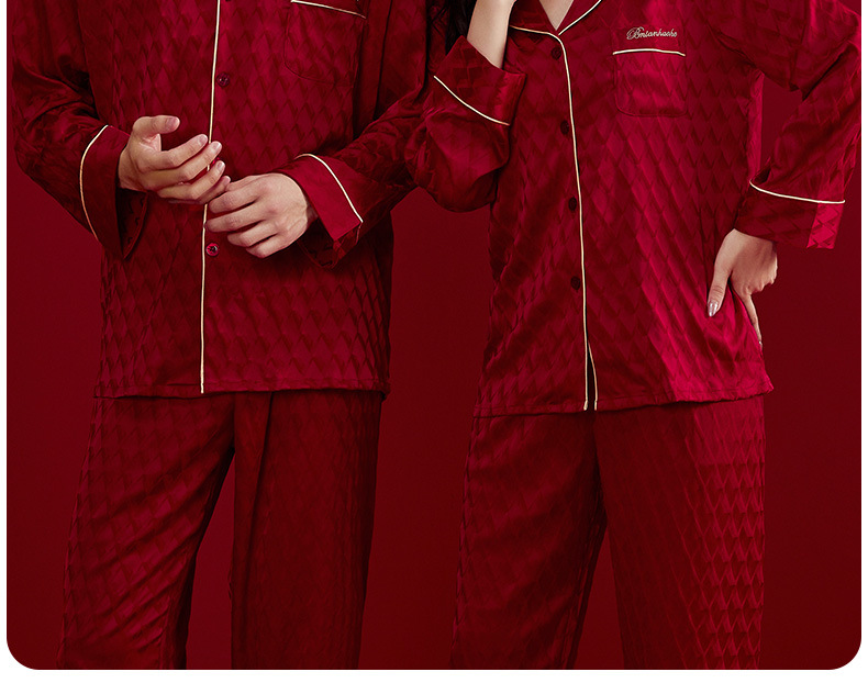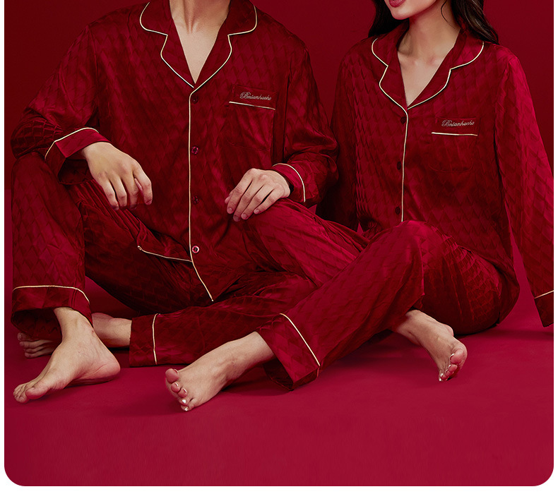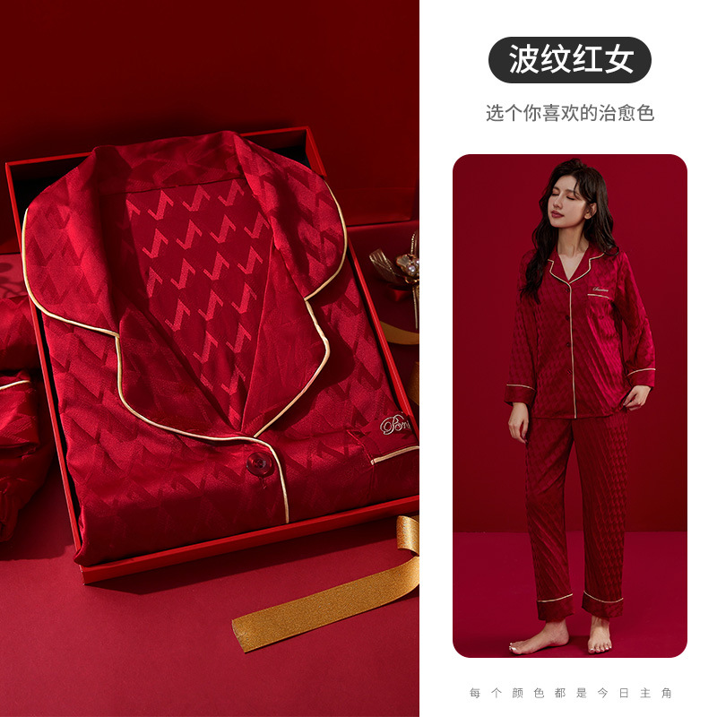 빨간 결혼식 잠옷 커플 의류 한 남자와 한 여자 신부 고급 동행 결혼 년 드래곤 아이스 실크 가정용 옷