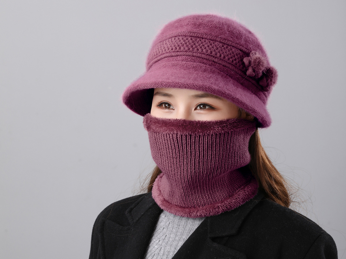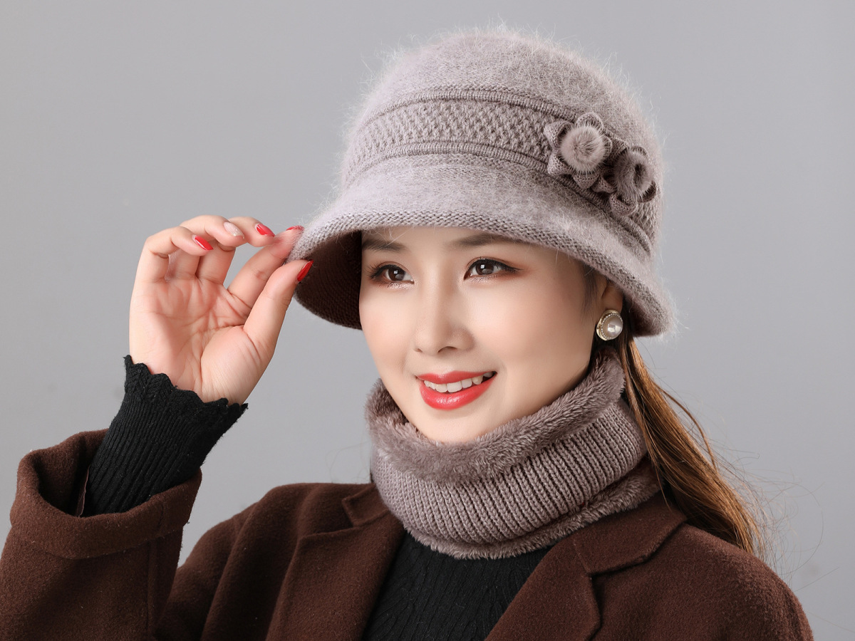 따뜻한 토끼 모피 모자 중년 및 노인 모자 가을과 겨울 여성 스카프 투피스 노인 겨울 분지 모자