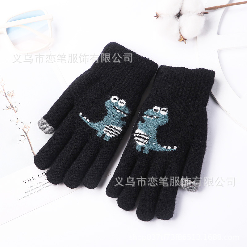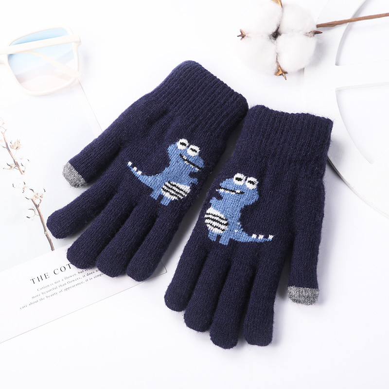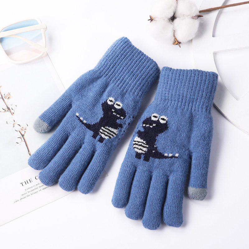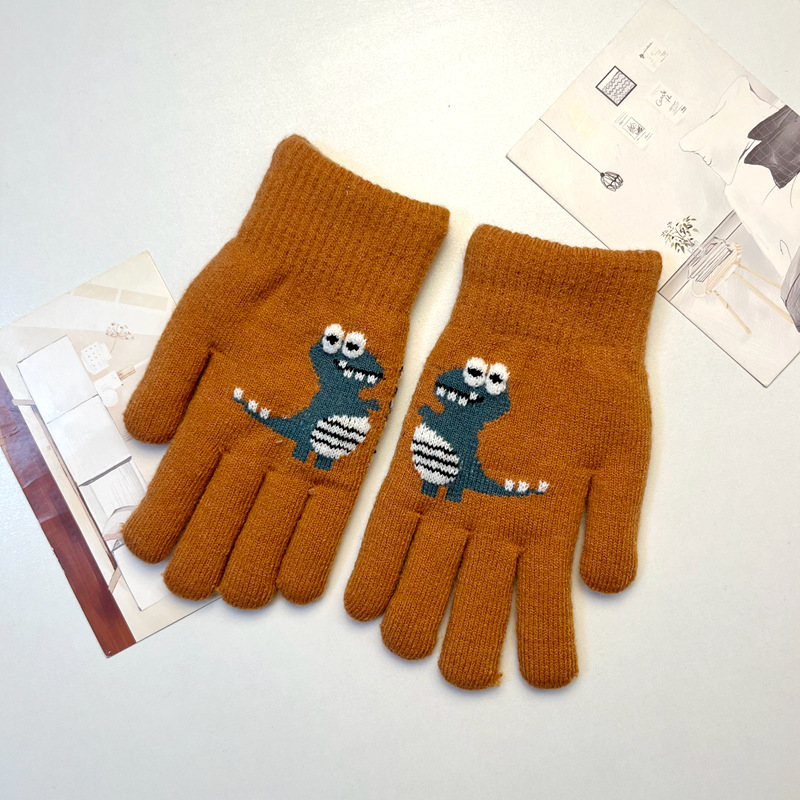 어린이 장갑 겨울 소년 중간 및 큰 어린이 기모 두꺼운 공룡 다섯 손가락 따뜻한 학생의 손가락 방풍 사이클링 조수스토어 가기