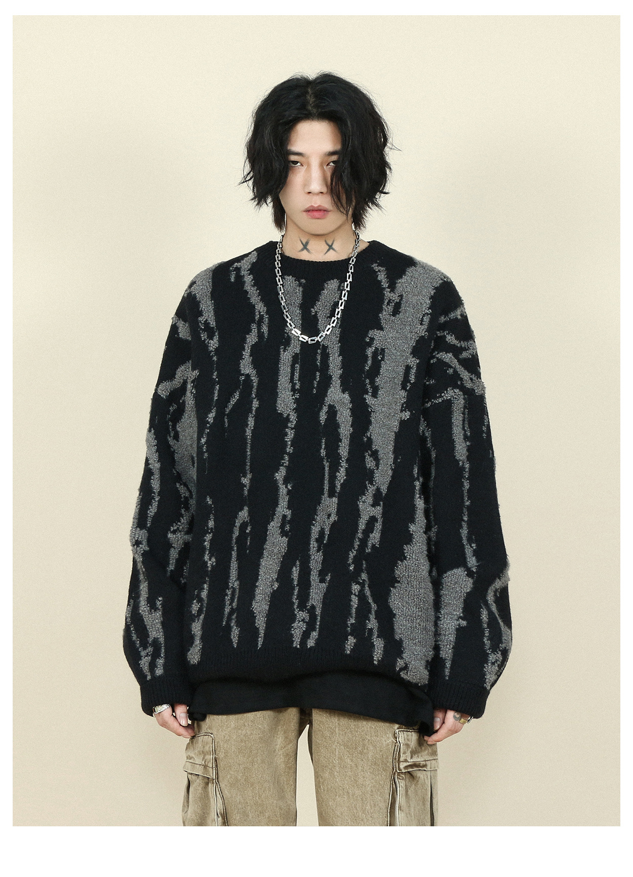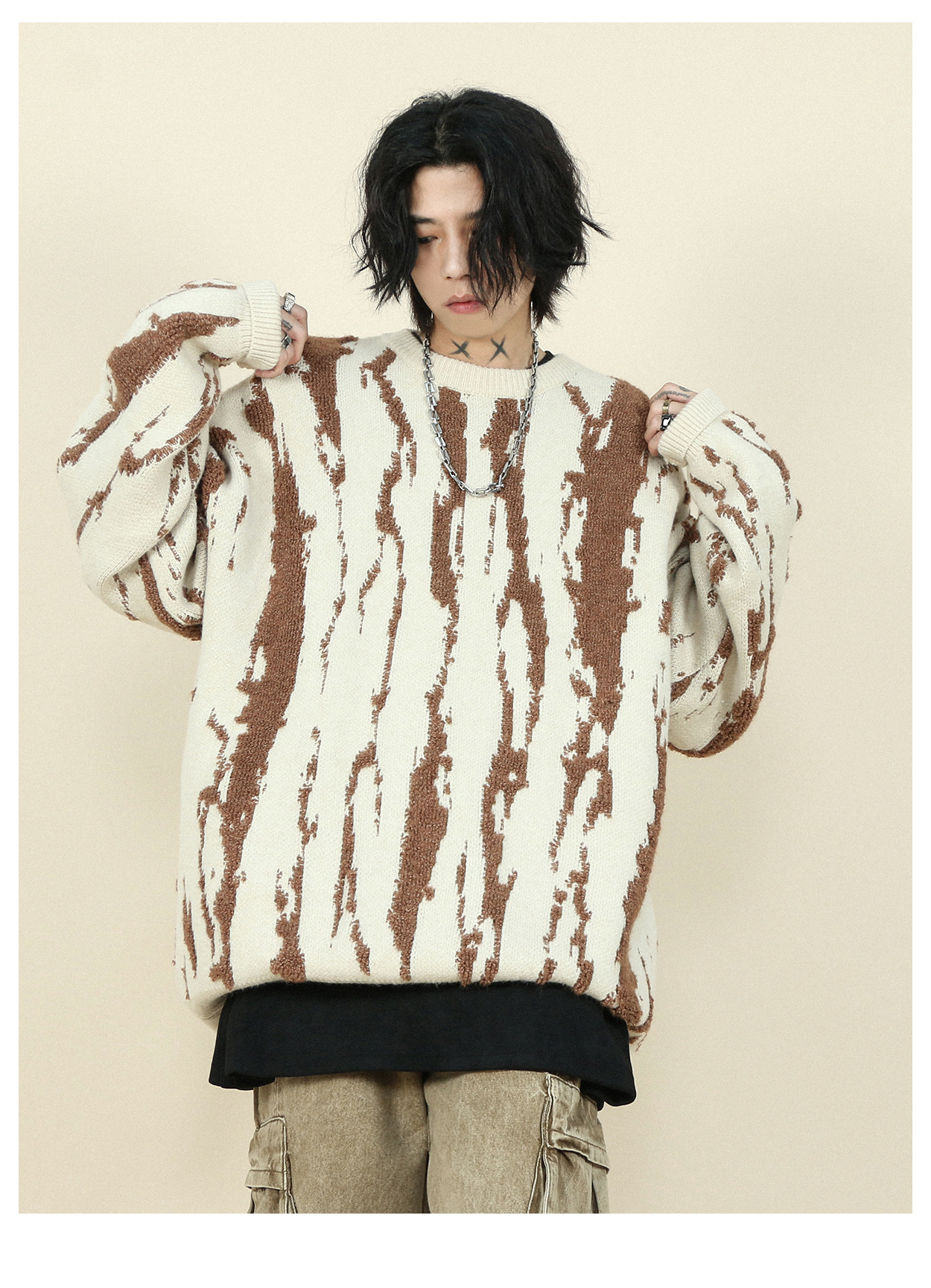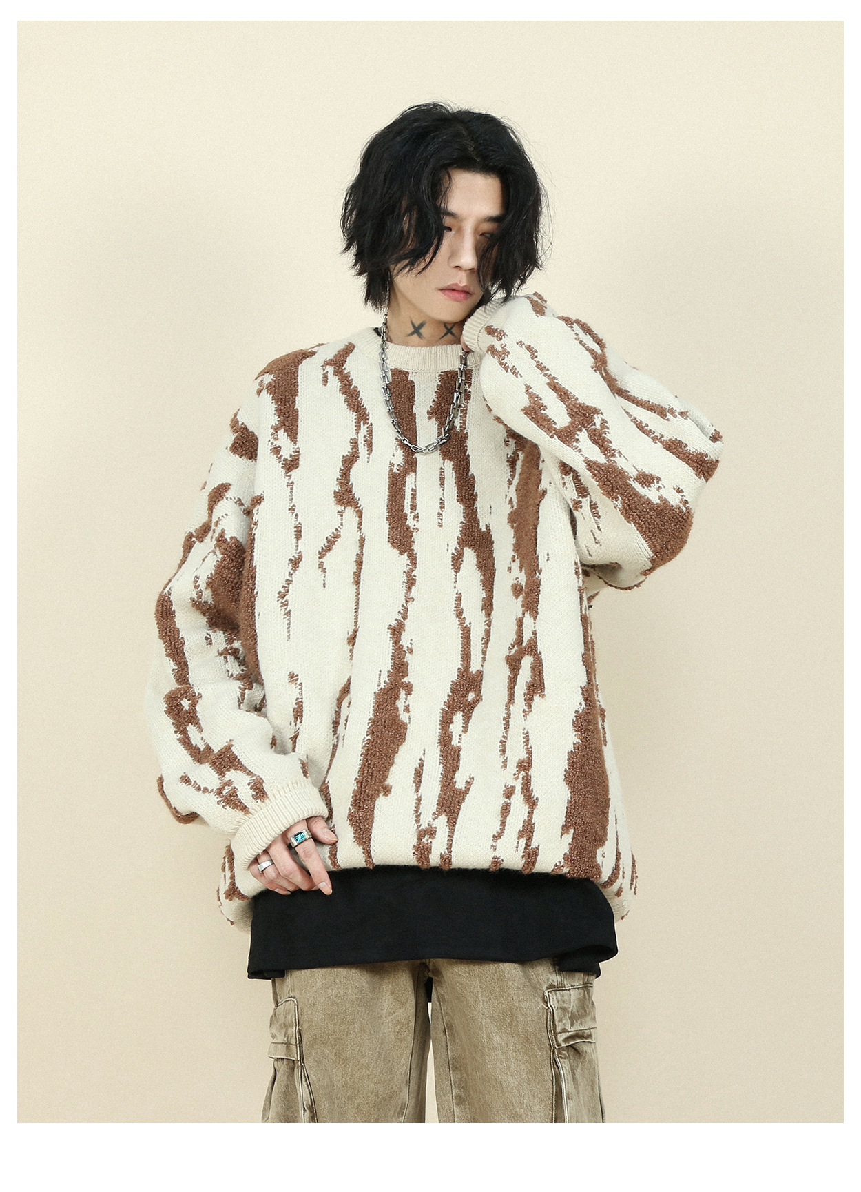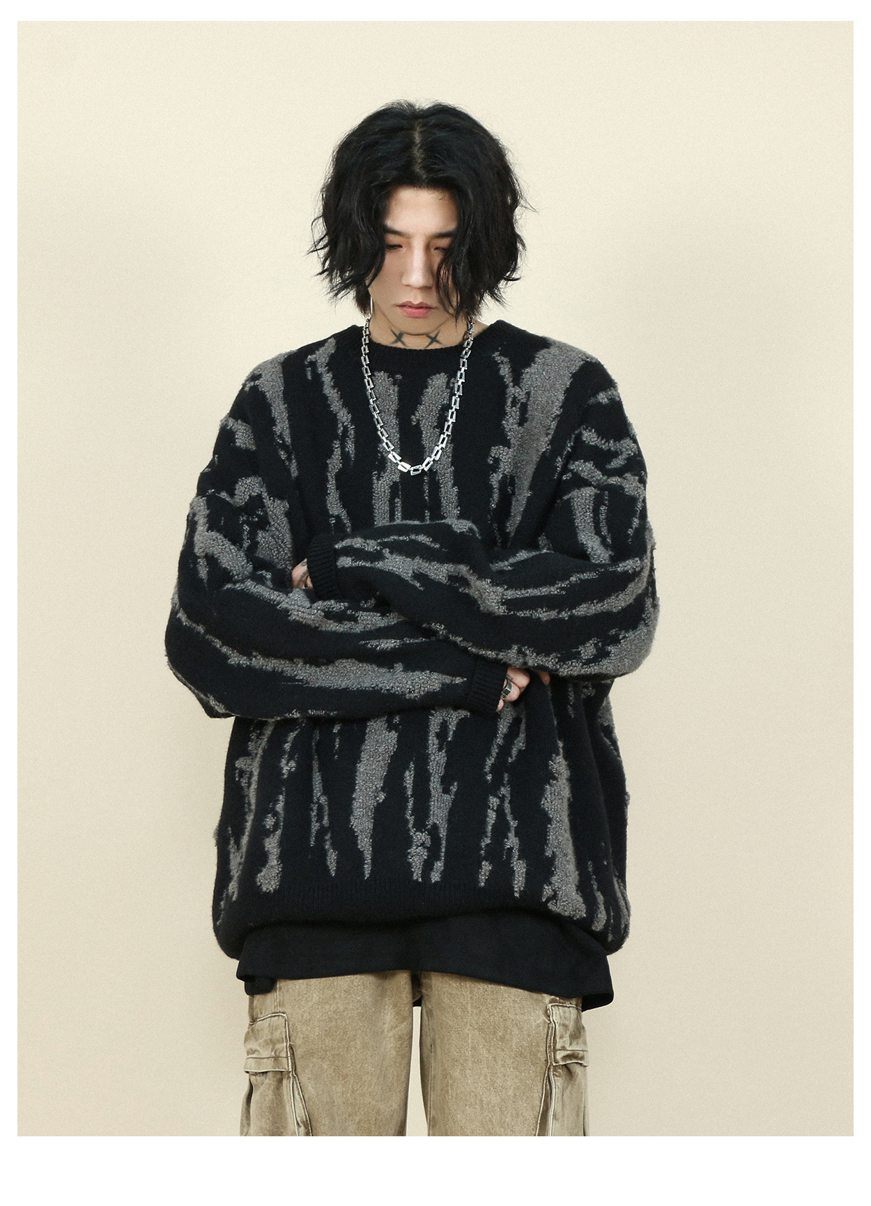트렌디한 국풍 비대칭 배색 스웨터 남성용 겨울 인스 트렌드 브랜드 커플 스타일 미국식 루즈 니트웨어스토어 가기