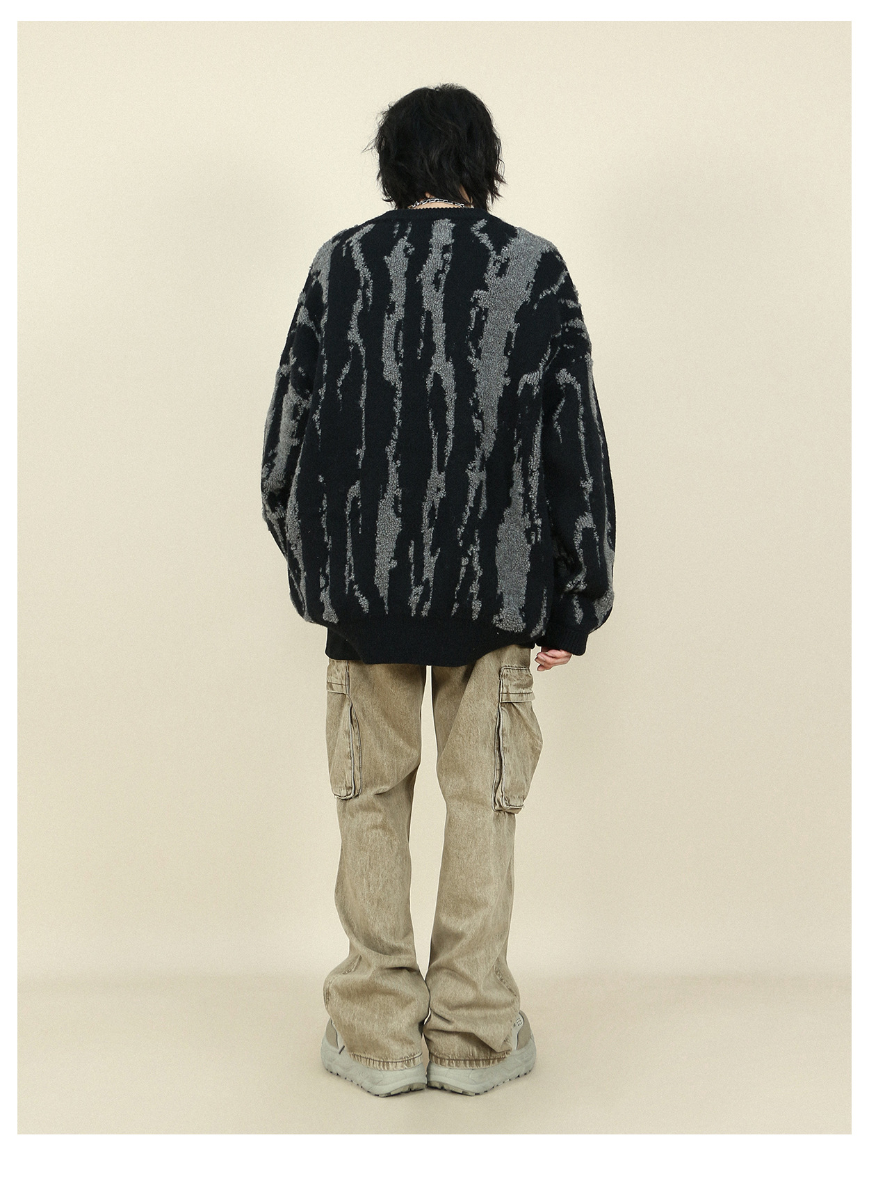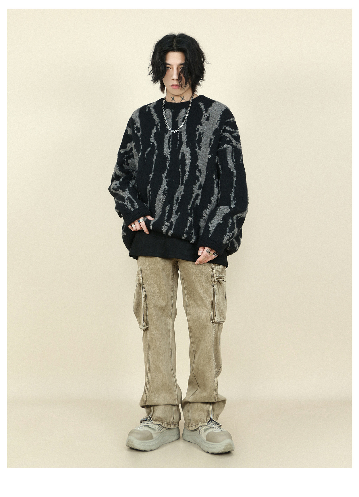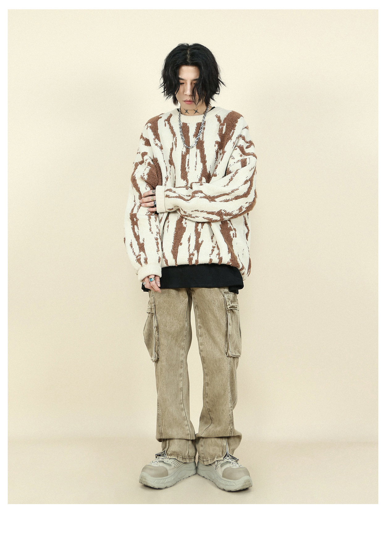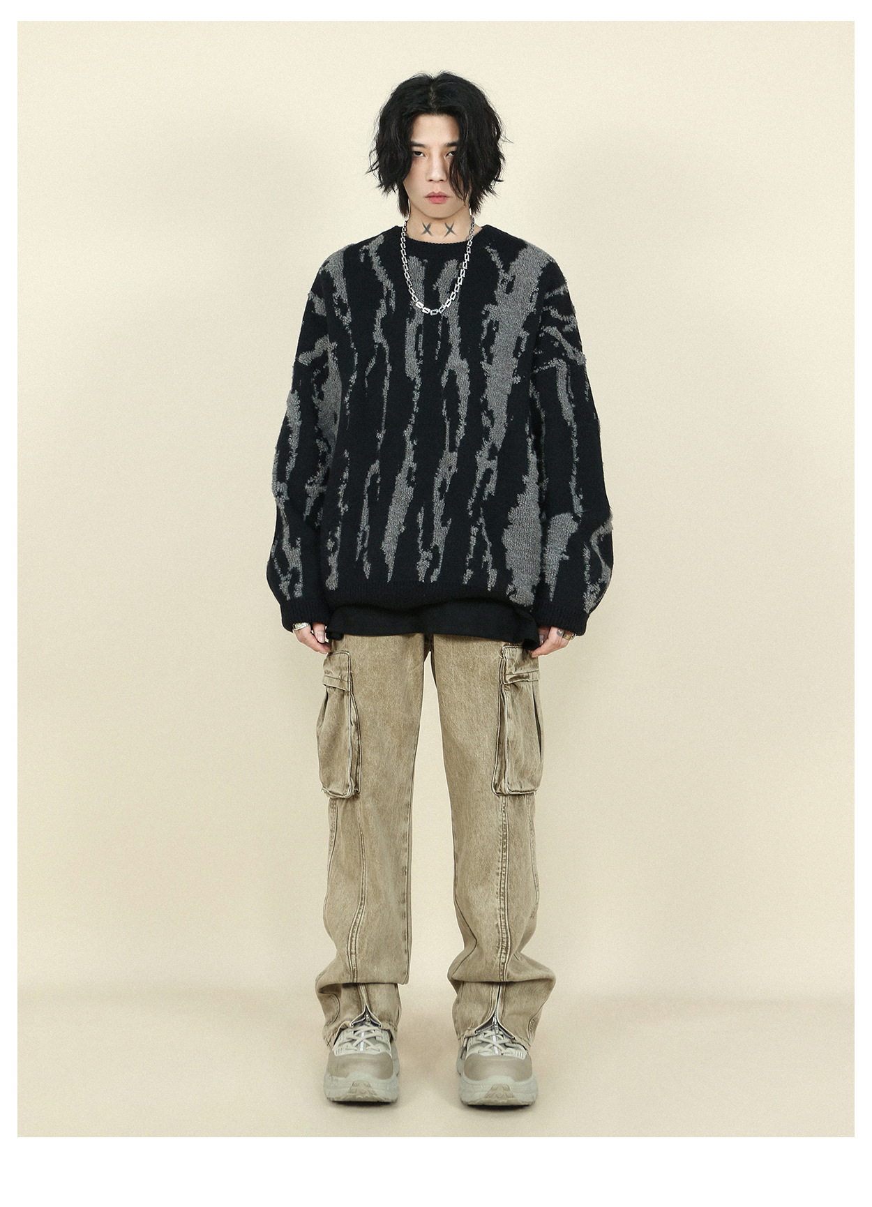 트렌디한 국풍 비대칭 배색 스웨터 남성용 겨울 인스 트렌드 브랜드 커플 스타일 미국식 루즈 니트웨어스토어 가기