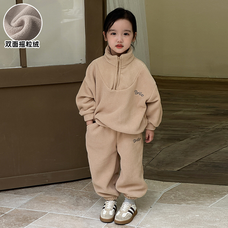 어린이 가을 겨울 플리스 세트 남아용 플리스 스웨트셔츠 여아용 스포츠 2024 신상 봄 가을 아기 옷스토어 가기
