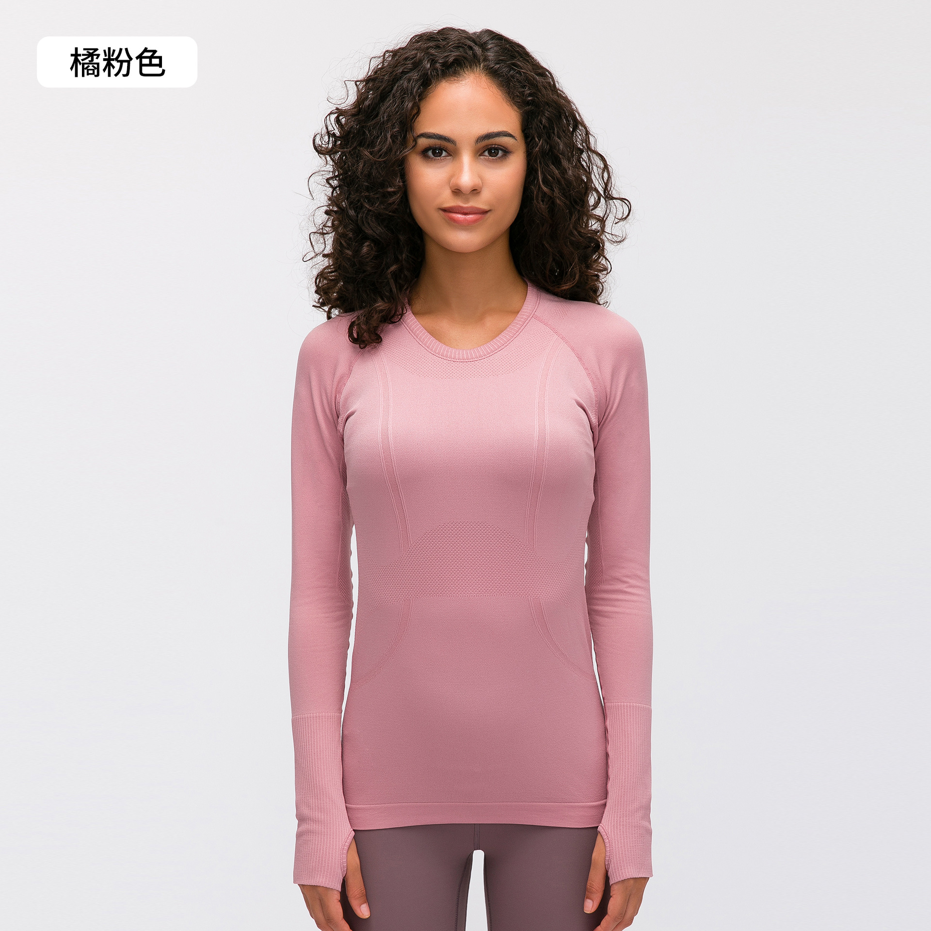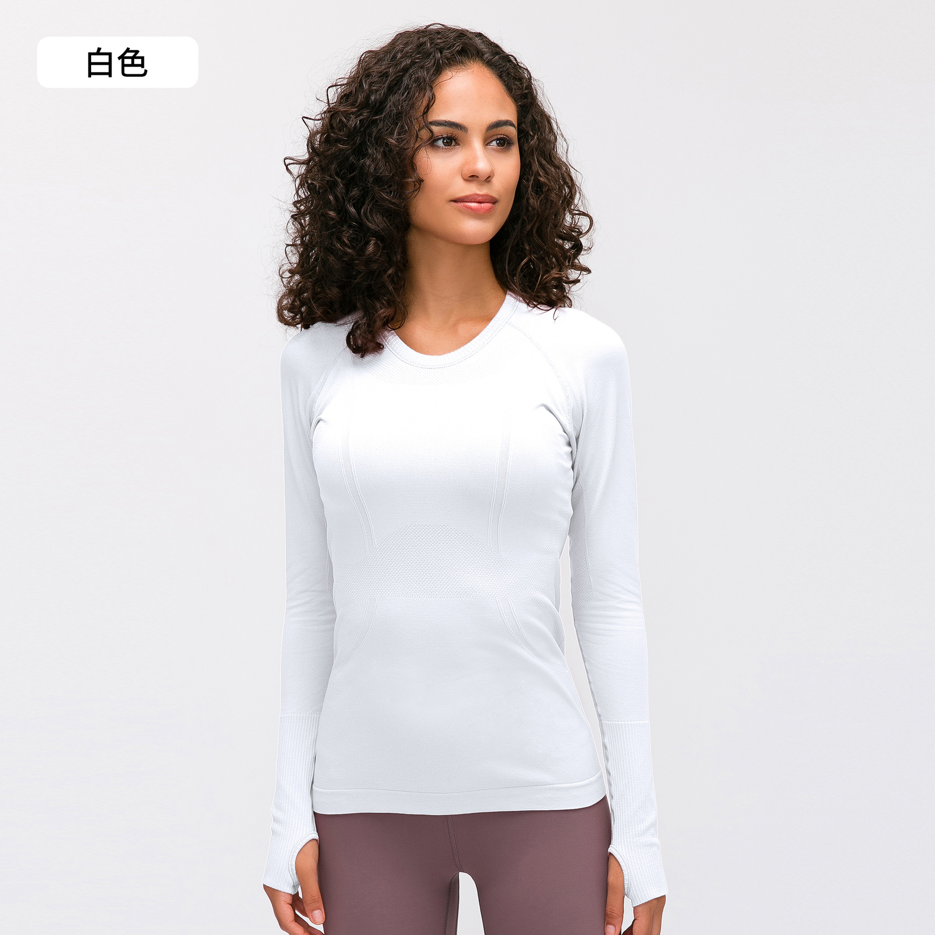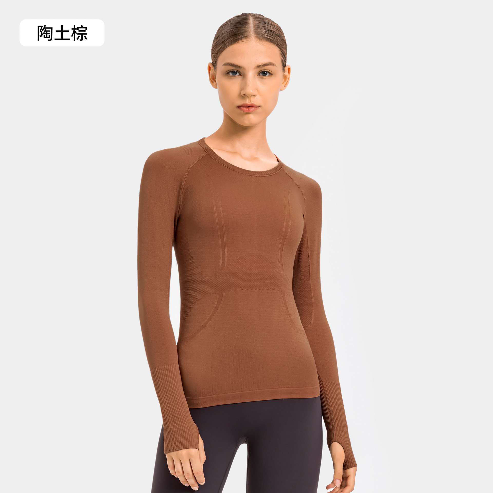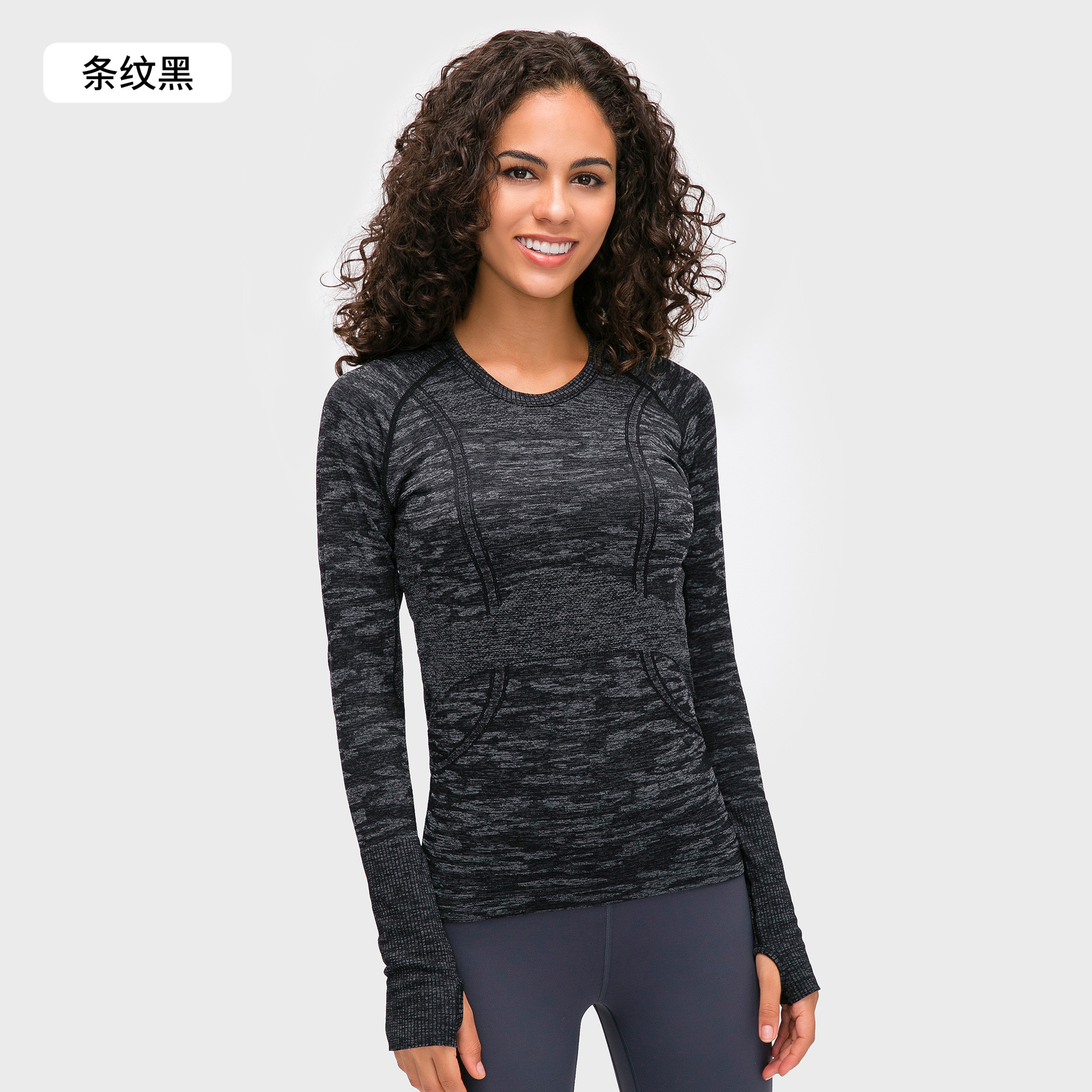 새로운 편안한 통기성 요가 옷 여성용 긴 소매 원활한 원피스 짠 라운드 넥 스포츠 티셔츠 D19083