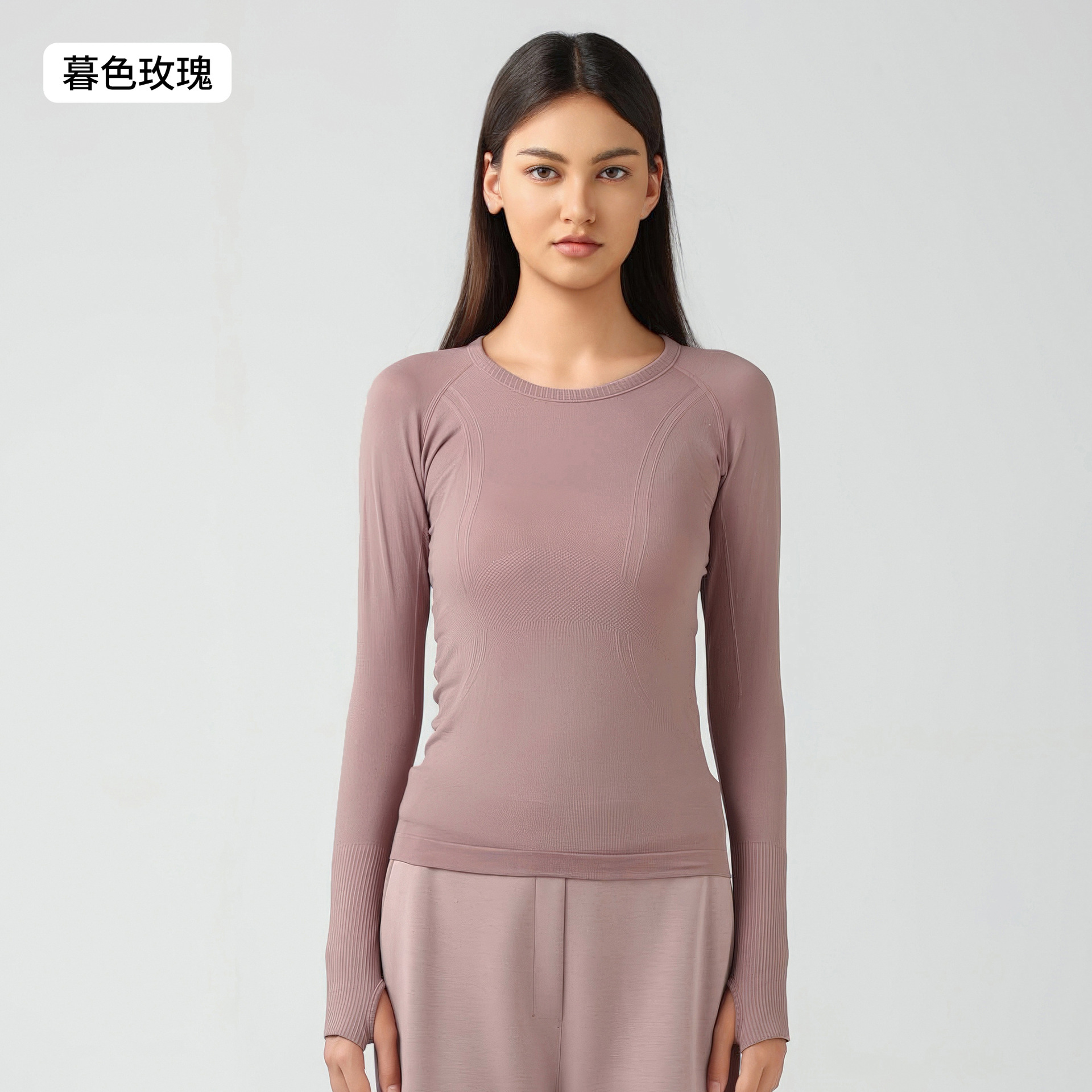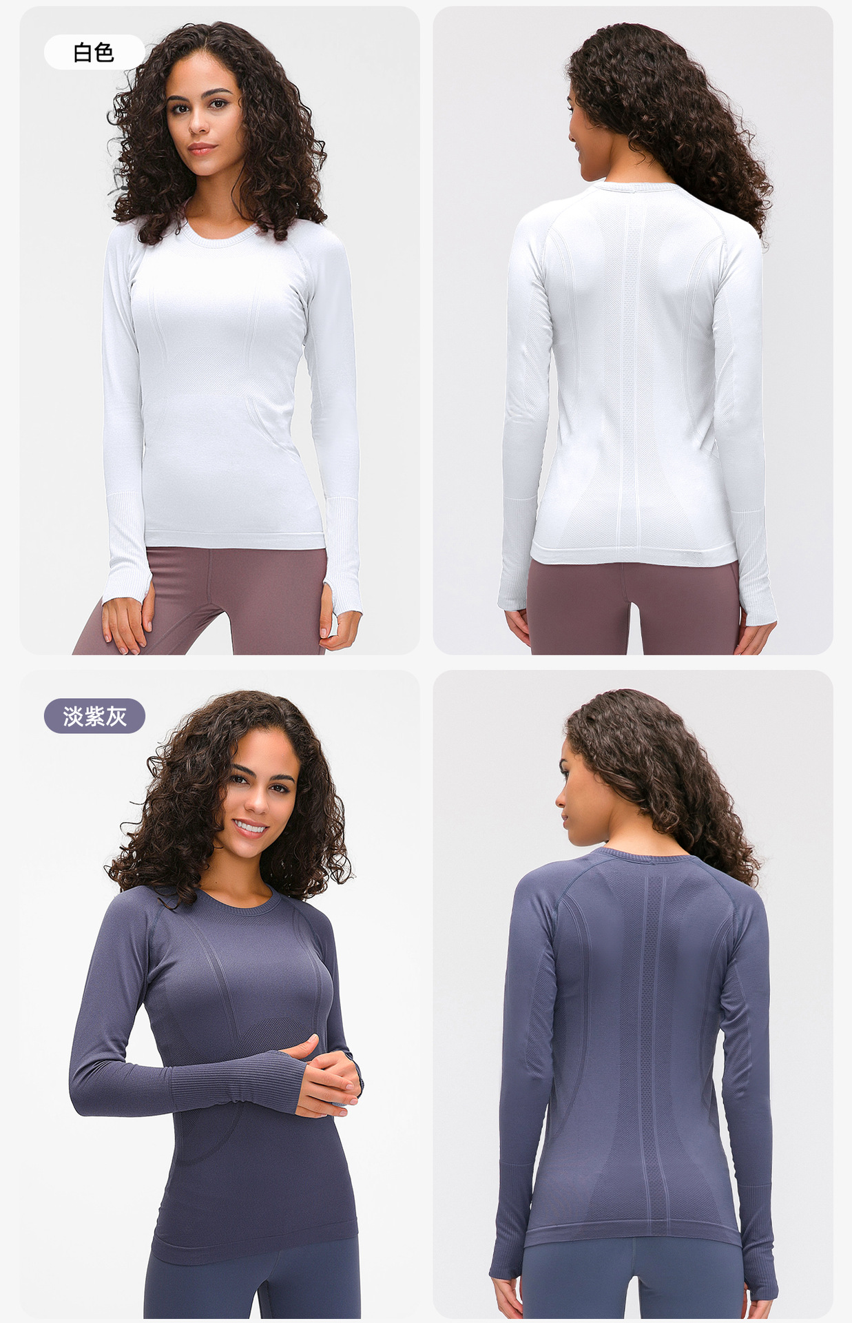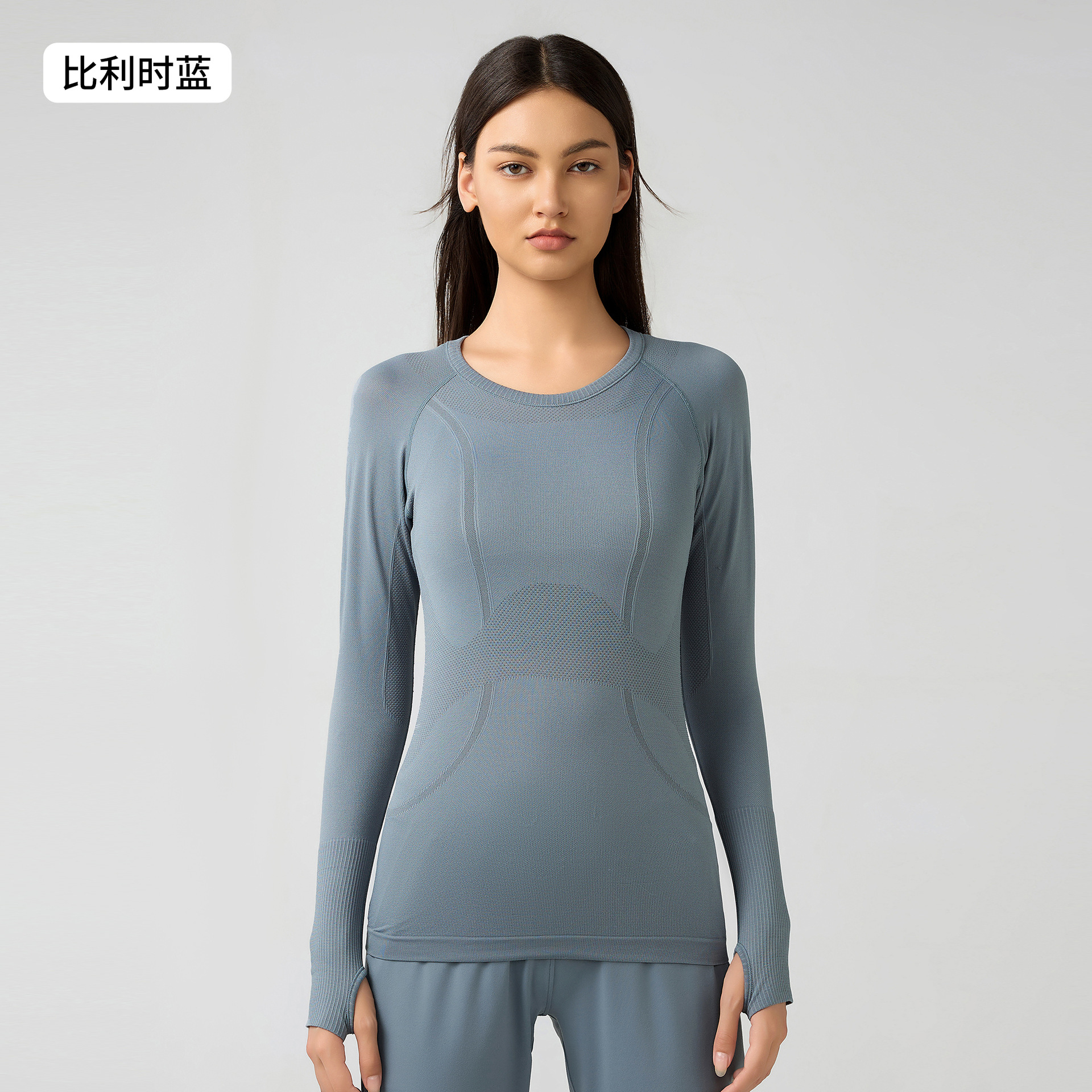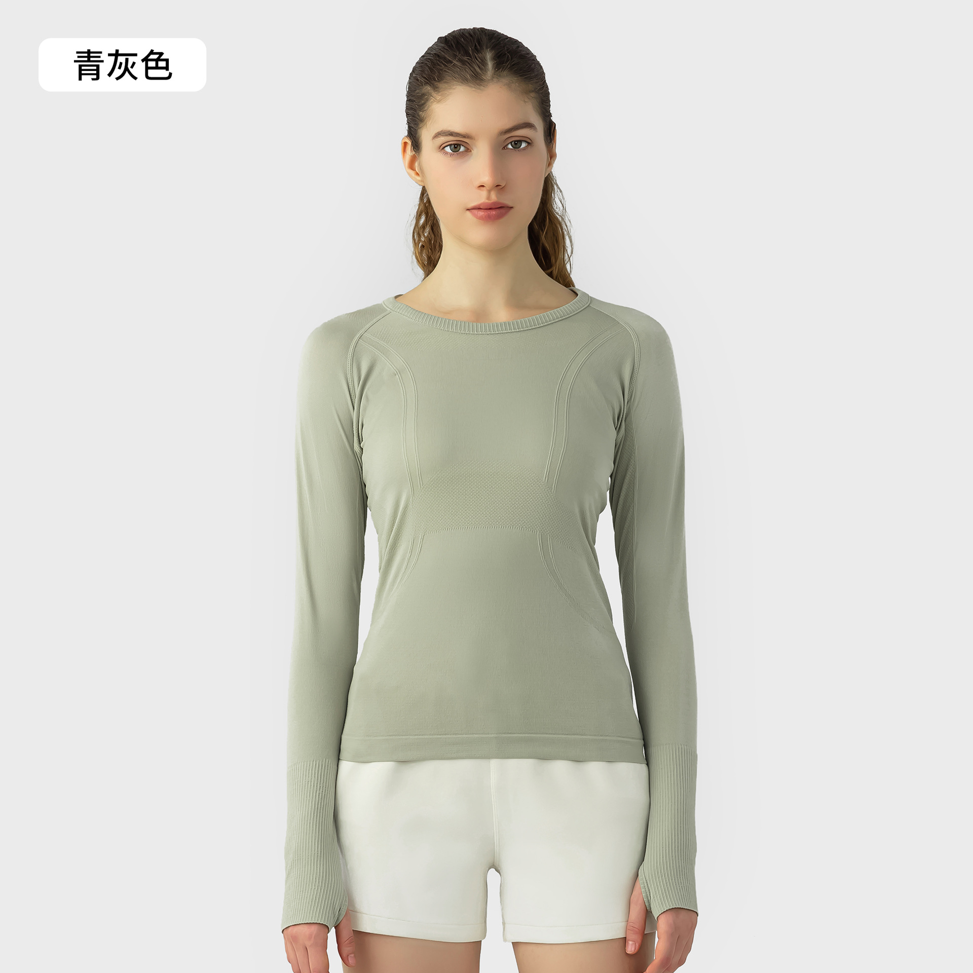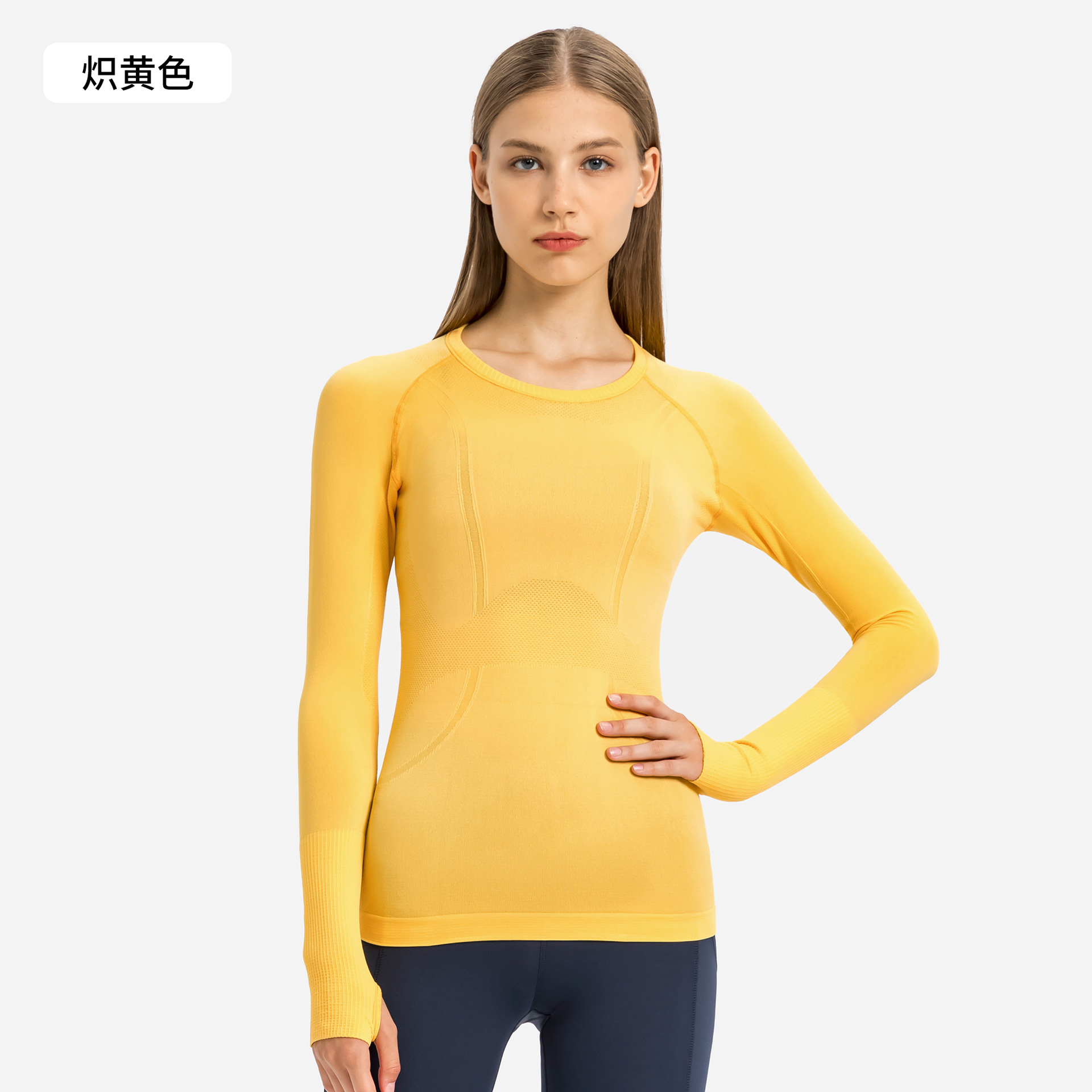 새로운 편안한 통기성 요가 옷 여성용 긴 소매 원활한 원피스 짠 라운드 넥 스포츠 티셔츠 D19083