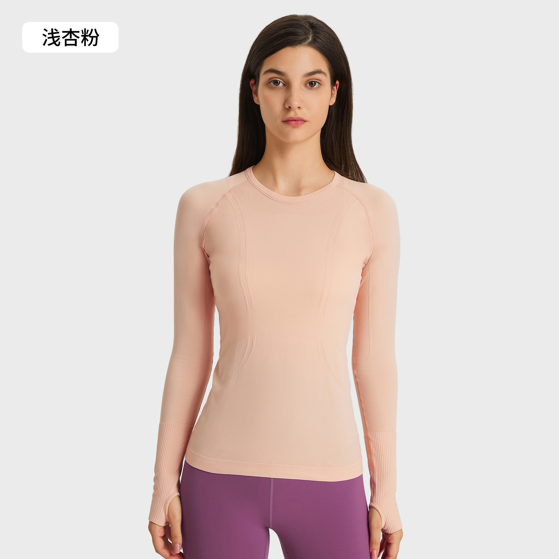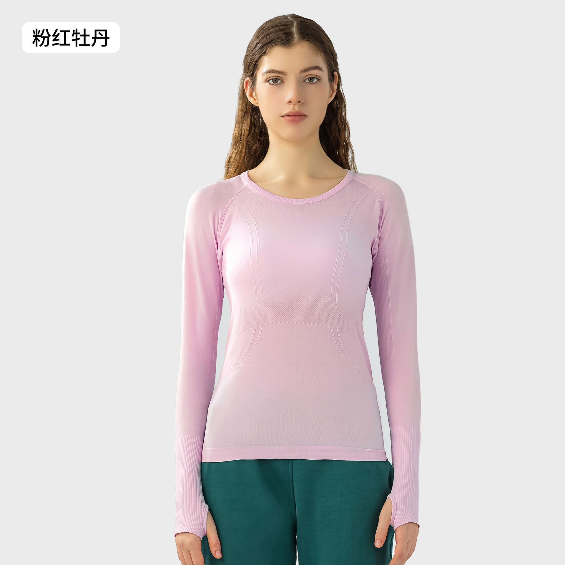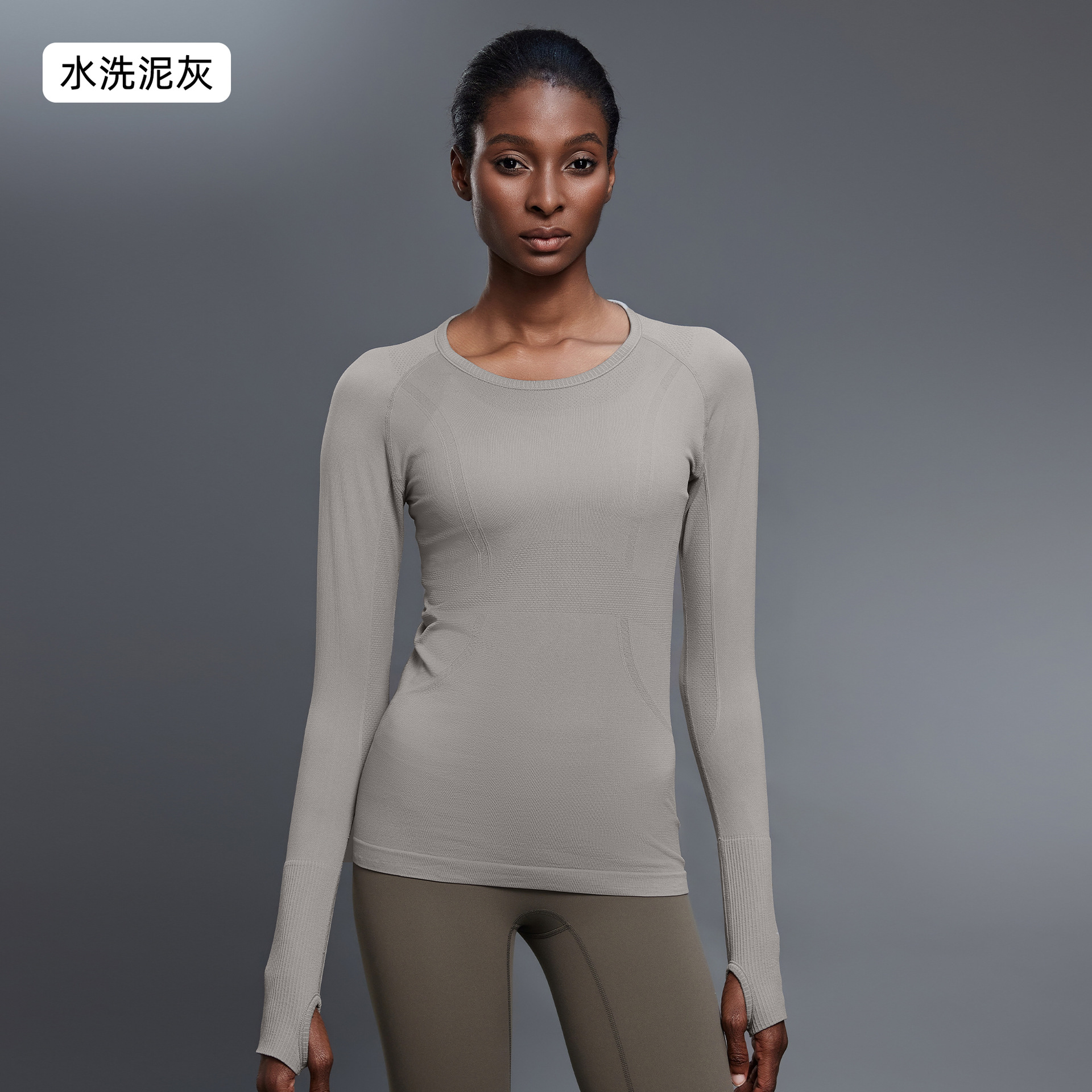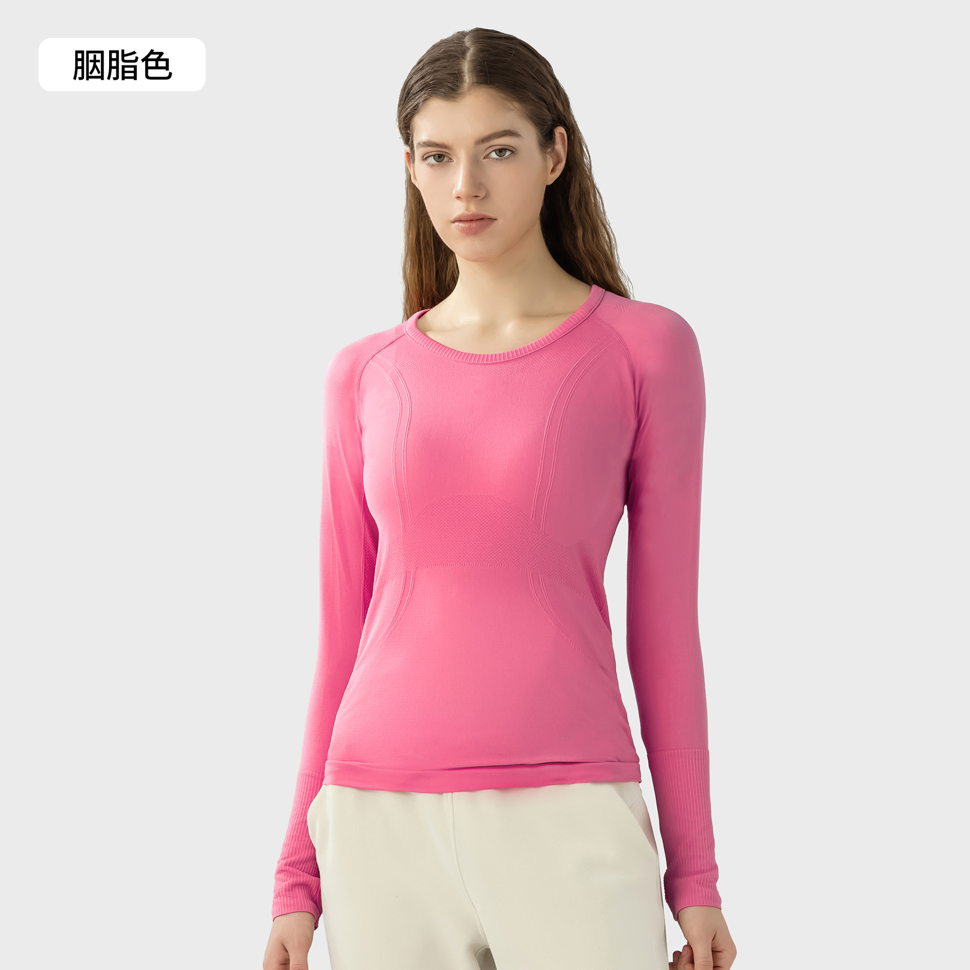 새로운 편안한 통기성 요가 옷 여성용 긴 소매 원활한 원피스 짠 라운드 넥 스포츠 티셔츠 D19083