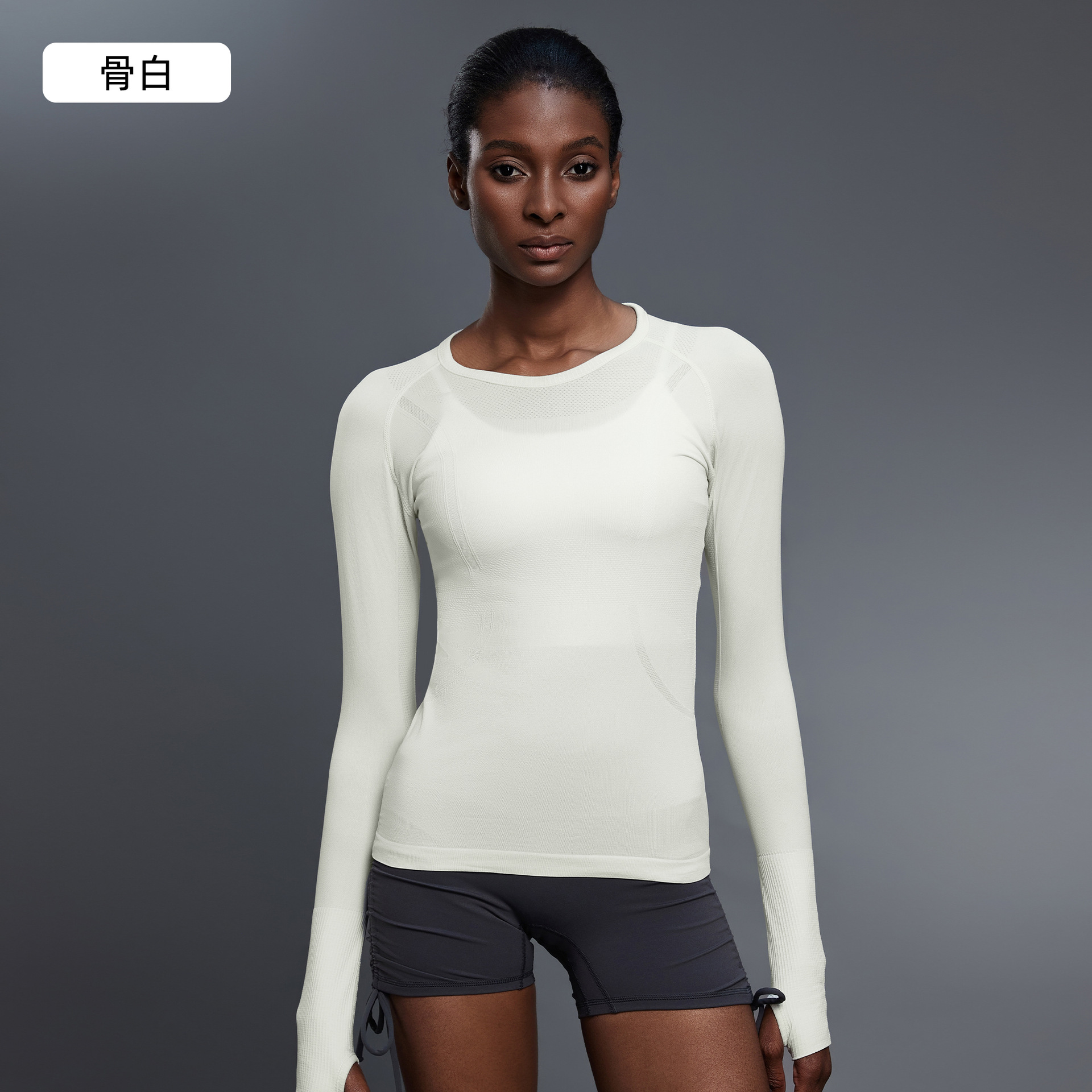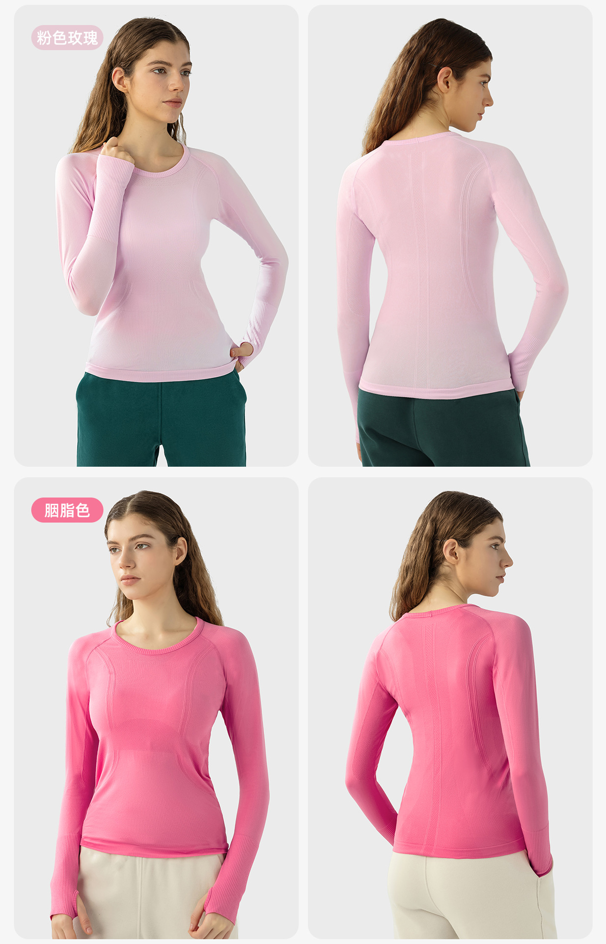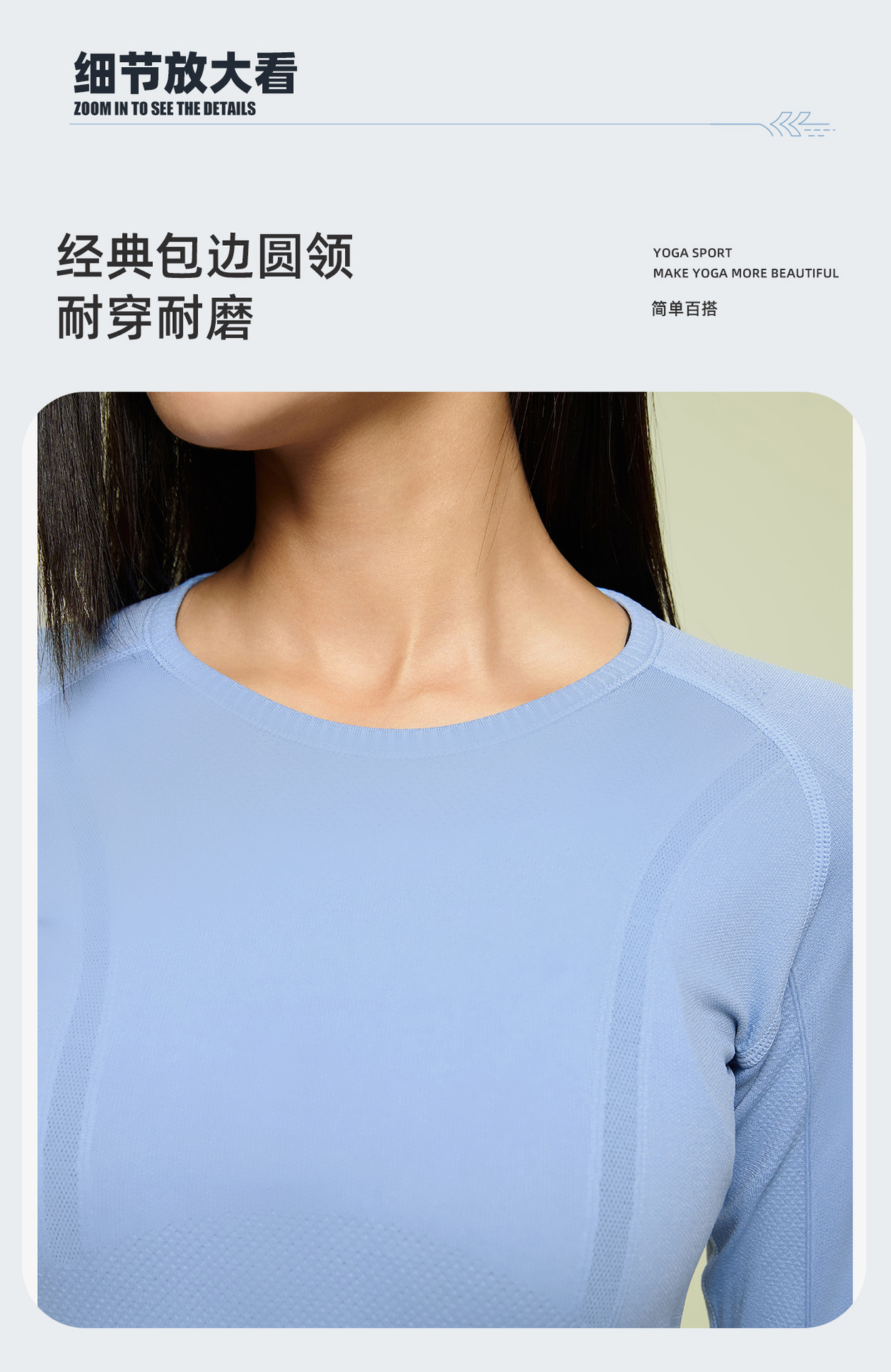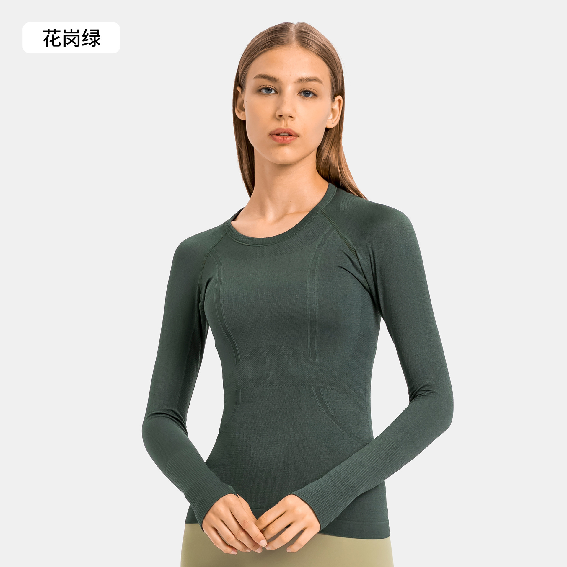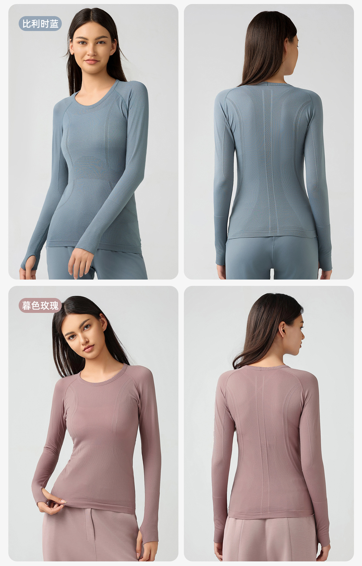 새로운 편안한 통기성 요가 옷 여성용 긴 소매 원활한 원피스 짠 라운드 넥 스포츠 티셔츠 D19083