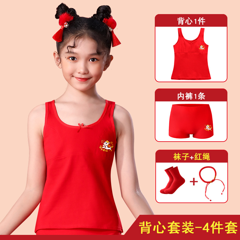 생년의 해에 입는 빨간색 속옷, 여아 발달기 초등학생 민소매 순면 여아 중대형 어린이 말의 해 새해 옷스토어 가기