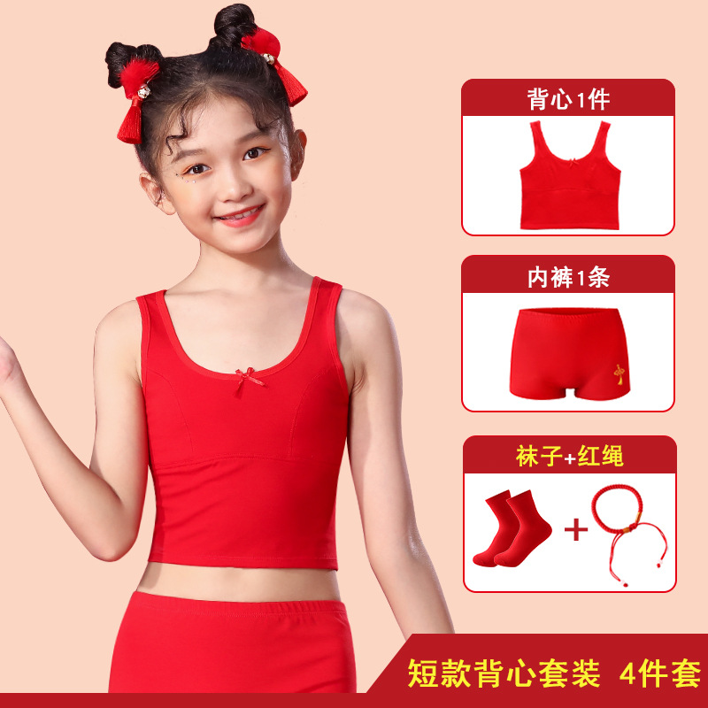초등학생을 개발하는 소녀를위한이 삶의 해를위한 빨간 속옷, 뱀 새해 옷 중 · 대형 아동을위한 순수한 면화 조끼