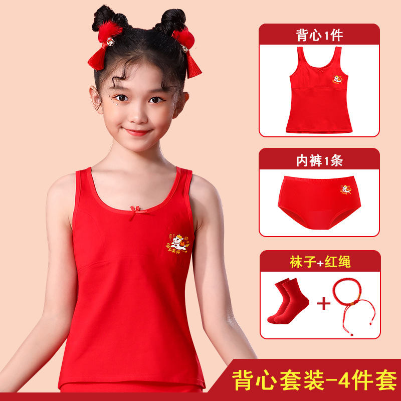 생년의 해에 입는 빨간색 속옷, 여아 발달기 초등학생 민소매 순면 여아 중대형 어린이 말의 해 새해 옷