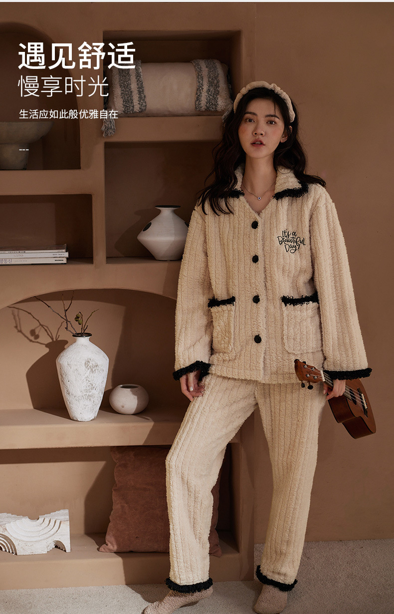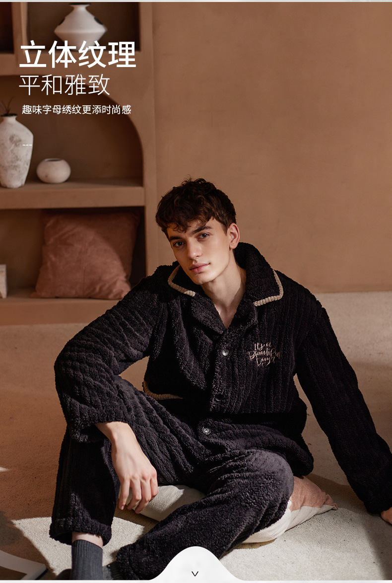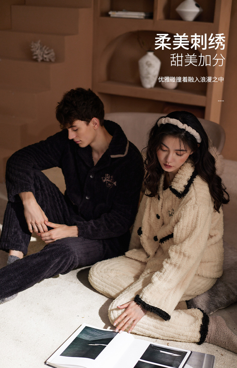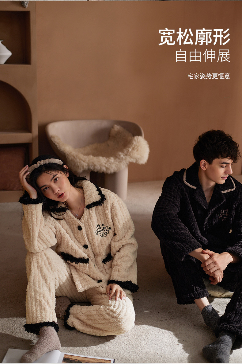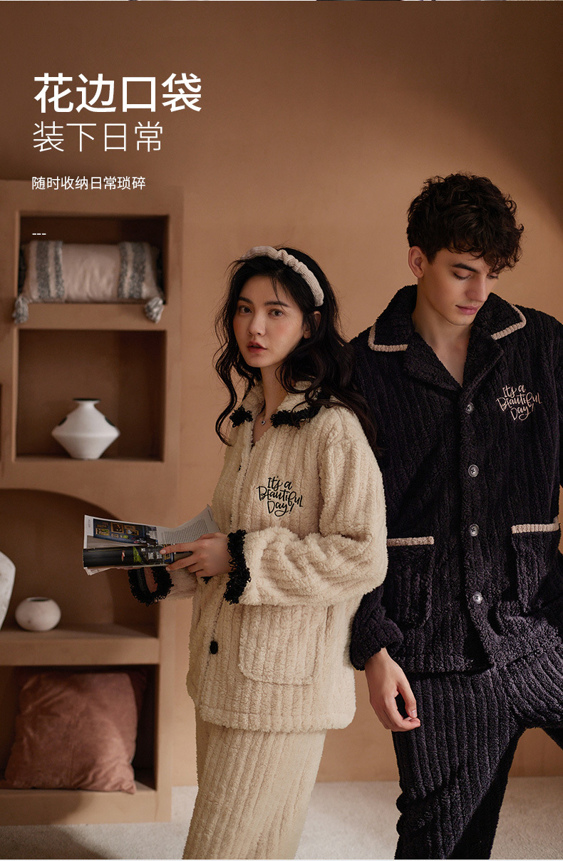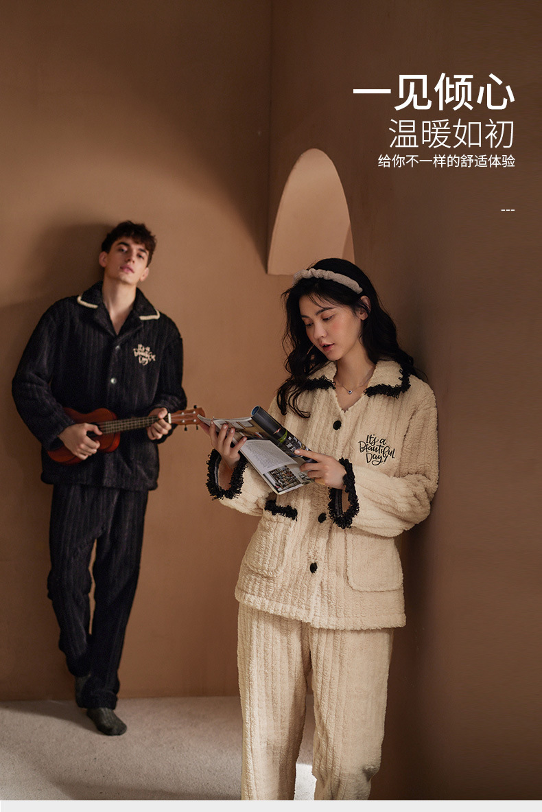 Nidia 커플 잠옷 여자의 겨울 산호 양털 따뜻한 옷깃 카디건 남자의 간단한 캐주얼 가정 옷 세트스토어 가기