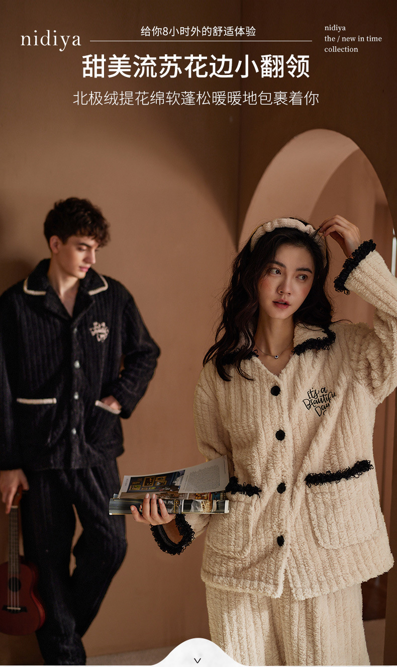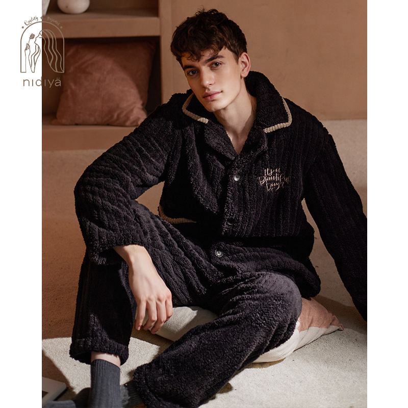 Nidia 커플 잠옷 여자의 겨울 산호 양털 따뜻한 옷깃 카디건 남자의 간단한 캐주얼 가정 옷 세트