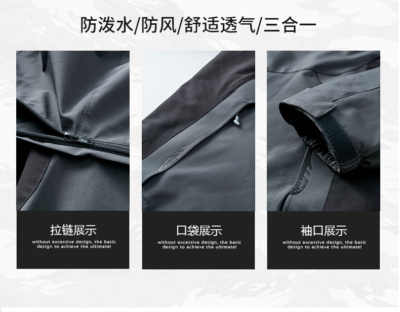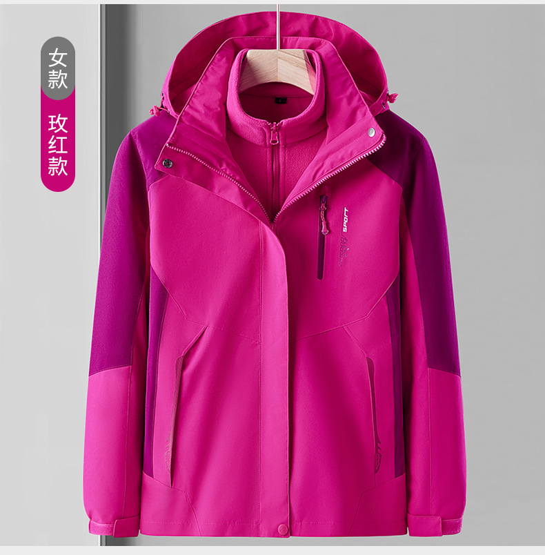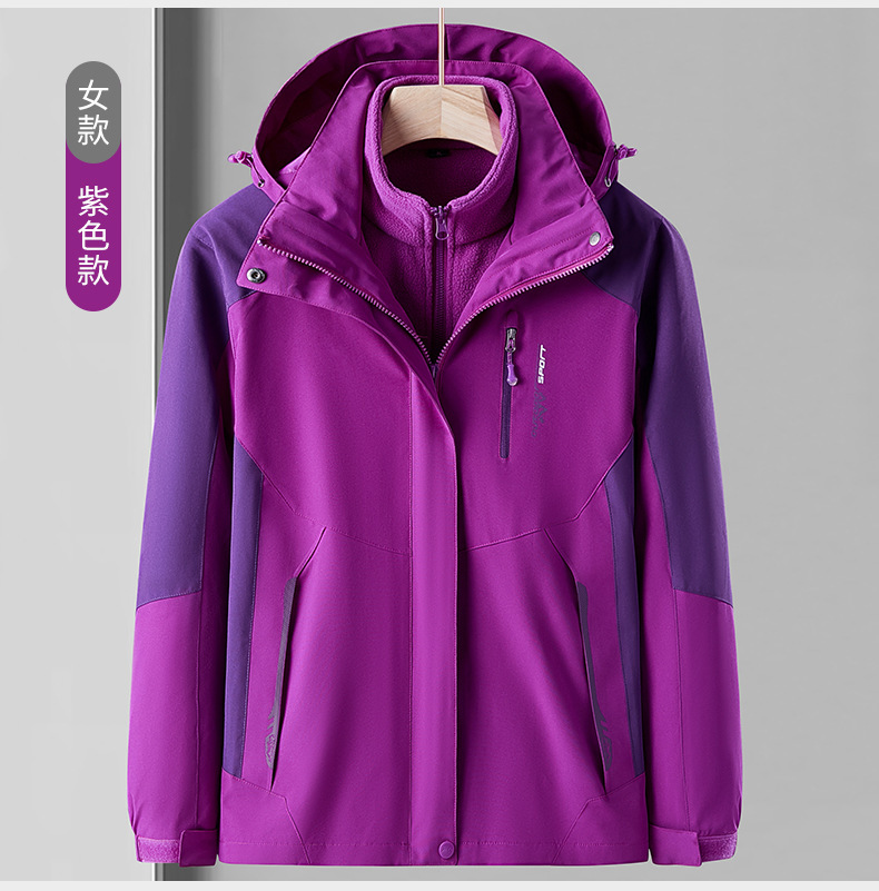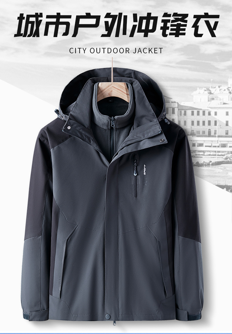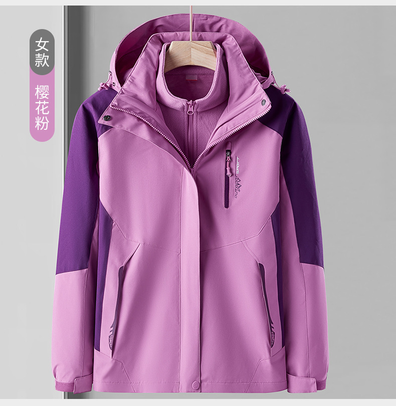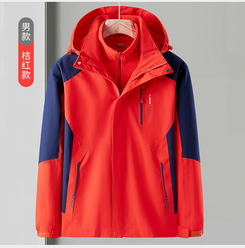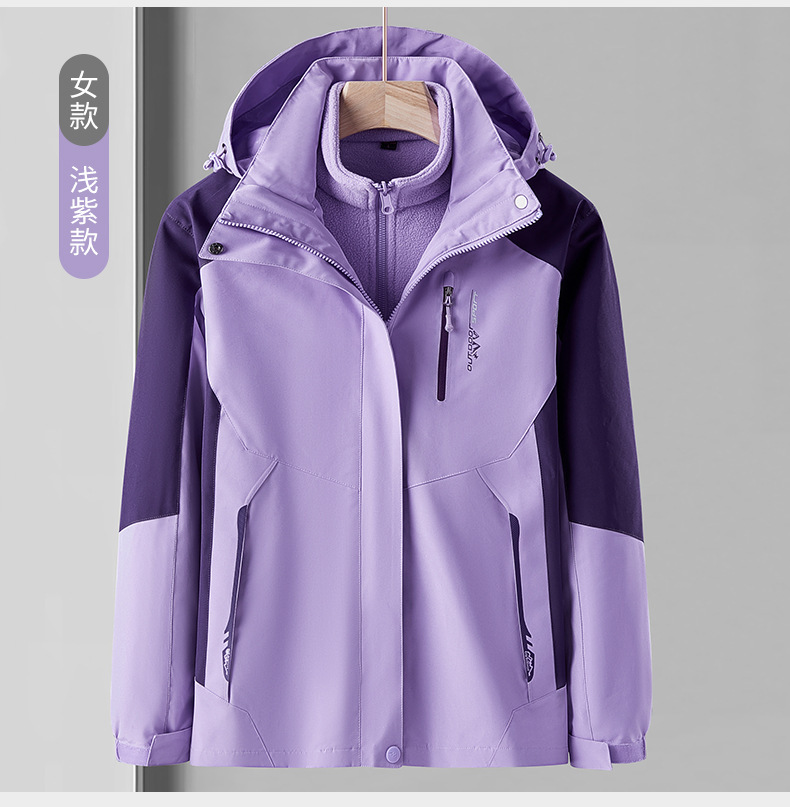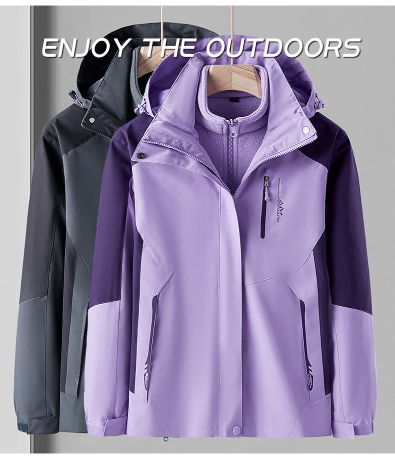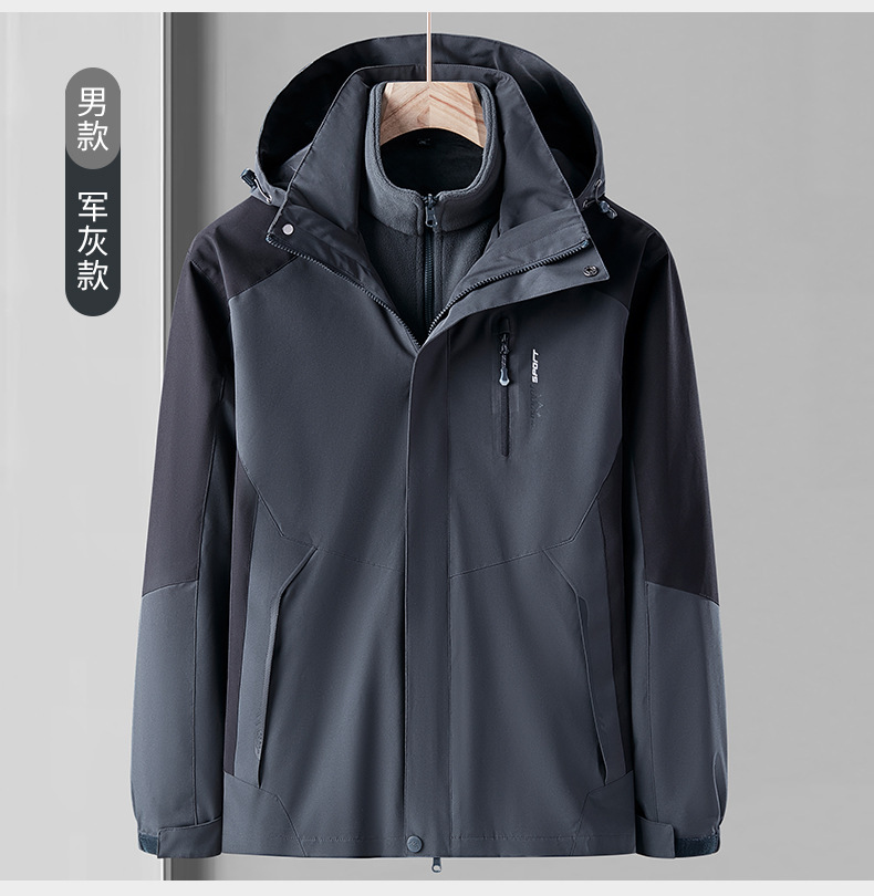 오일 블루 재킷 남자의 3-in-one 분리형 기모 두꺼운 방수 통기성 툴링 인쇄 겨울 등산 세트스토어 가기