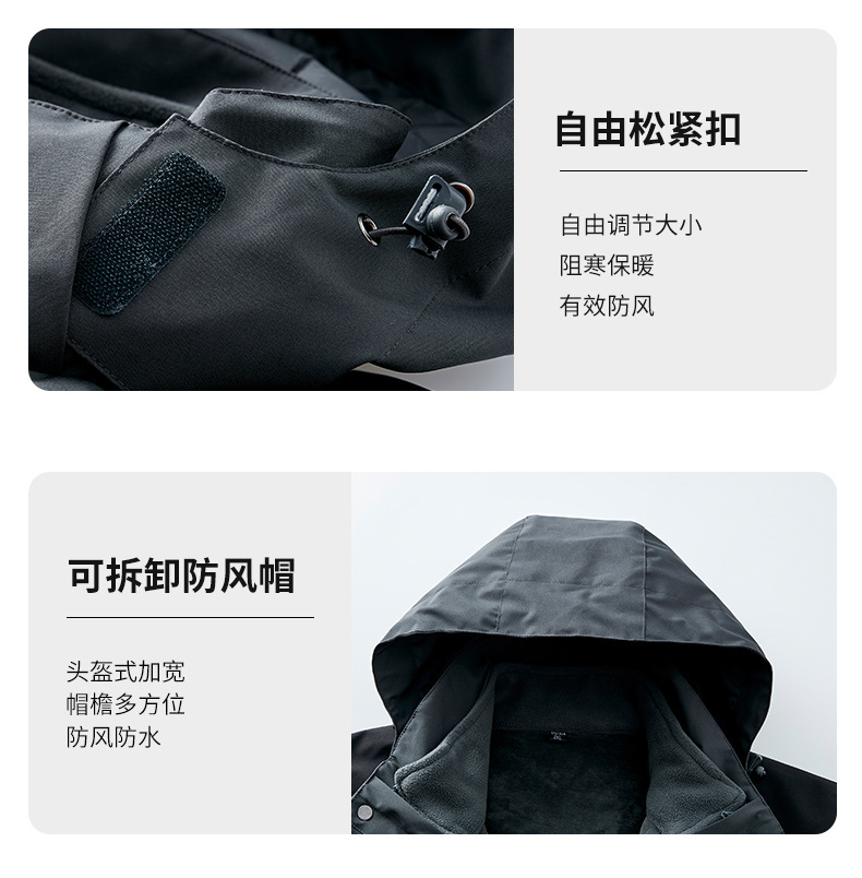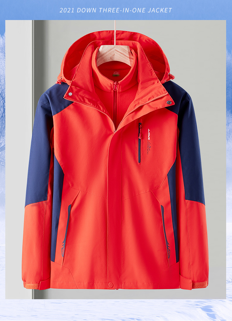 오일 블루 재킷 남자의 3-in-one 분리형 기모 두꺼운 방수 통기성 툴링 인쇄 겨울 등산 세트