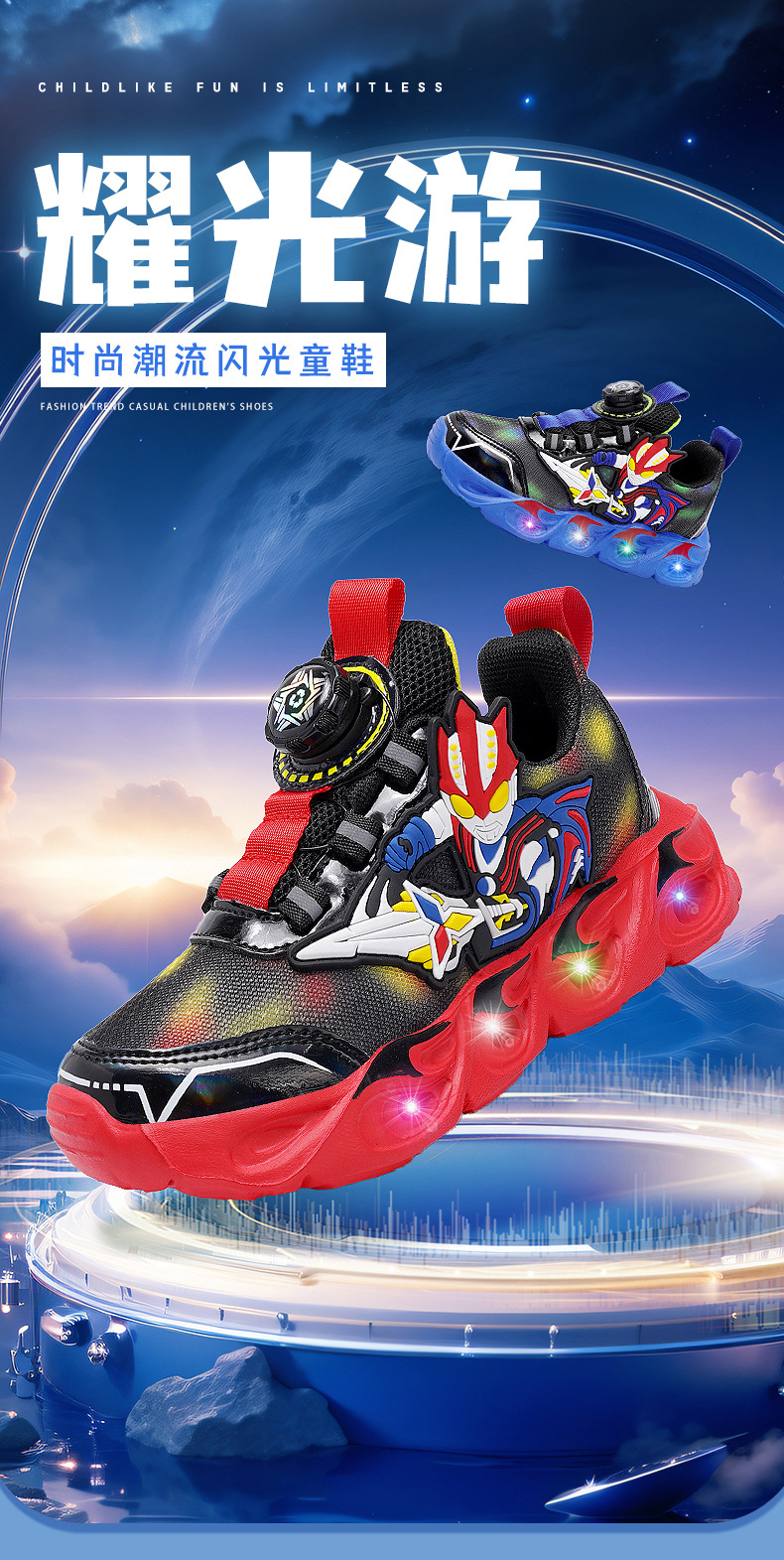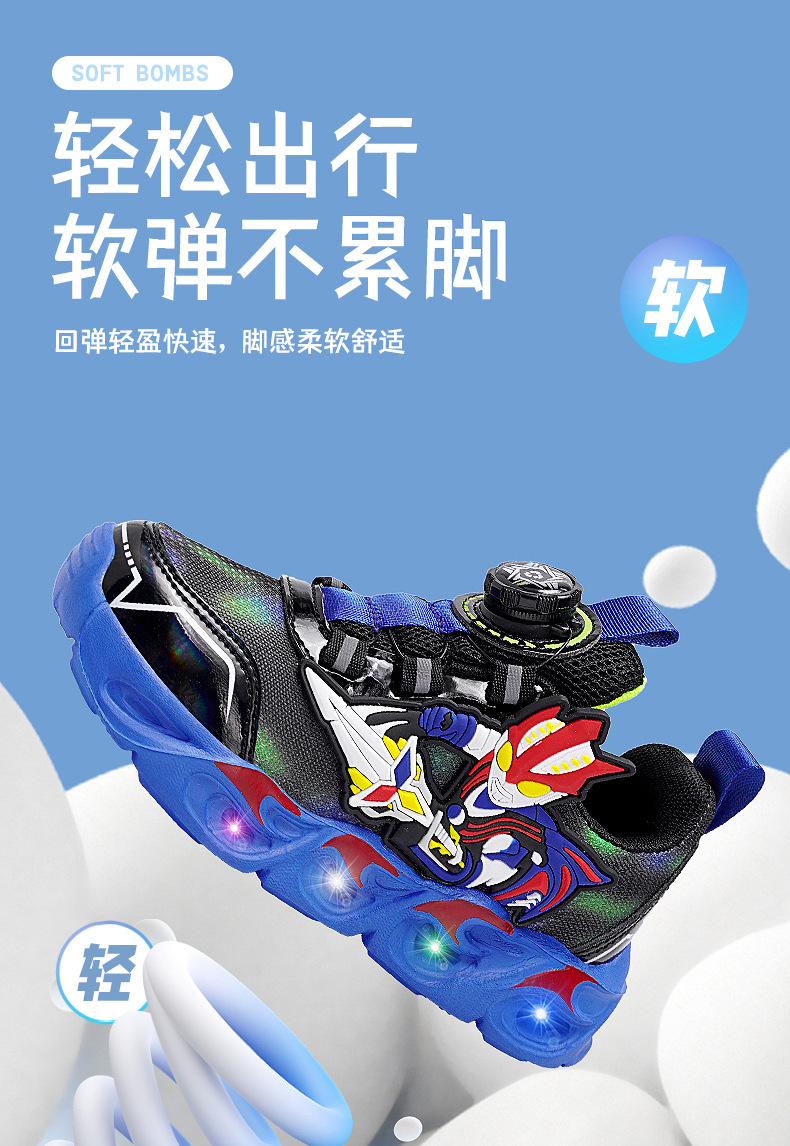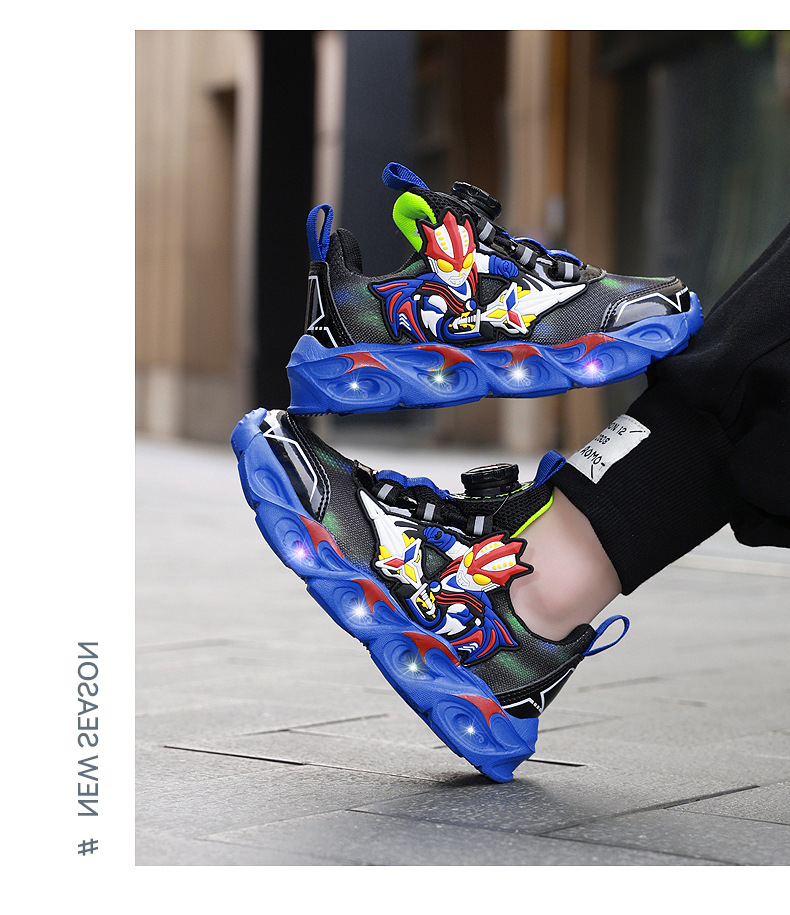 Ag. 개 소년 빛 신발 2024 여름 메쉬 통기성 어린이 운동화 로타리 버클 만화 빛나는 어린이 신발스토어 가기