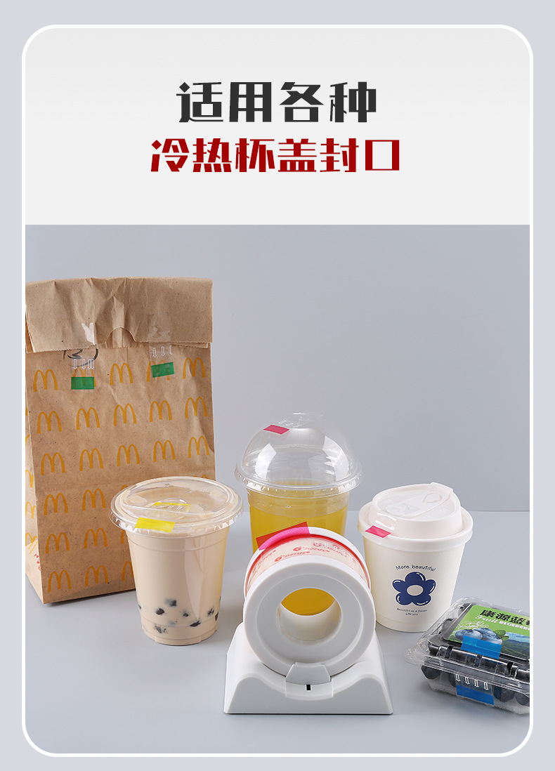 도매 테이크 아웃 음료 씰링 스티커 식품 등급 컵 입 포장 누출 방지 스티커 기본 씰링 투명 찢어지기 쉬운 스티커스토어 가기
