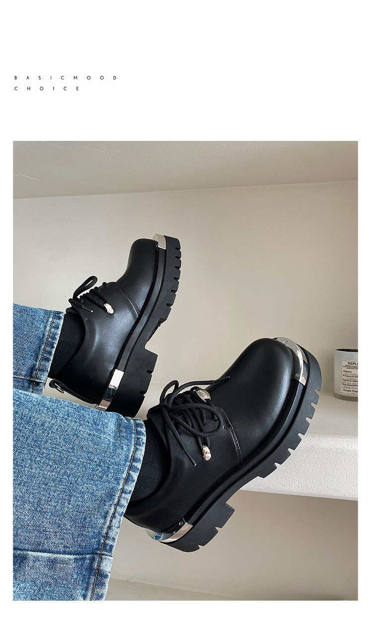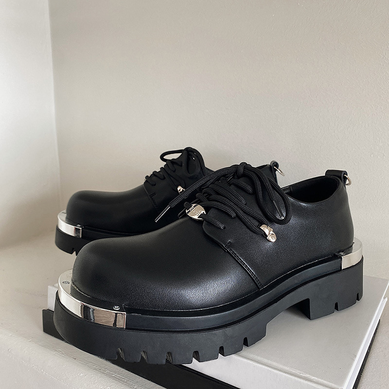 투포인트 로맨틱 2023 새로운 두꺼운 밑창 영국 캐주얼 가죽 신발 틈새 한국식 남성용 금속 빅 토 더비 신발스토어 가기