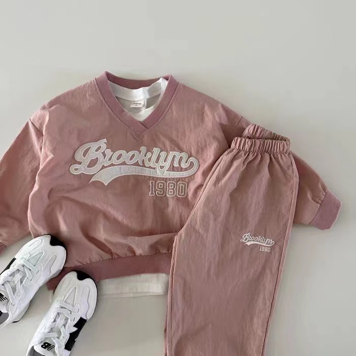 한국 스타일의 봄과 가을 바지 1980 년 스웨트 팬츠 느슨한 단색 모든 일치 소년 소녀 용 패션 캐주얼 아우터 팬츠 아기 아동 의류스토어 가기