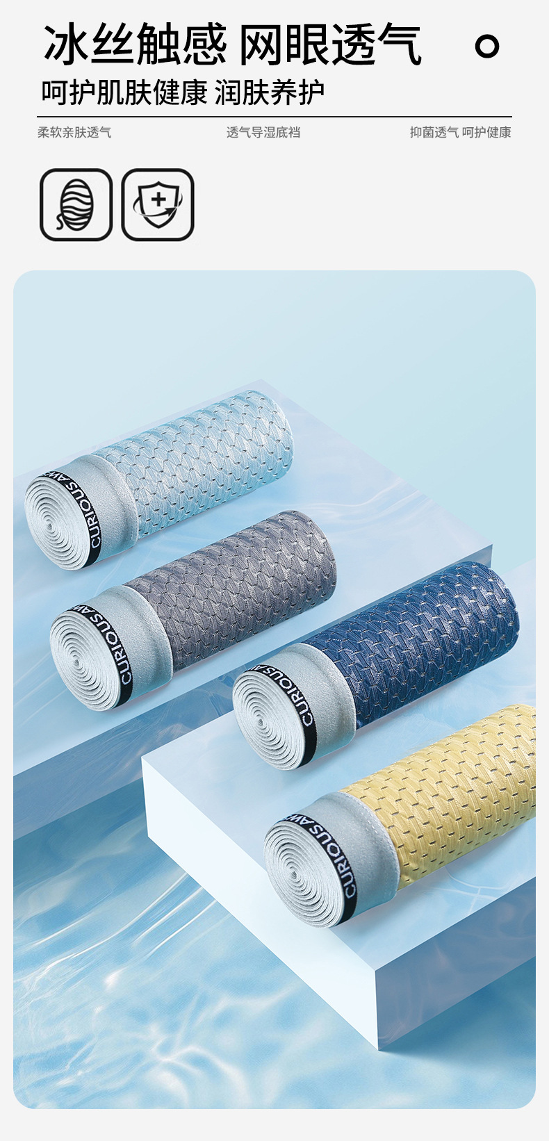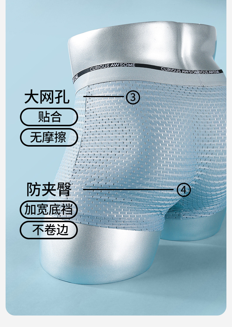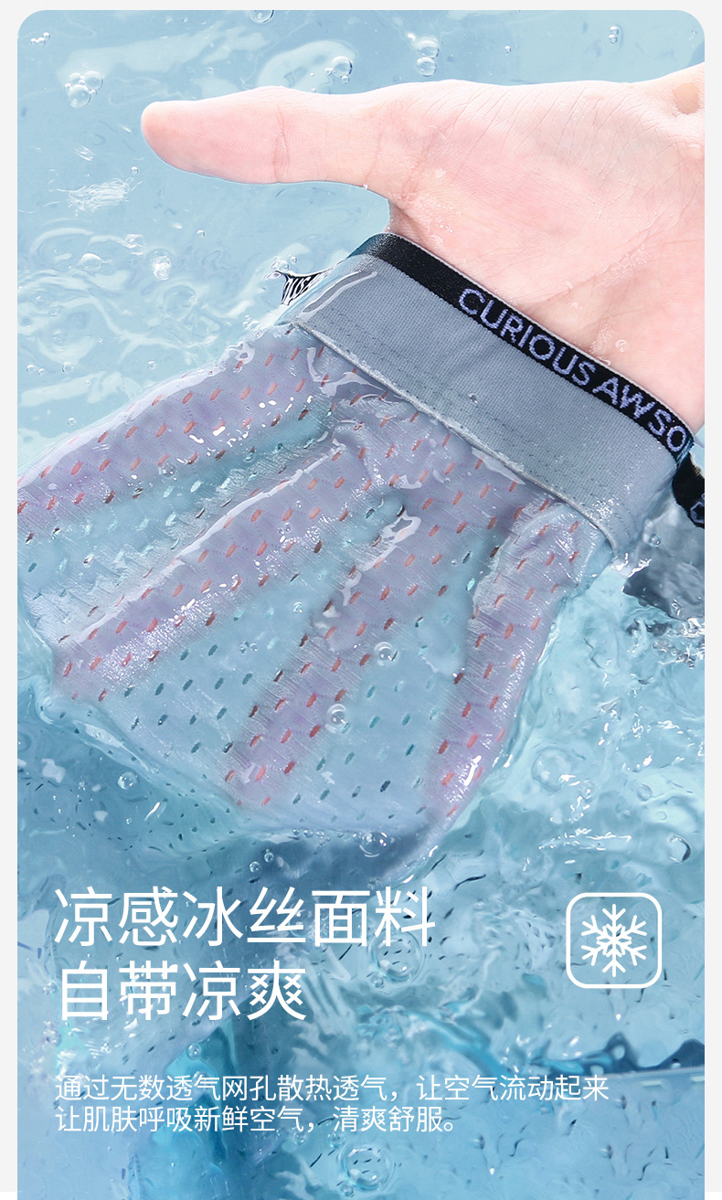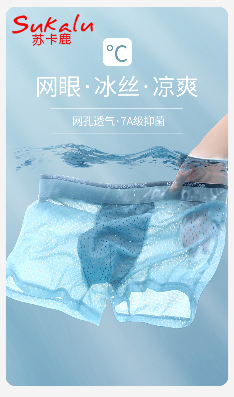 그래핀 남성 속옷, 시원한 아이스 실크 메쉬, 속이 비어있는 여름용 얇고 통기성 좋은 편안한 사각팬티스토어 가기