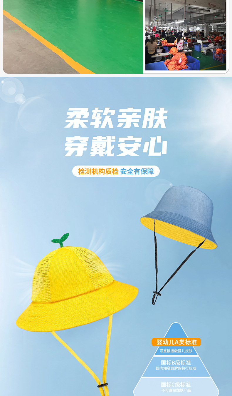 • 노란색 메쉬 작은 공 [귀여운 돔 모자 시리즈] 조절 가능한 방풍 로프