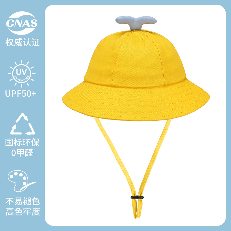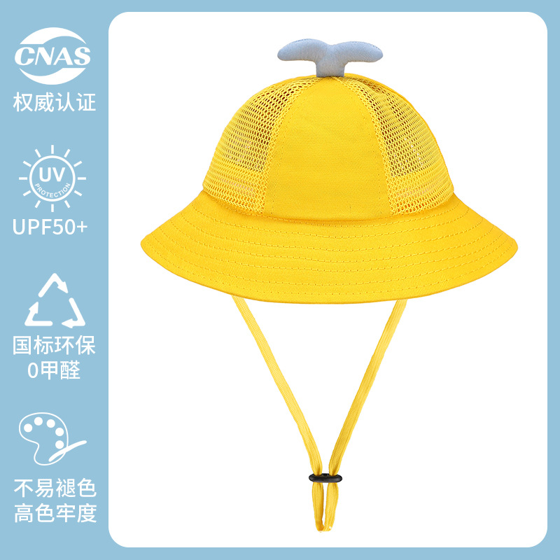 • 노란색 메쉬 작은 고래 [귀여운 돔 모자 시리즈] 조절 가능한 방풍 로프